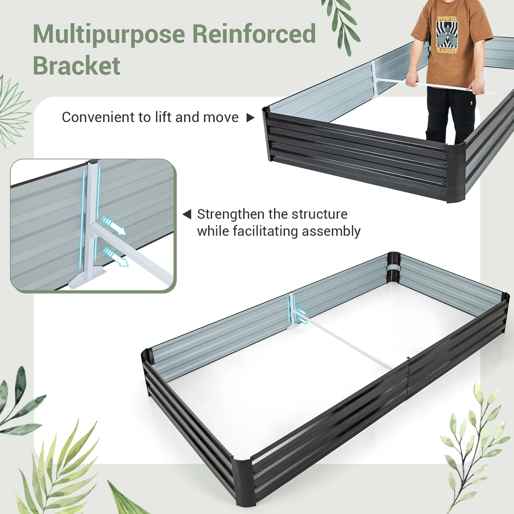 Gymax 8 x 4 x 1 ft Large Outdoor Metal Planter Box for Vegetable Fruit