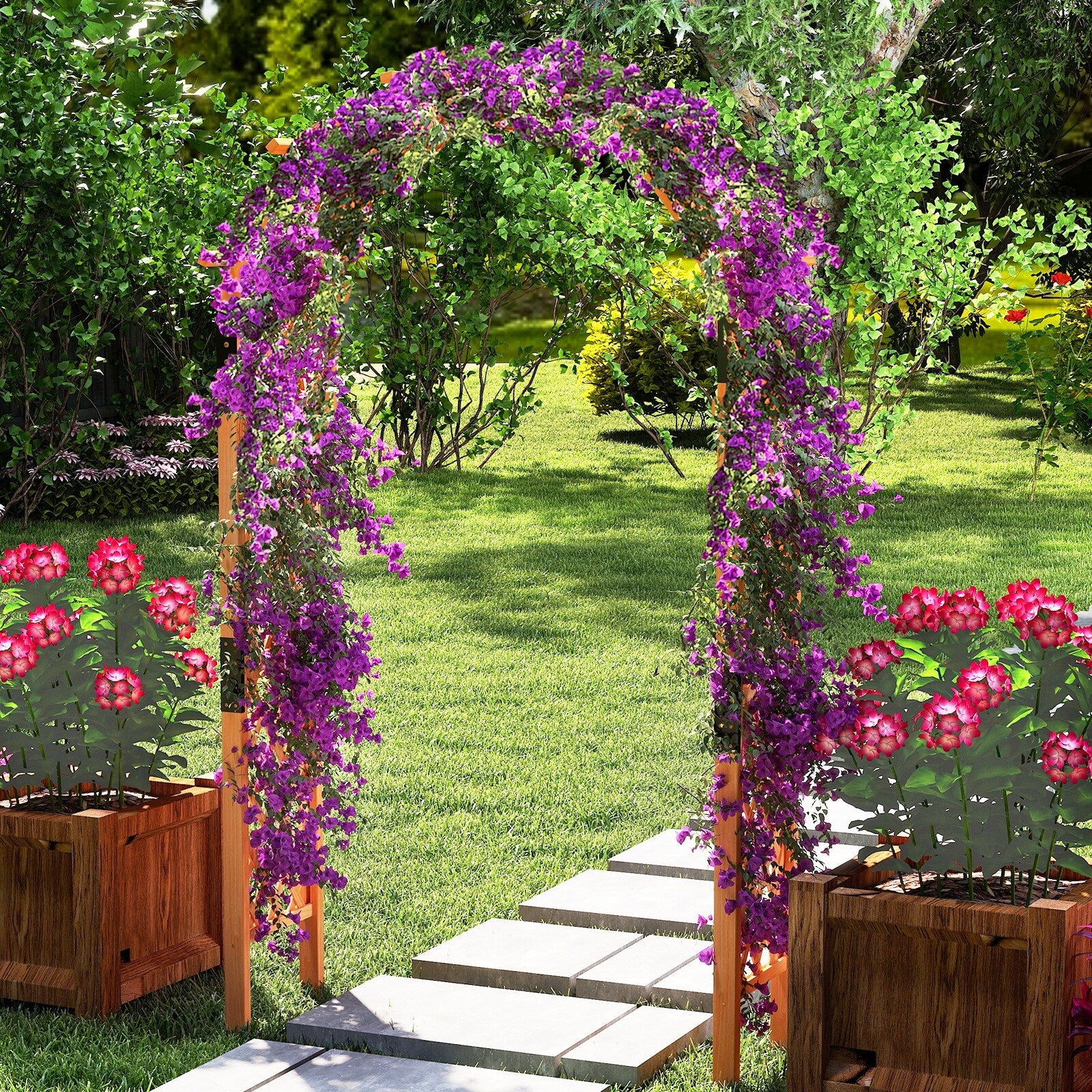 Gymax 7.7 FT Garden Arch Wooden Arbor Outdoor Wood Trellis for