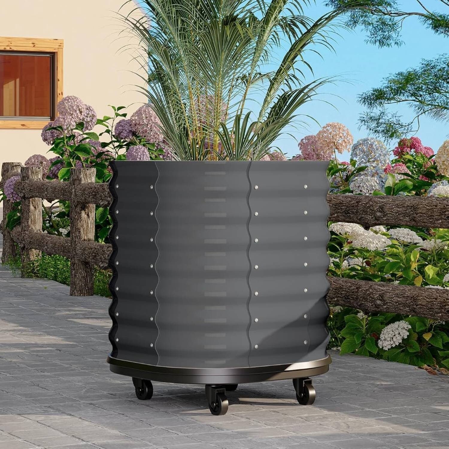 23.6" Self-Watering Rolling Metal Garden Bed - 1 PC