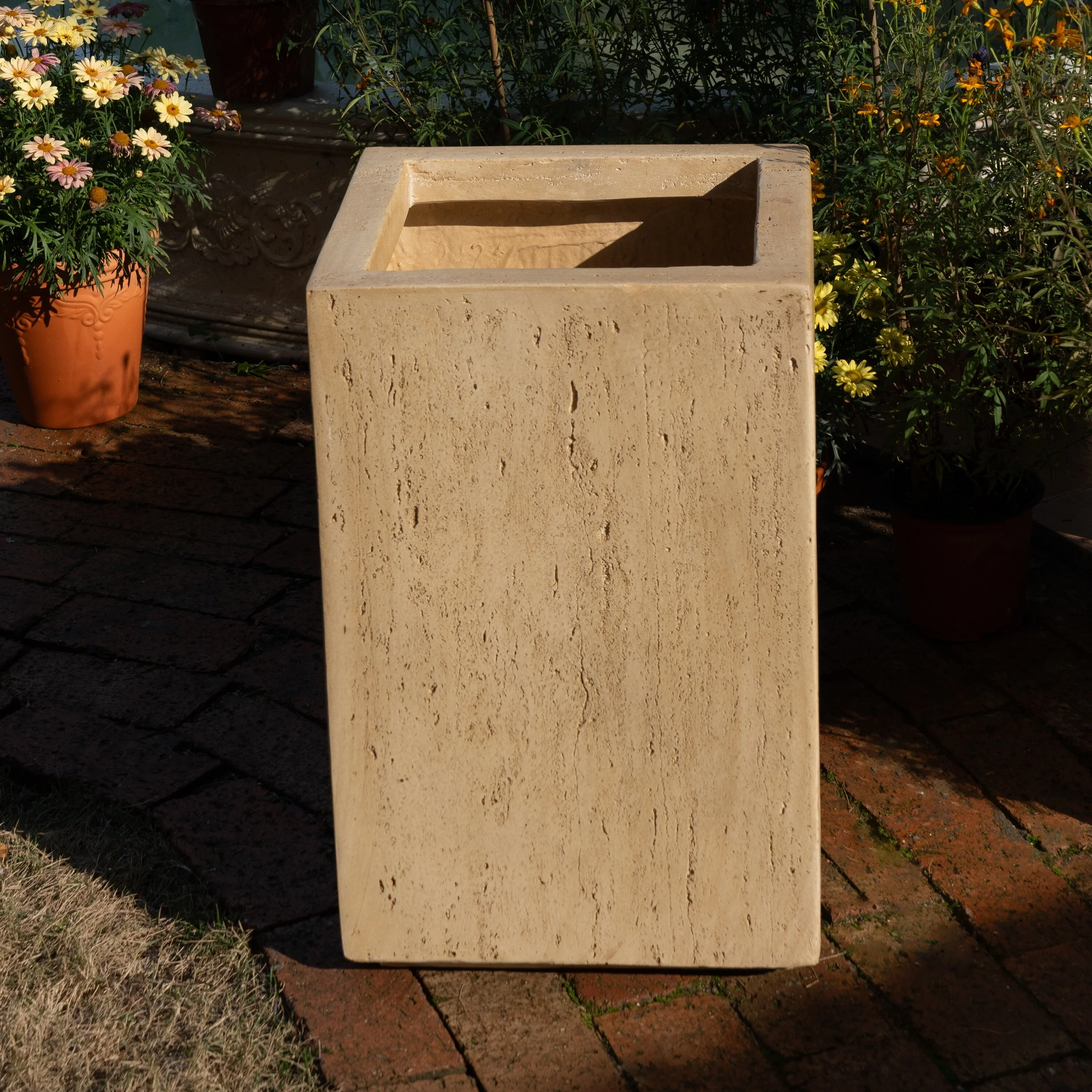 MGO Handmade Rectangle Planter Box, 19'.75'H, Travertine