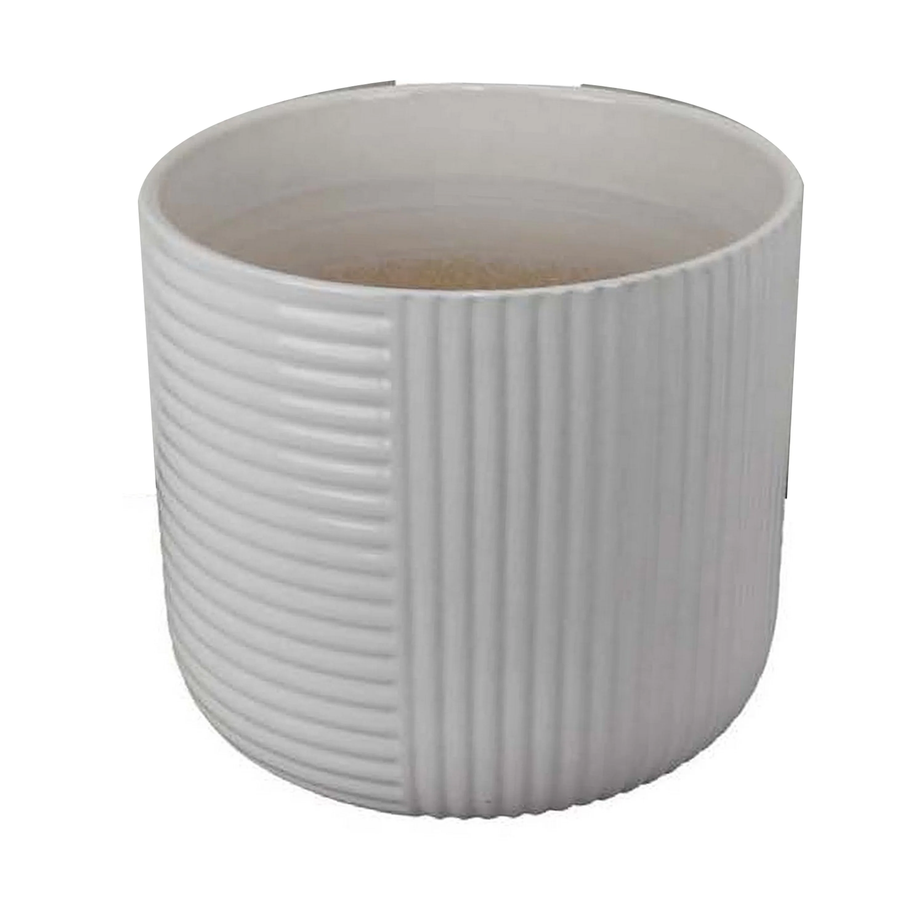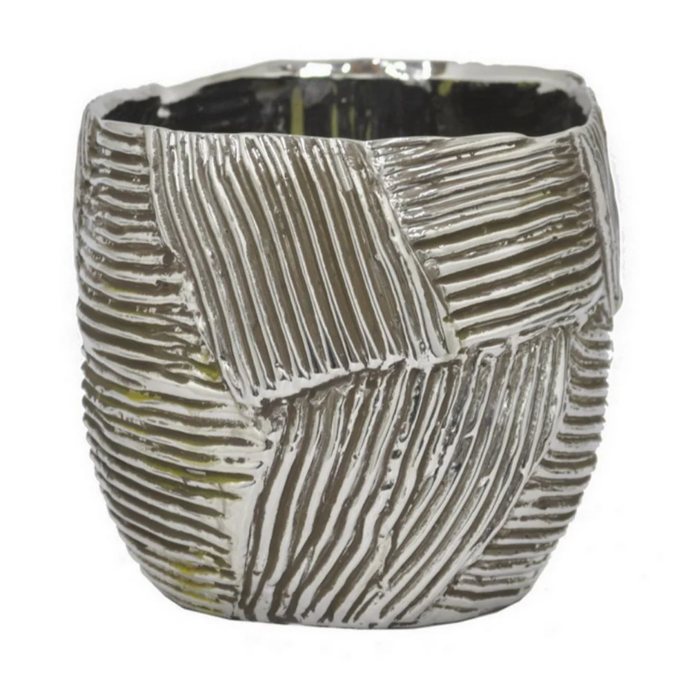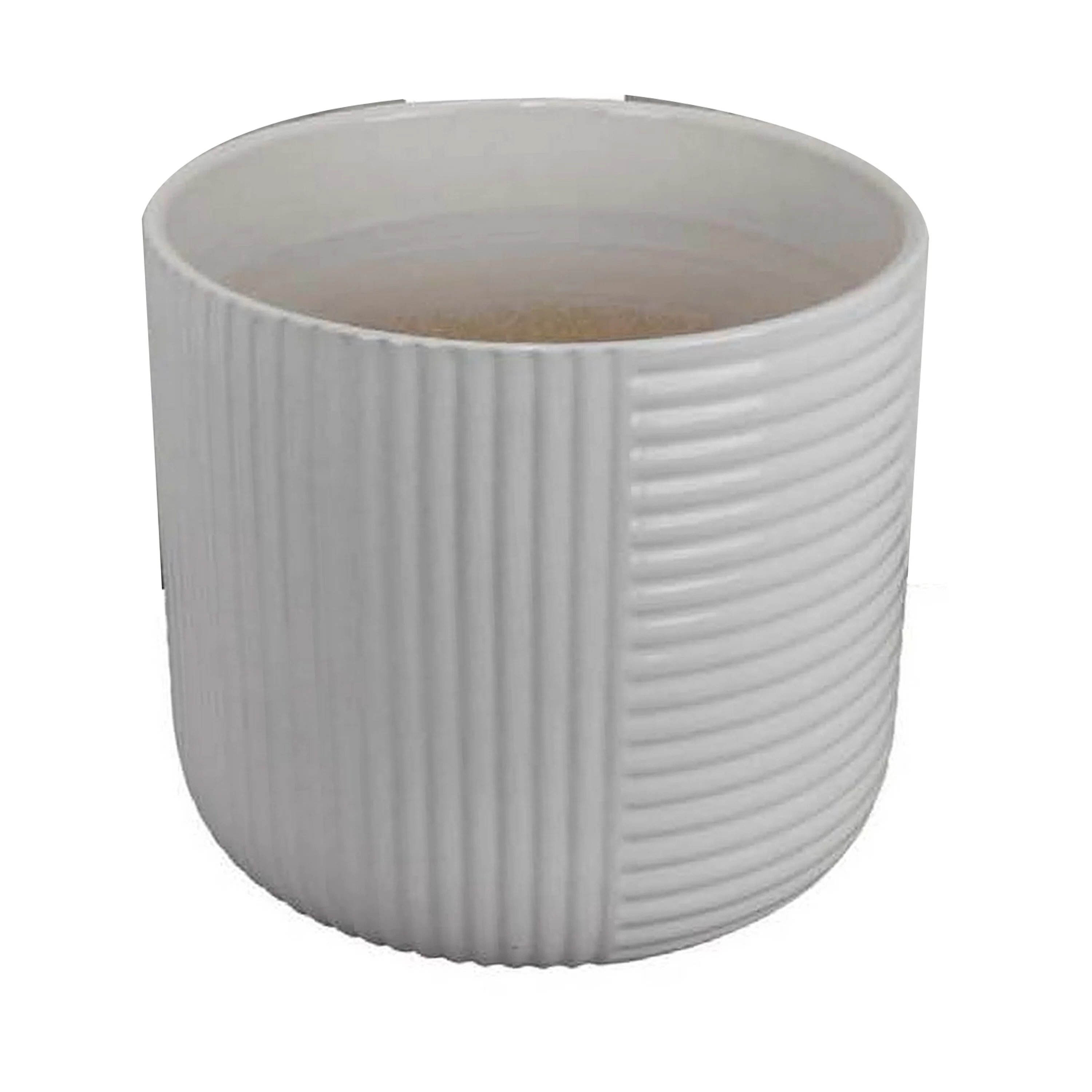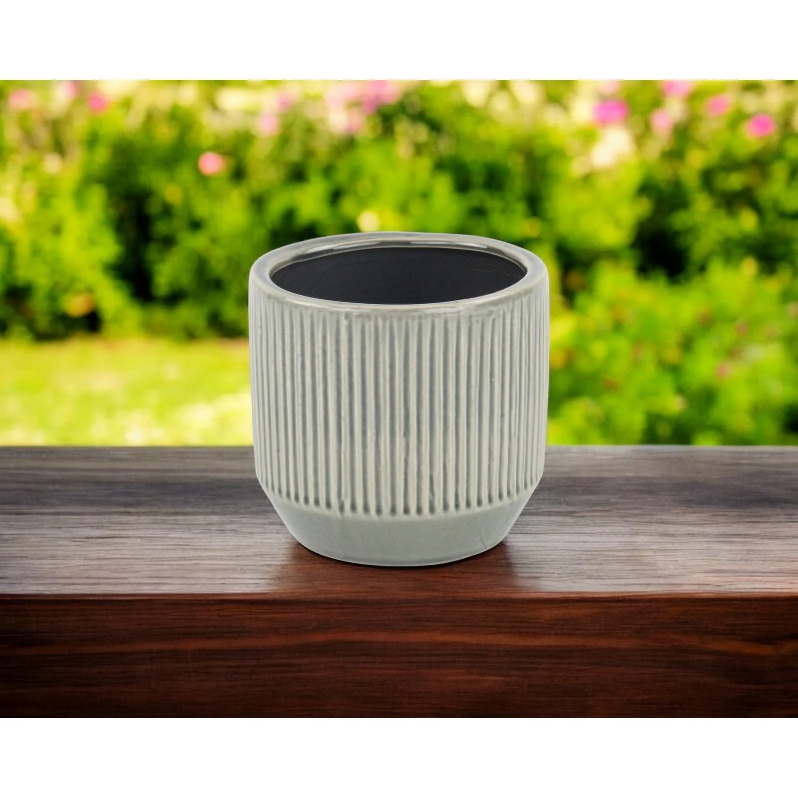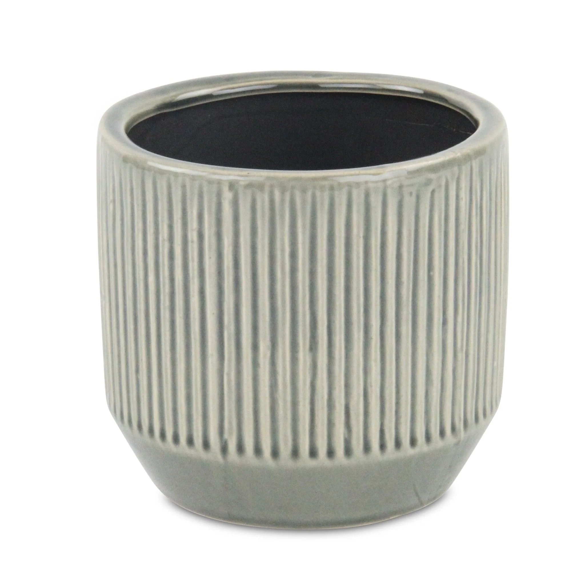 HomeRoots 6" Gray Striped Ceramic Indoor Outdoor Round Pot Planter