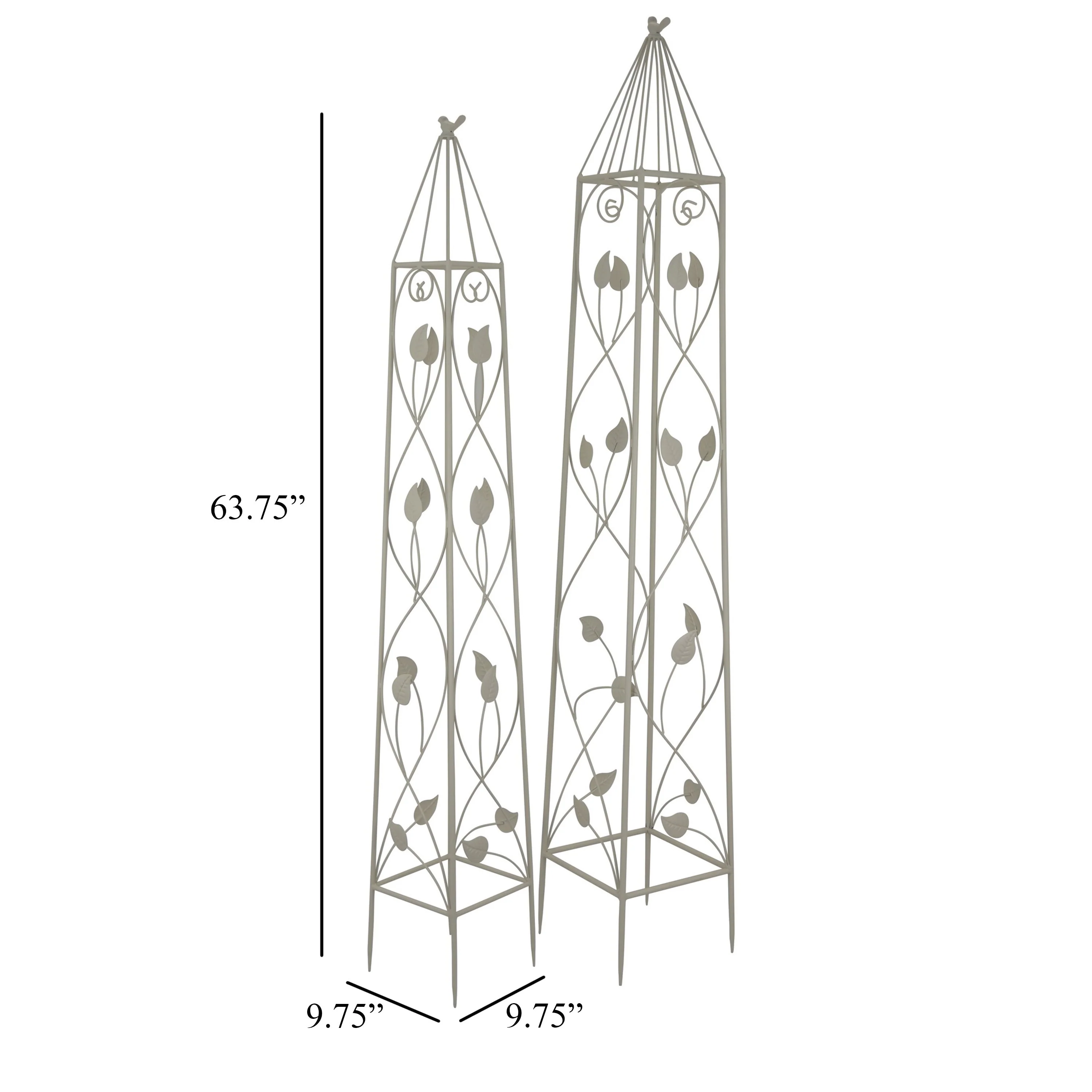 Kanye Garden Trellis Set of 2, Leaf Details Vertical Plant White Metal