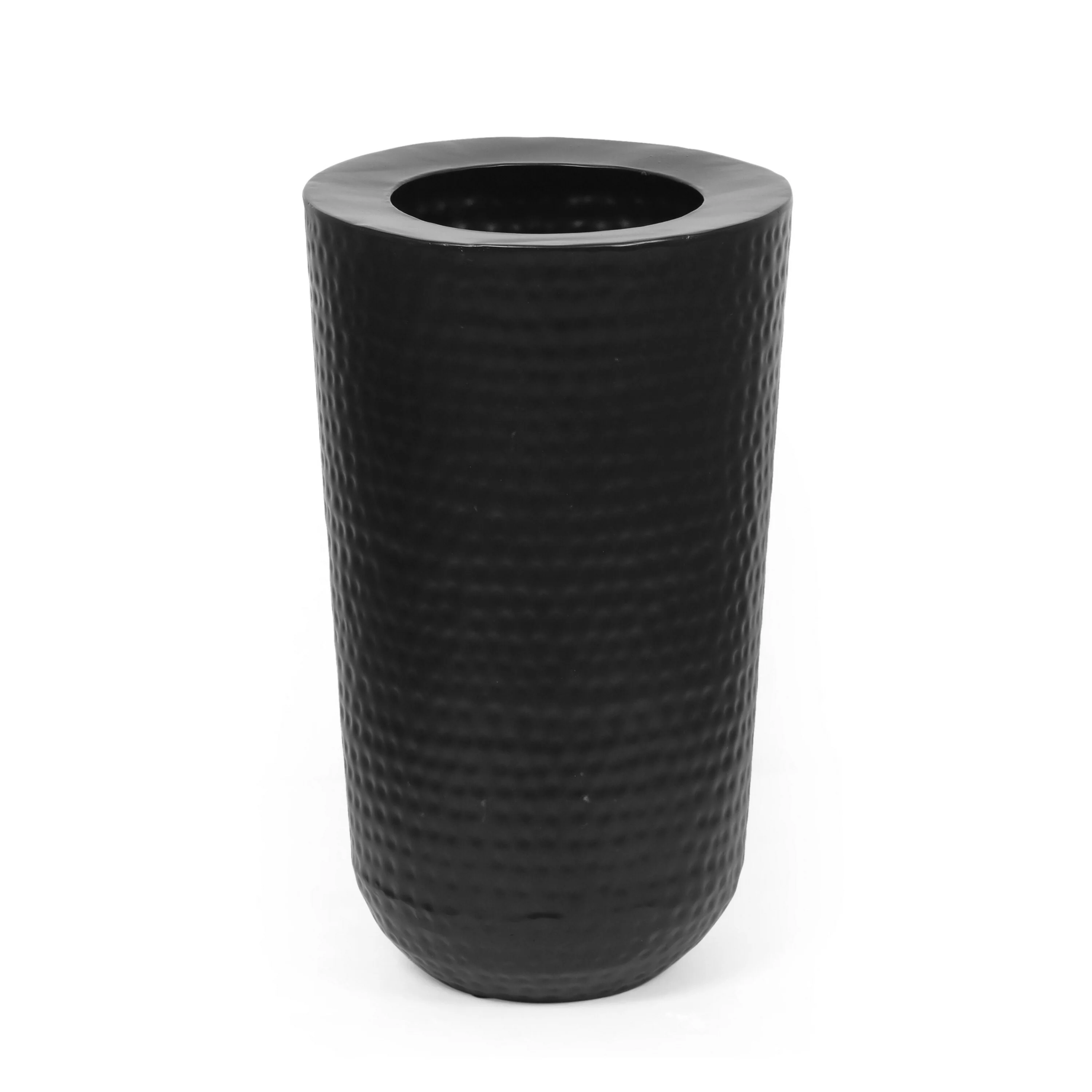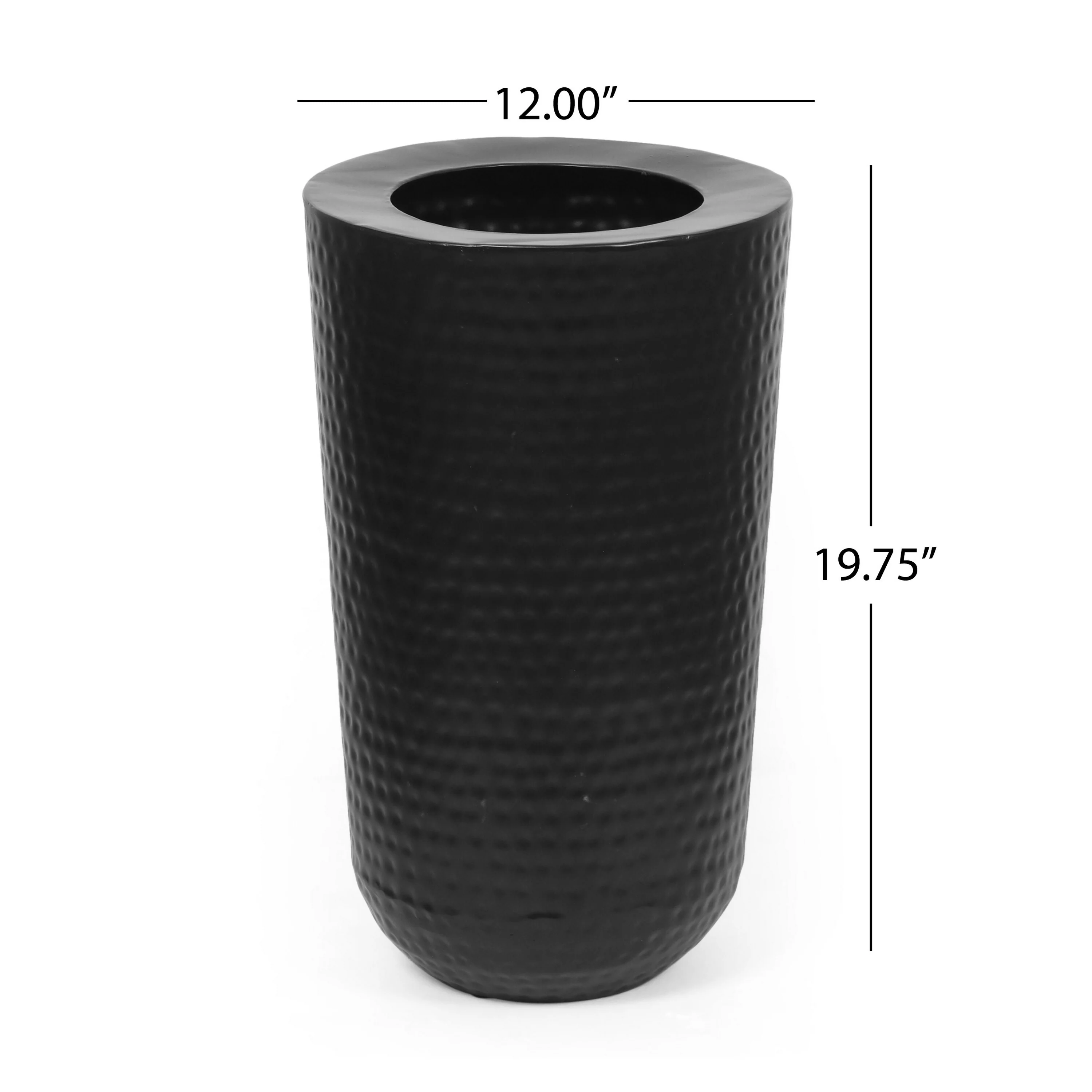 Libra Planter, Cylindrical Shape, Hammered Design, 20 Inch Black Iron