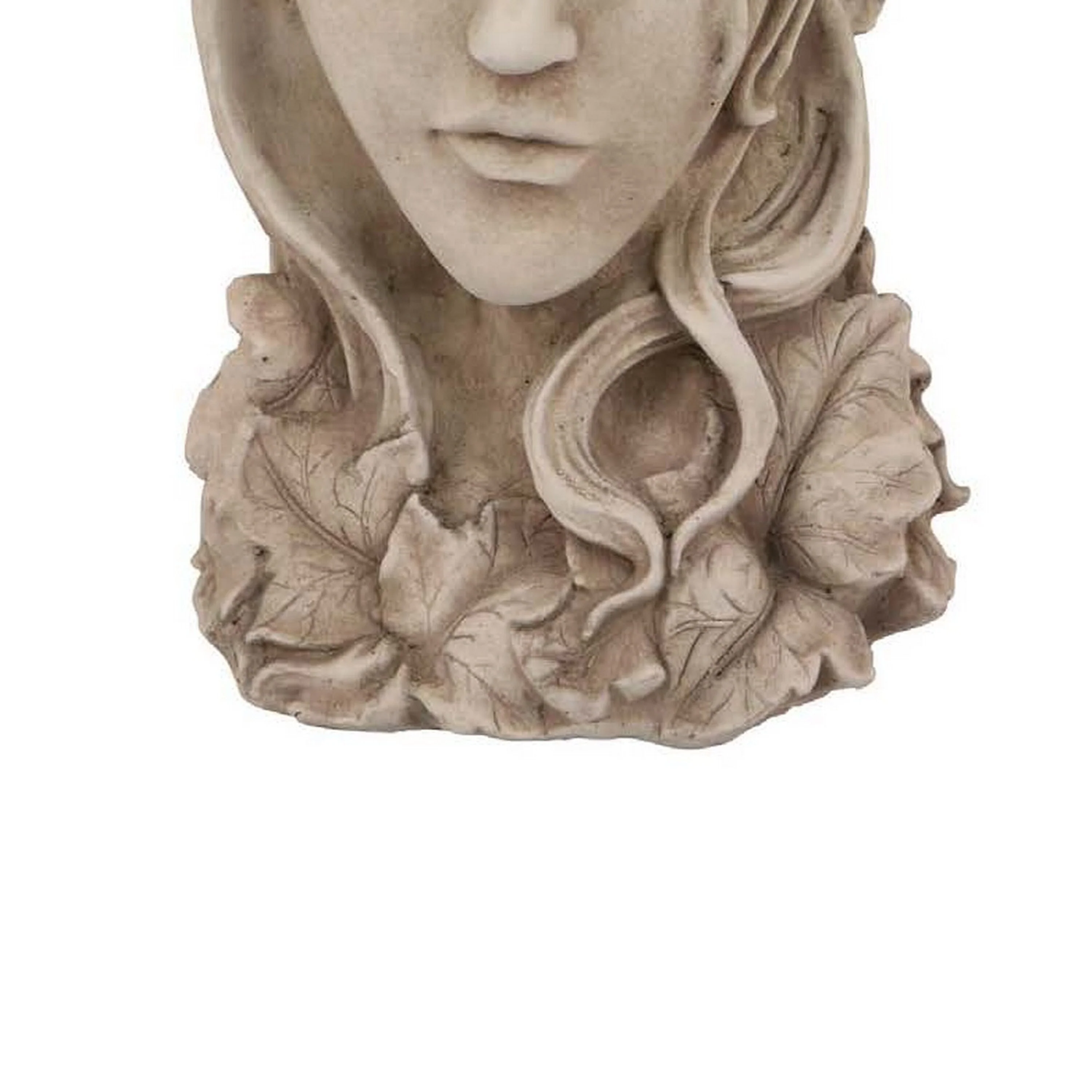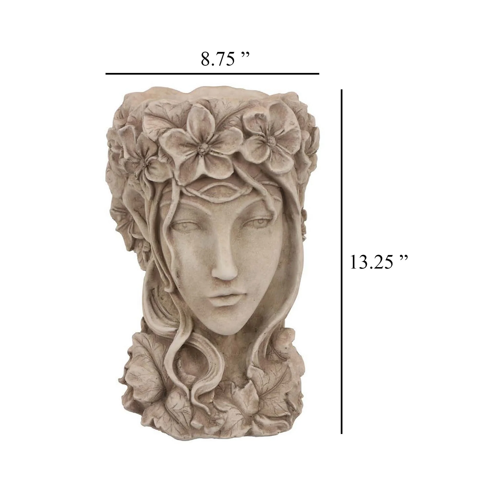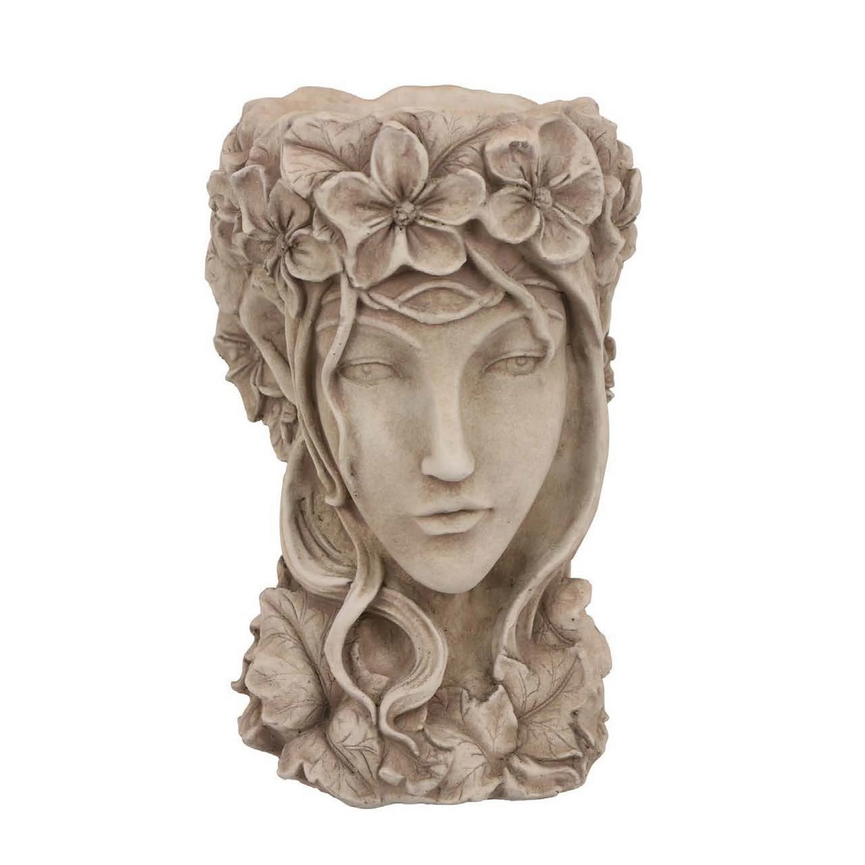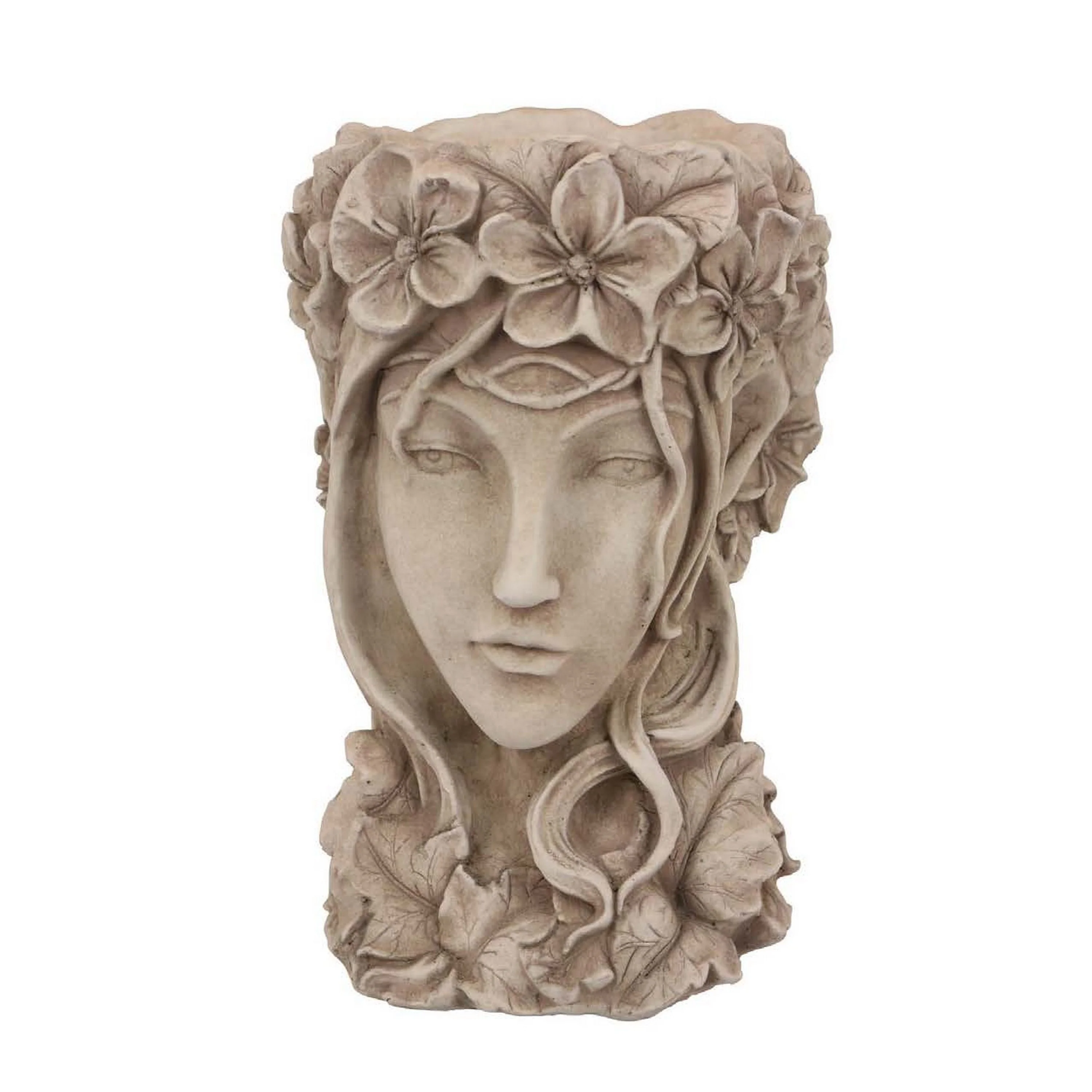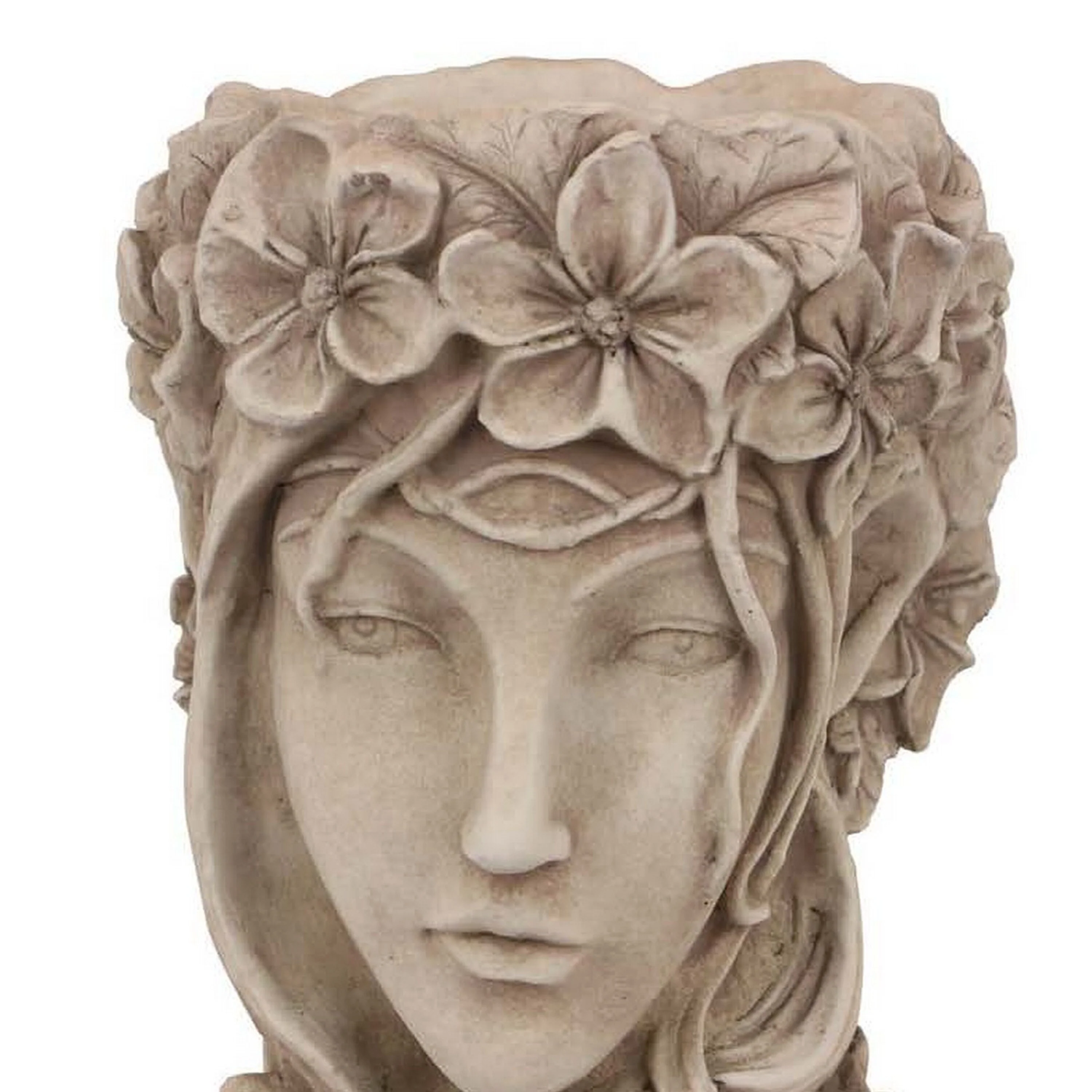 Accent Planter, Face Design Floral Details, 14 Inch Beige Terracotta