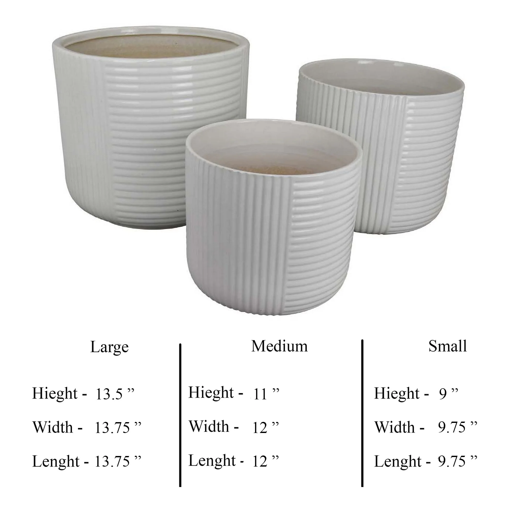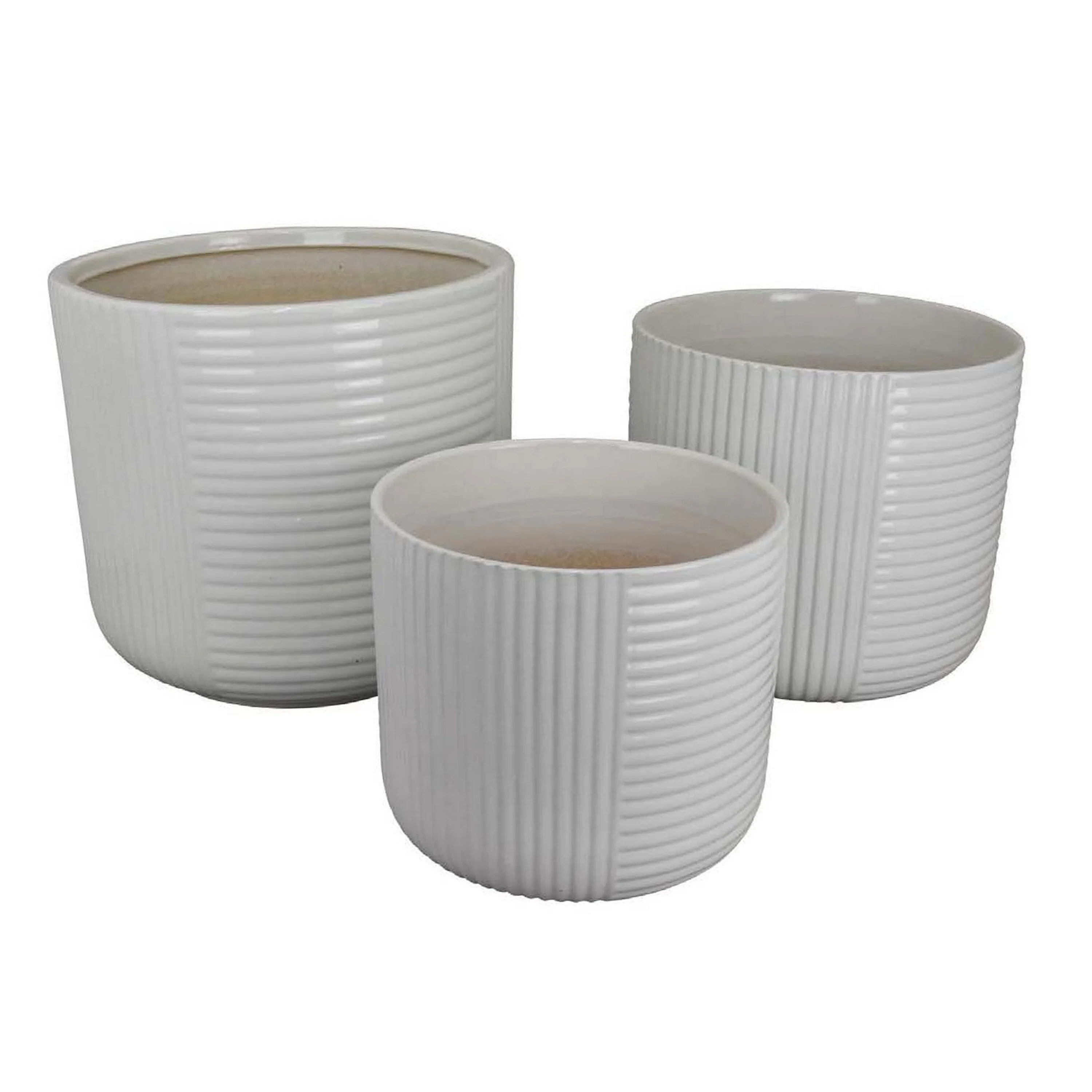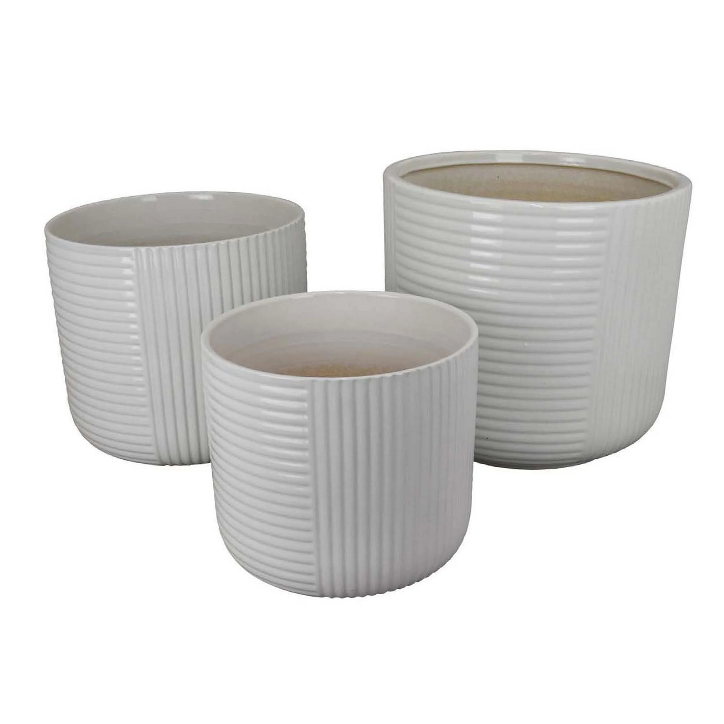 Garden Planter Set of 3, White Ceramic with Retro Striped Design