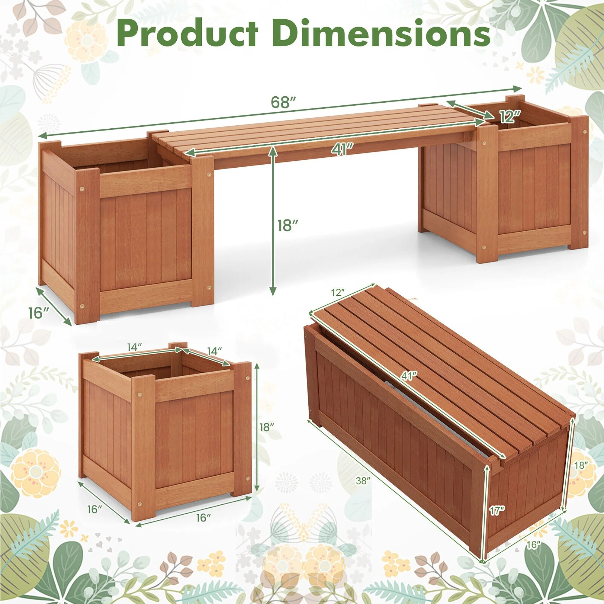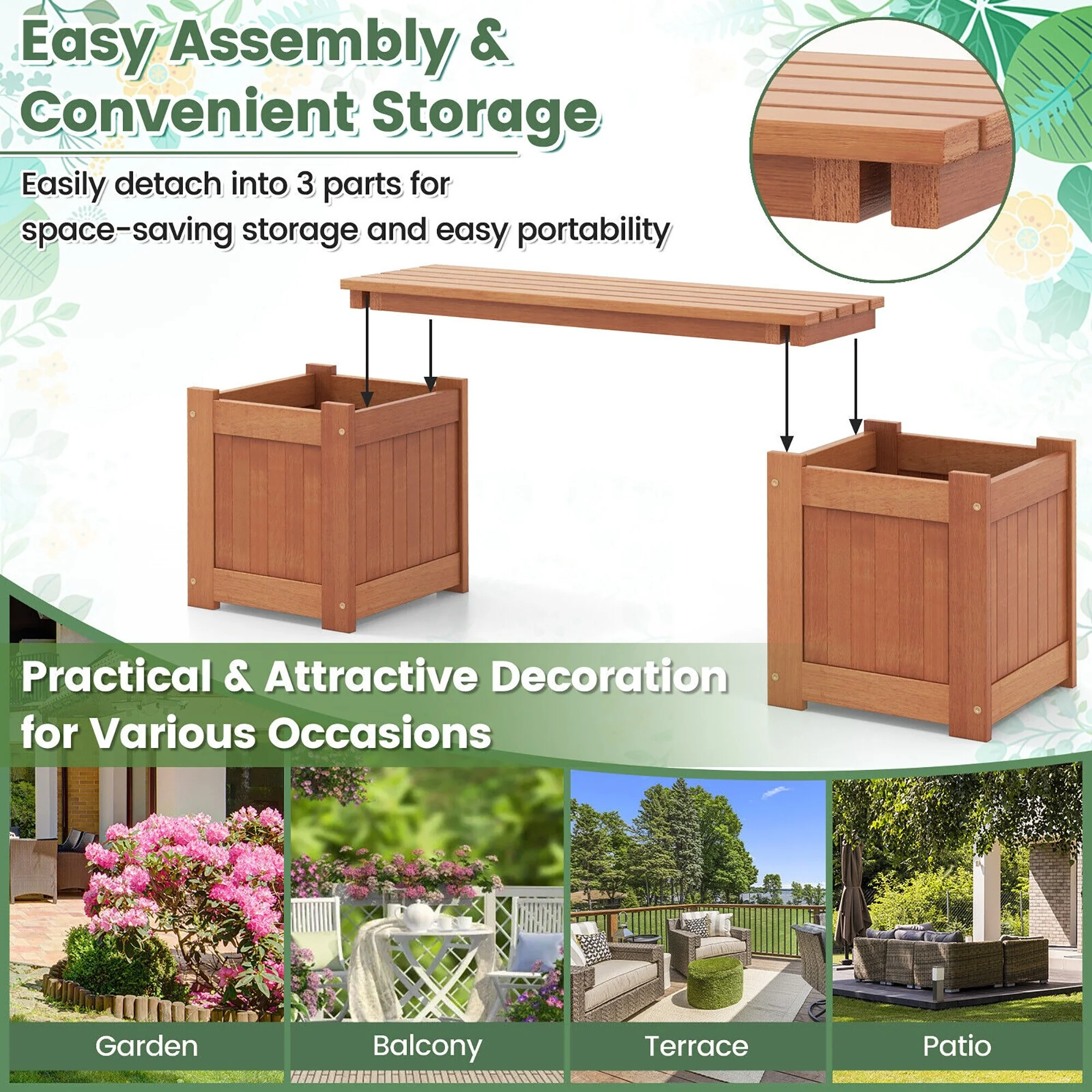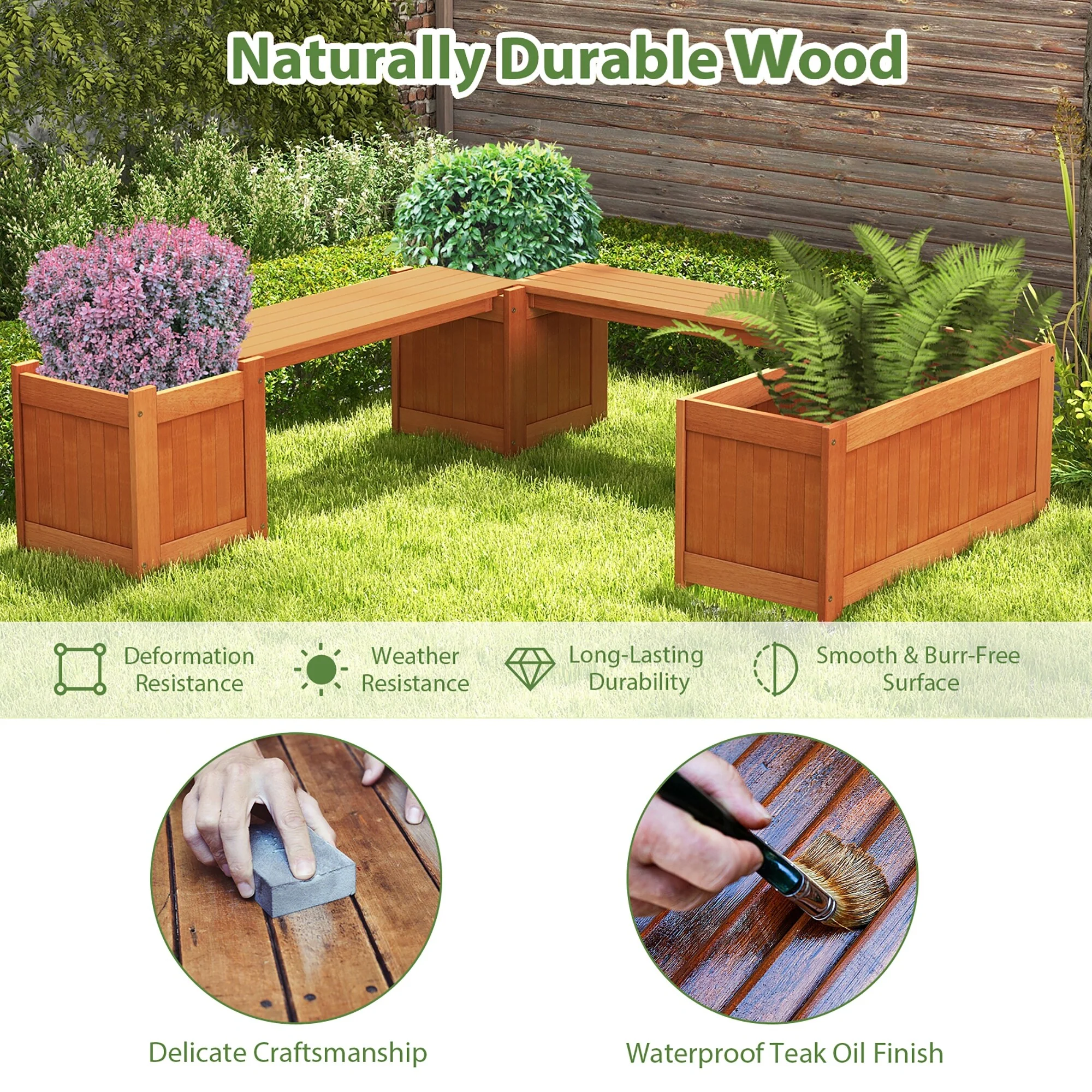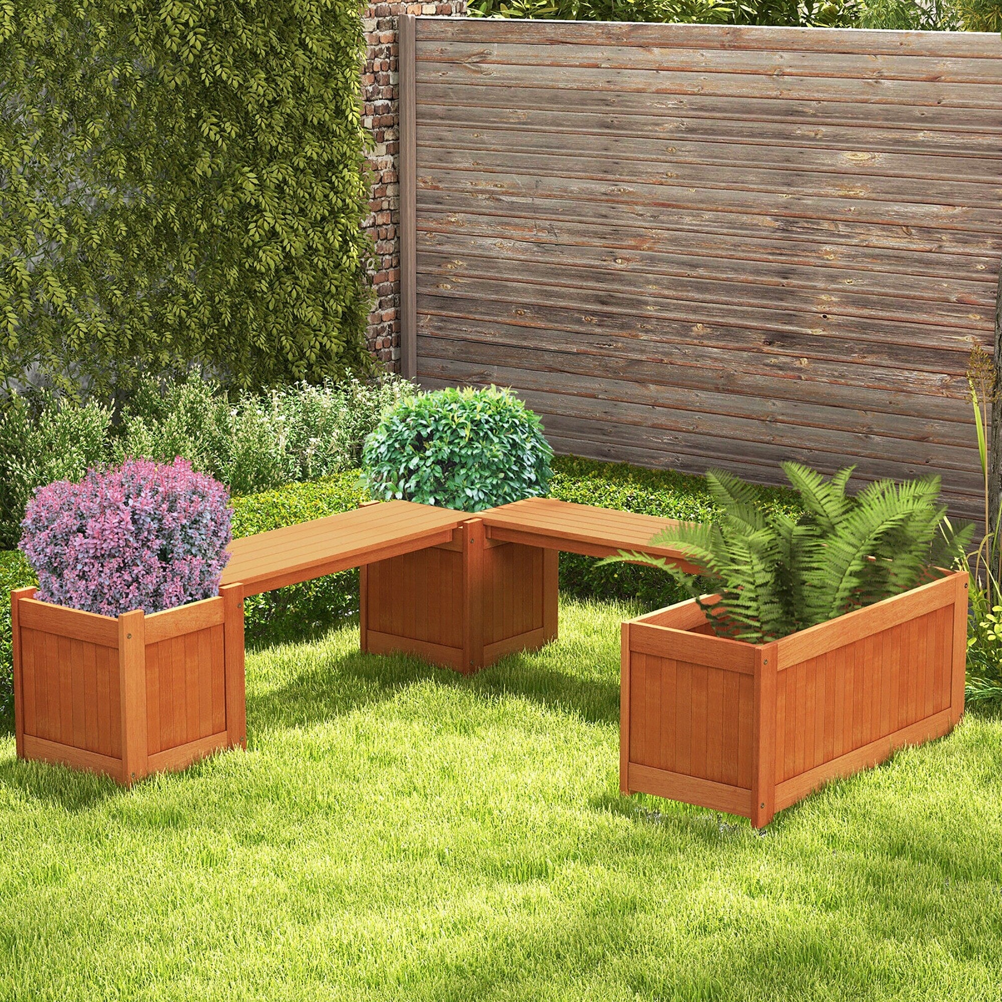 Gymax Wood Wooden Planter Box w/ Seat 2-in-1 Raised Garden Bed & Bench