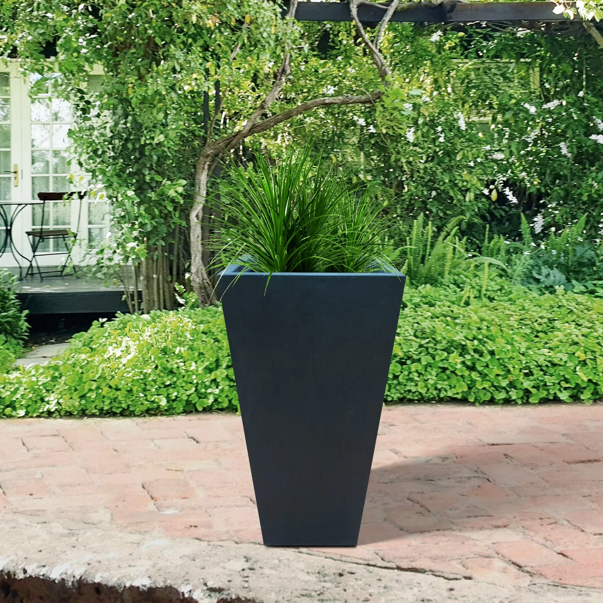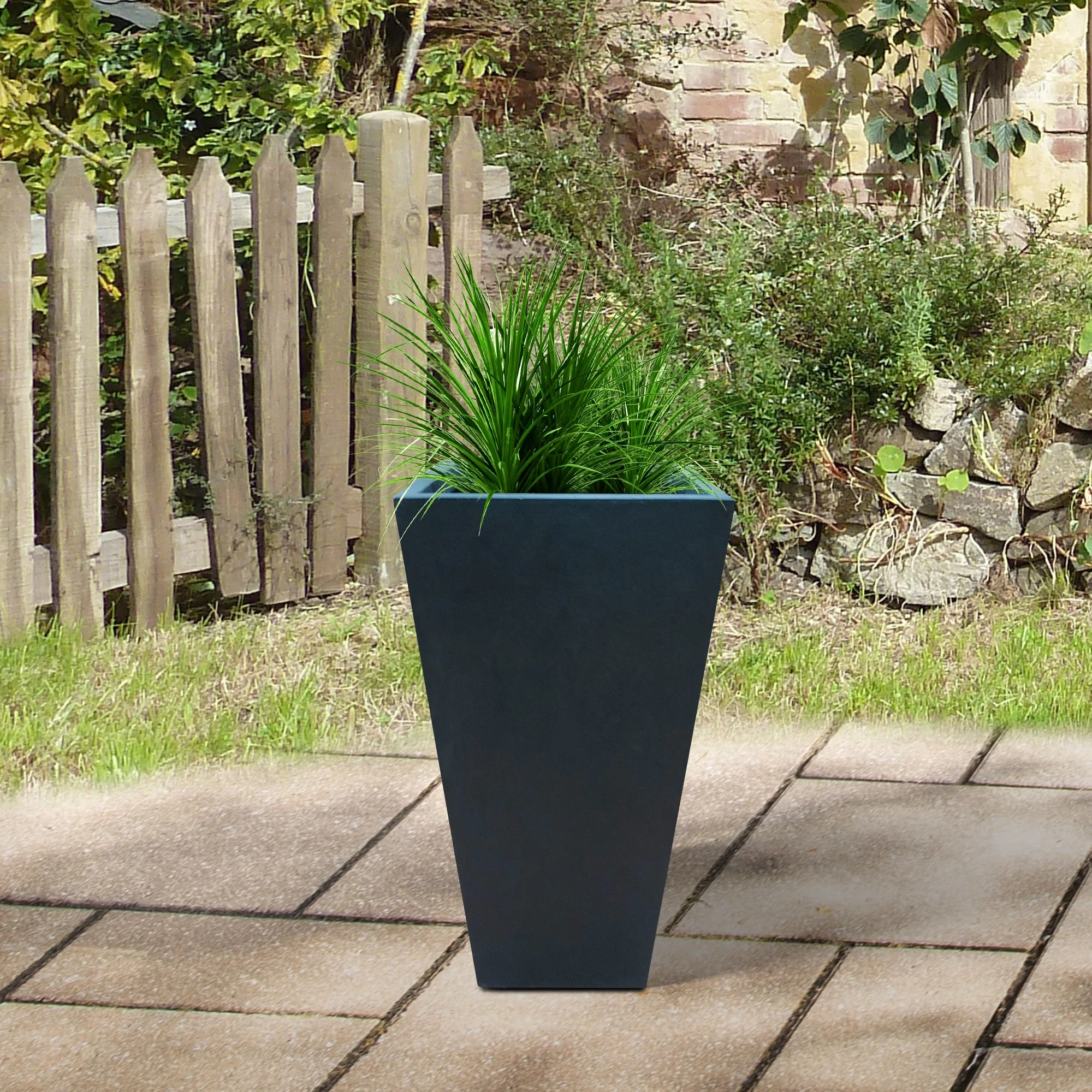 Black Lightweight Concrete Modern Tapered Rectangle Planter