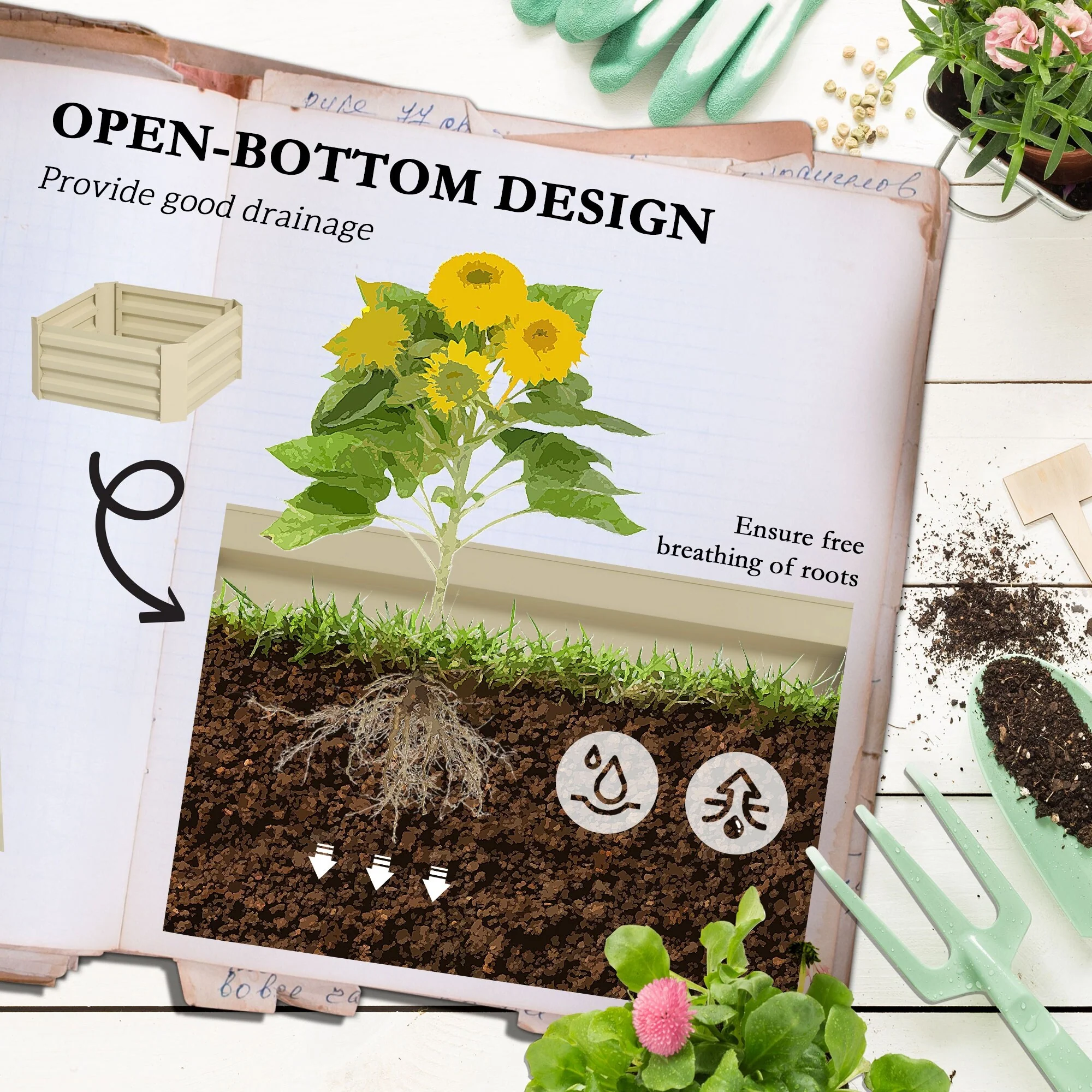 GDFStudio - Lucas Heavy-Duty Galvanized Raised Garden Bed Kit for Outdoor Vegetables, Flowers, and Herbs
