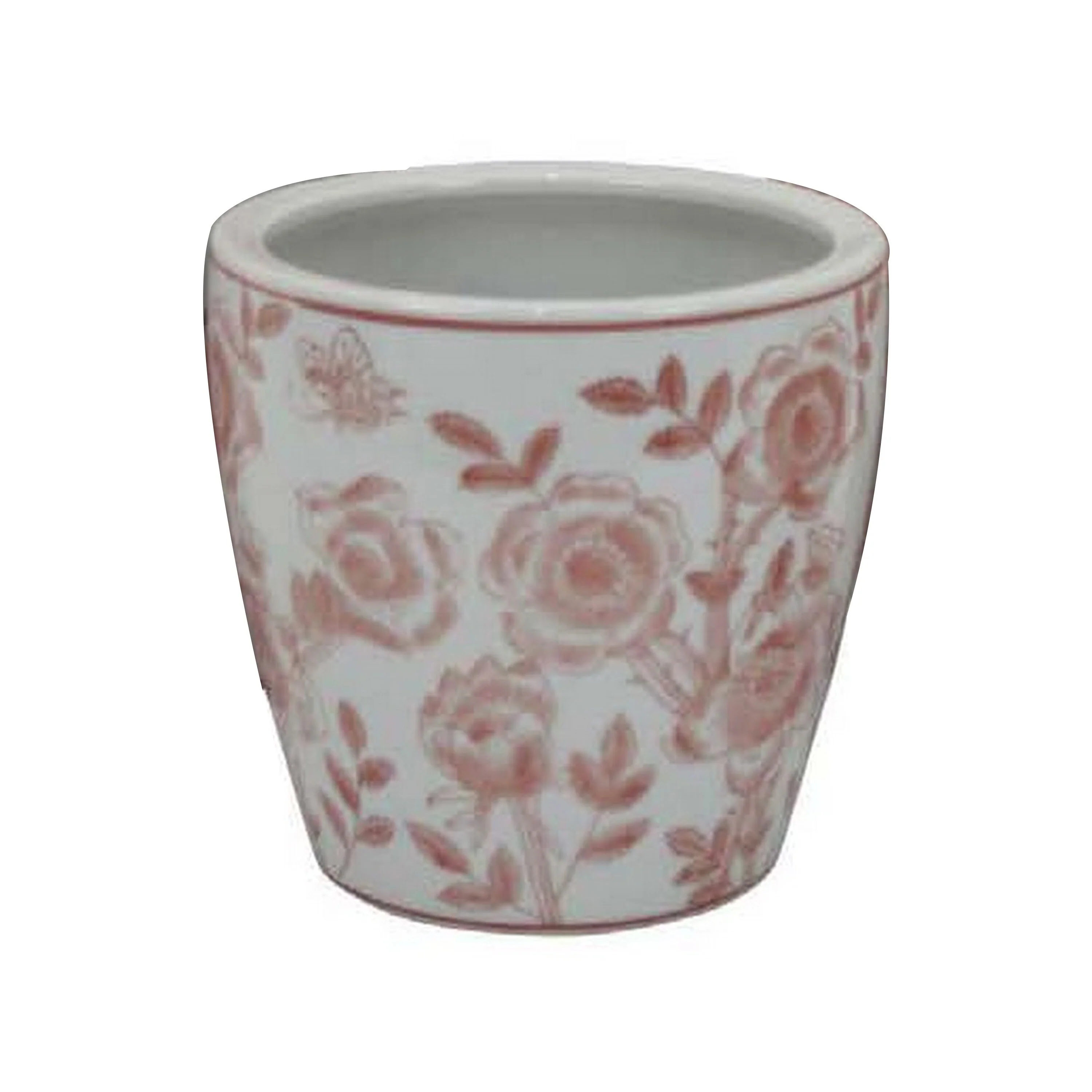 Kerry Accent Planter Pot Set of 4, Pink Floral Pattern, White Ceramic