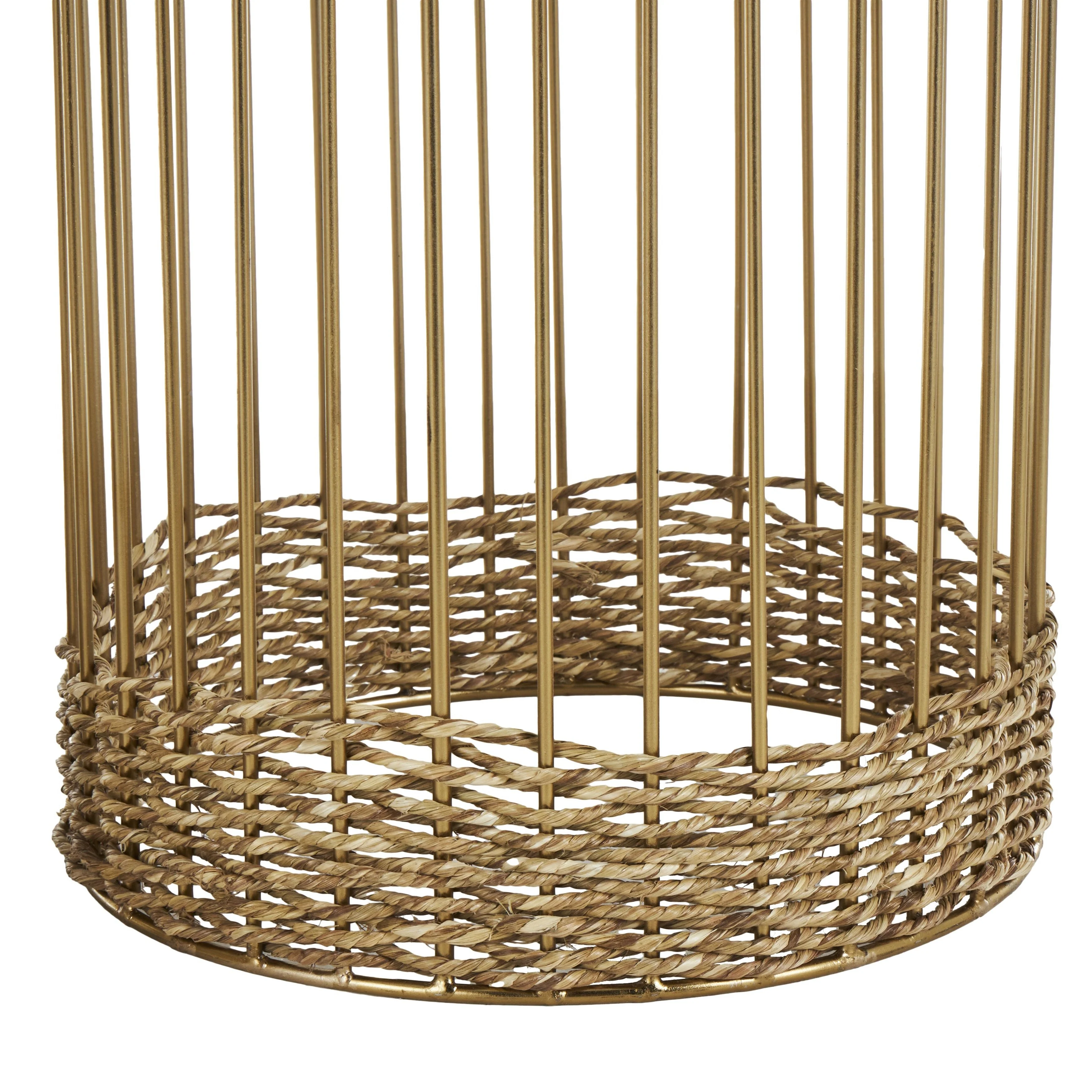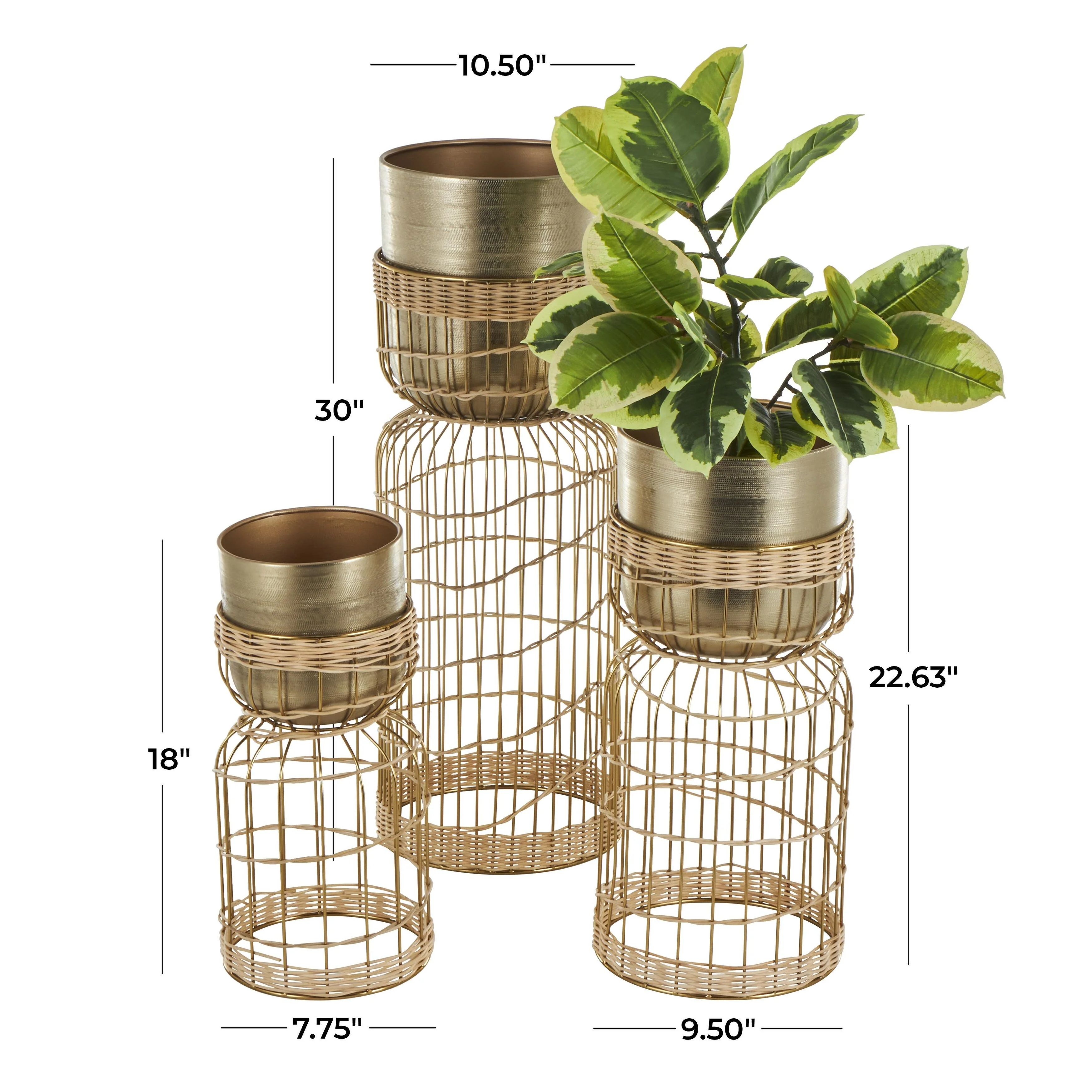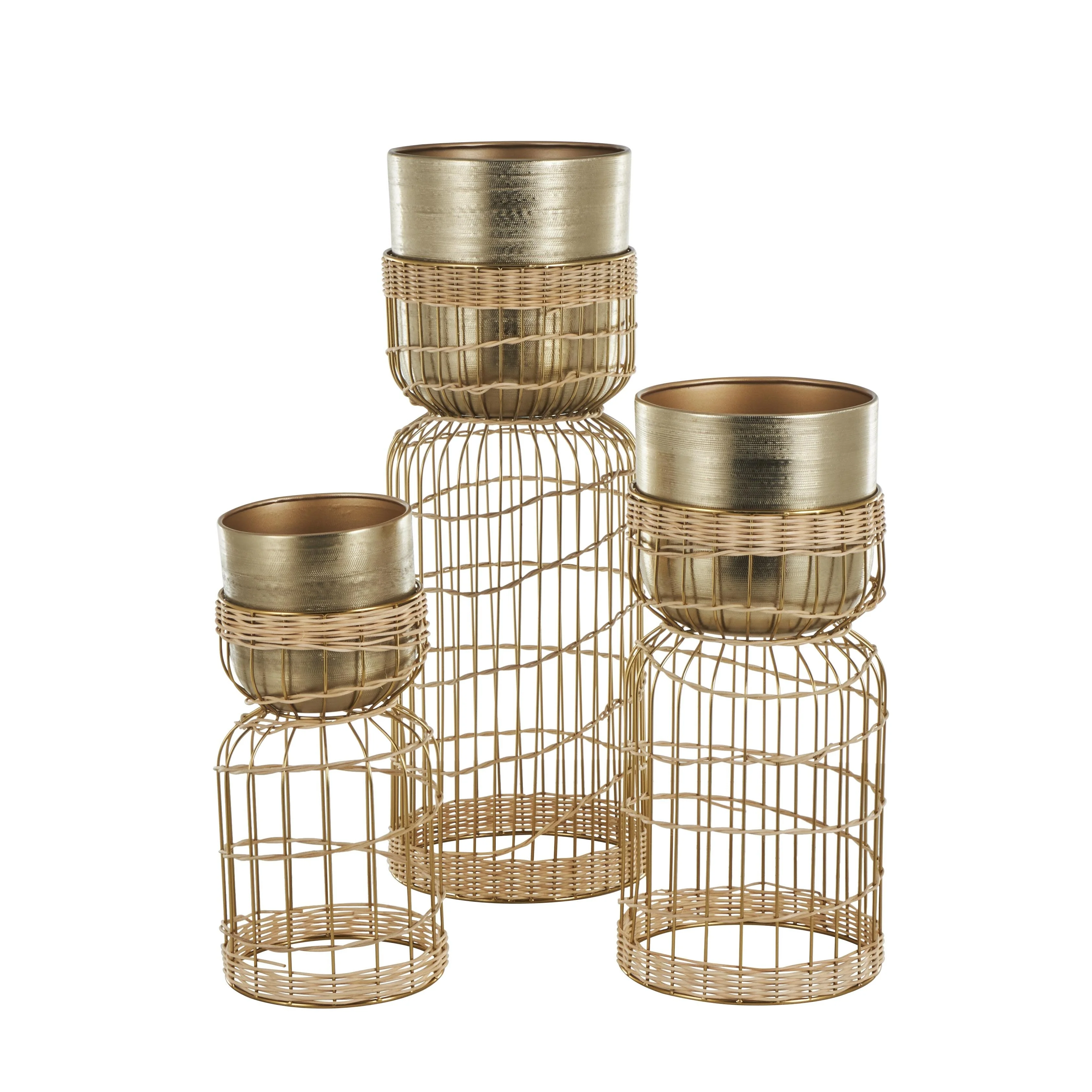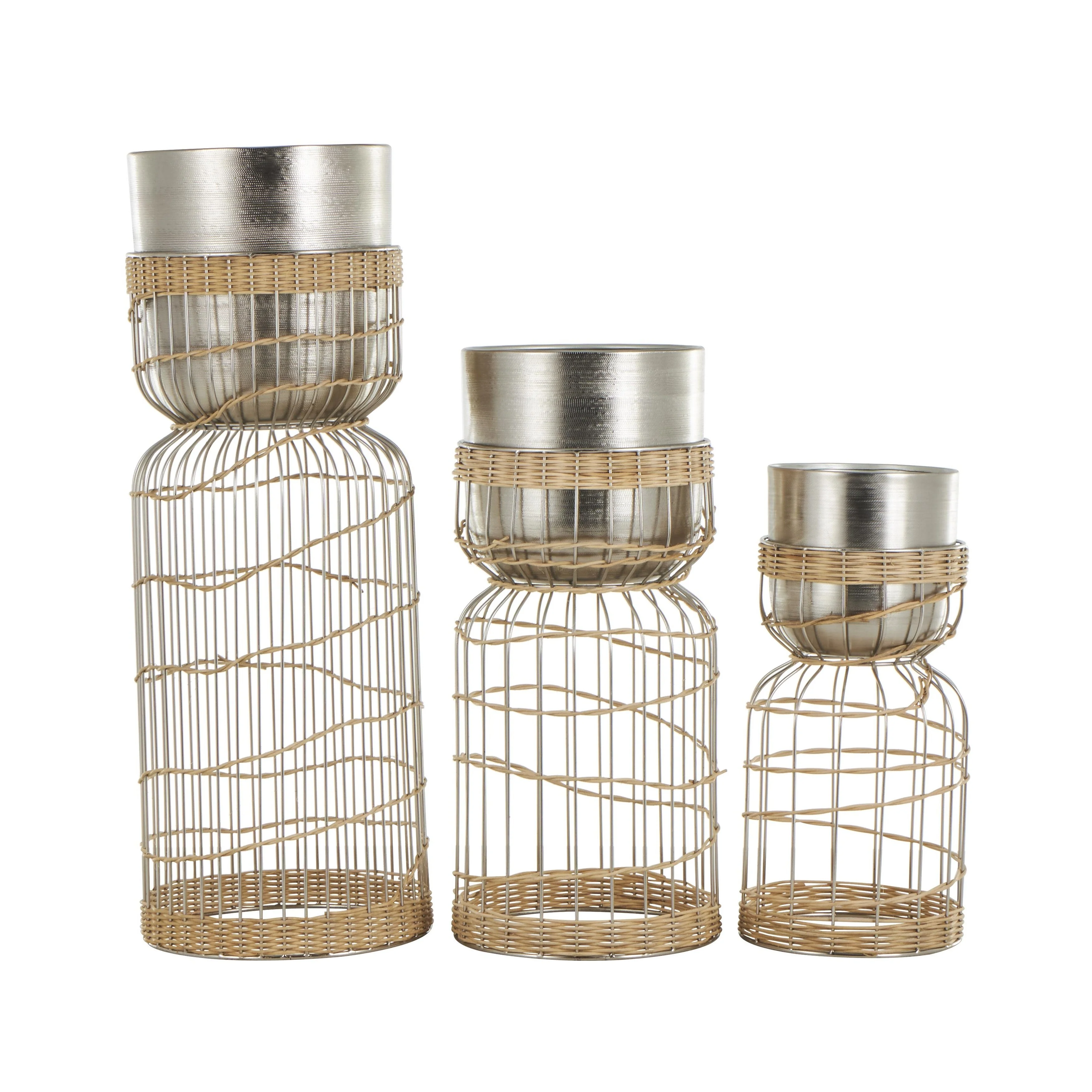 Metal Textured Dome Indoor Planter with Woven Seagrass or Rattan and Cage Rod Base - Set of 3 Gold or Silver - Roche River Decor