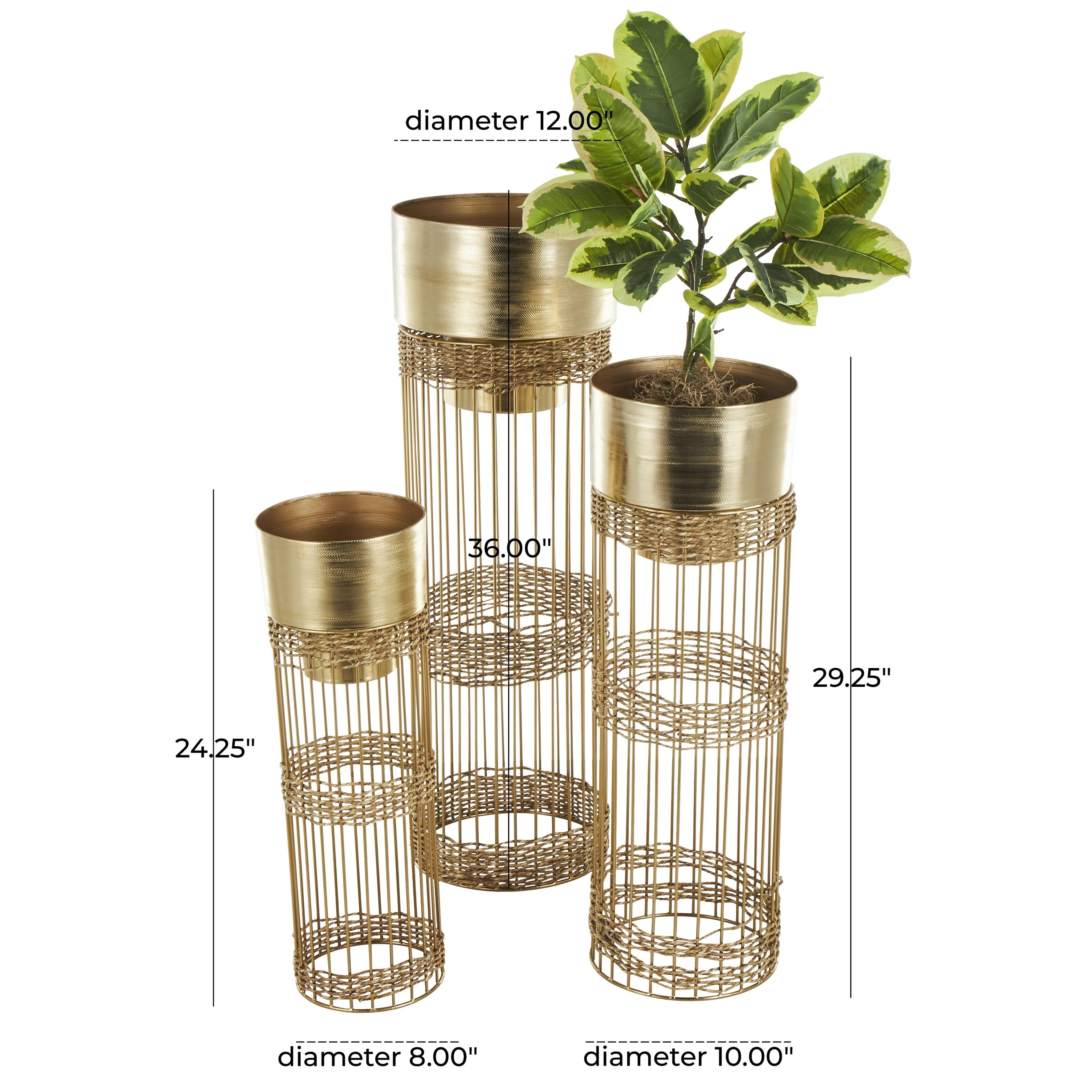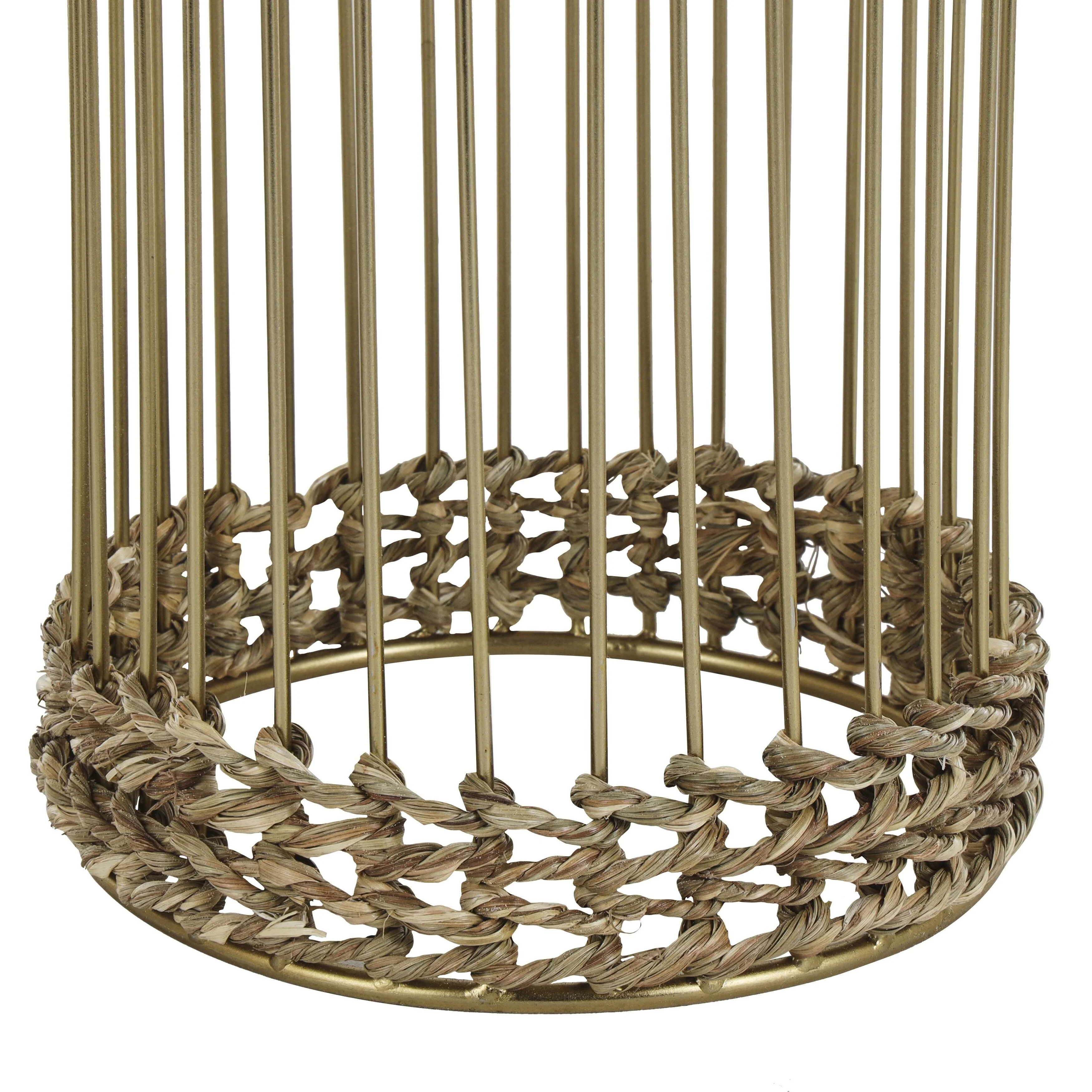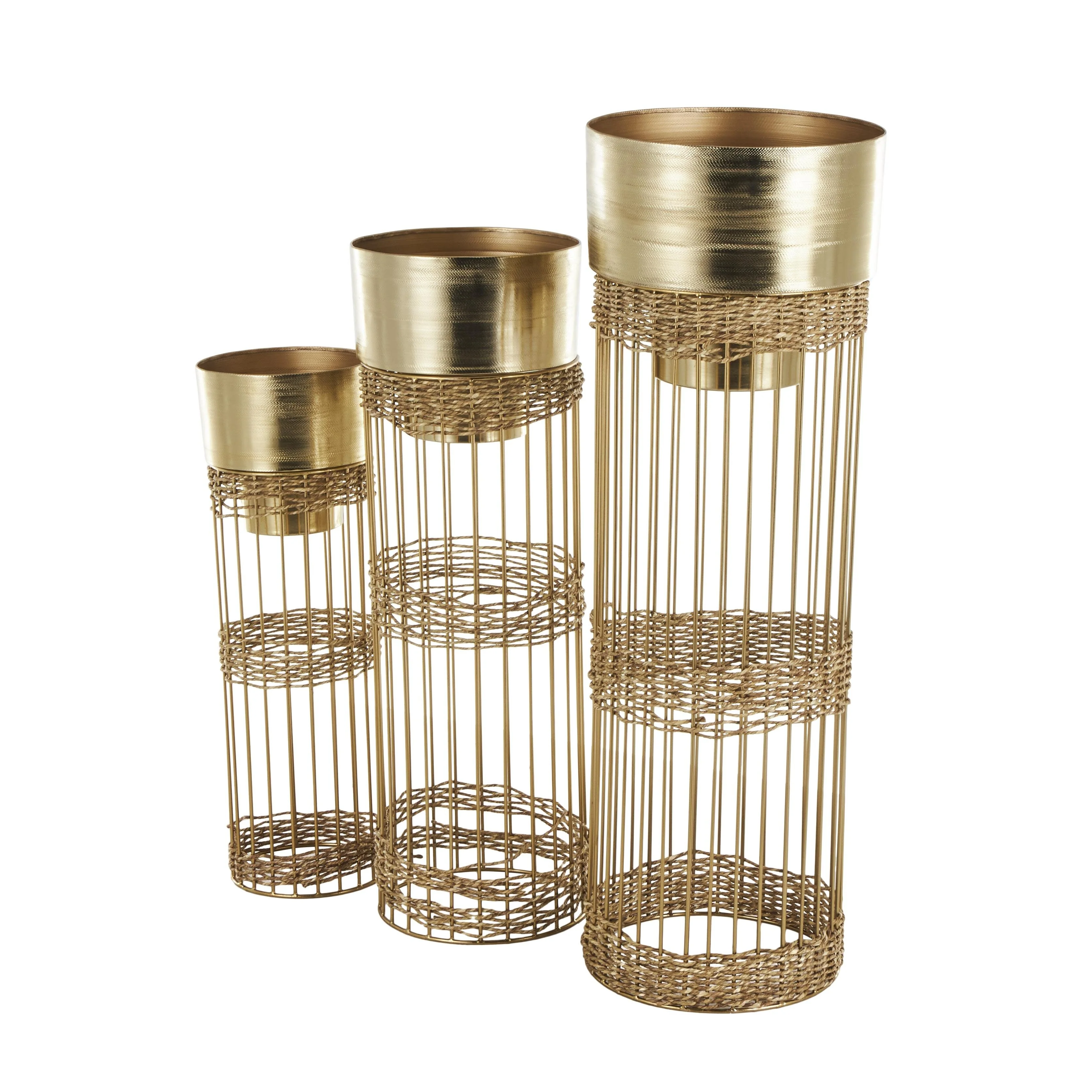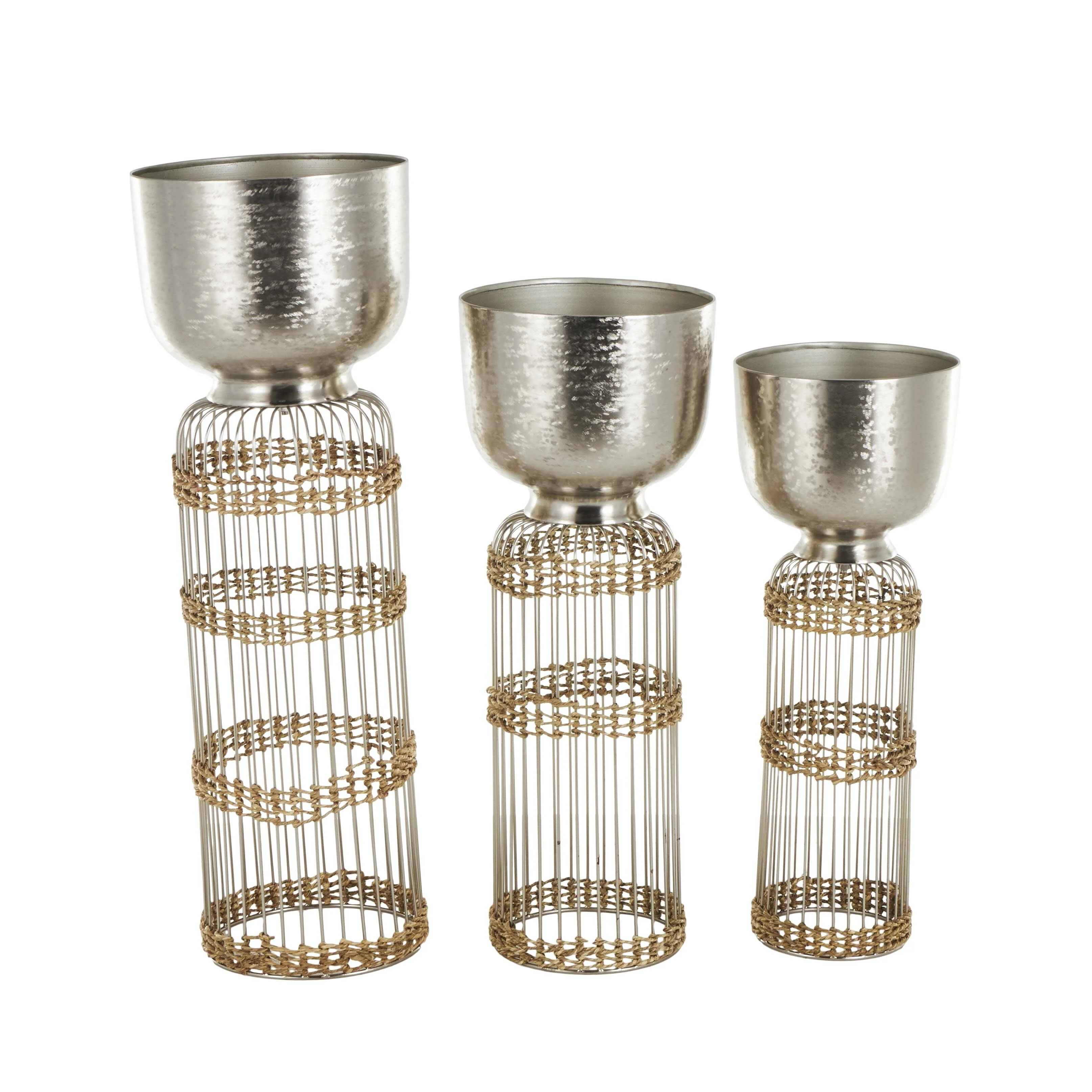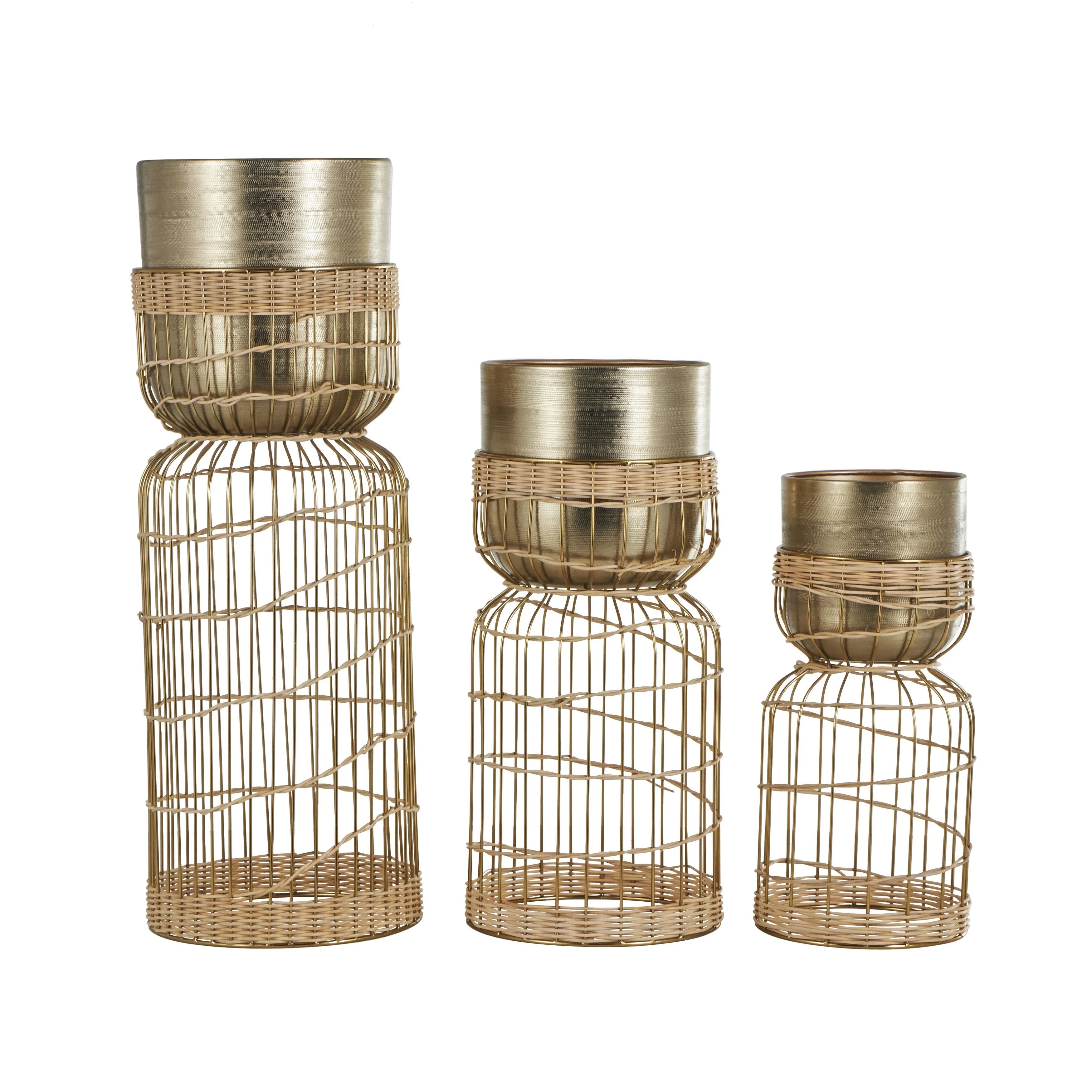 Metal Textured Dome Indoor Planter with Woven Seagrass or Rattan and Cage Rod Base - Set of 3 Gold or Silver - Roche River Decor