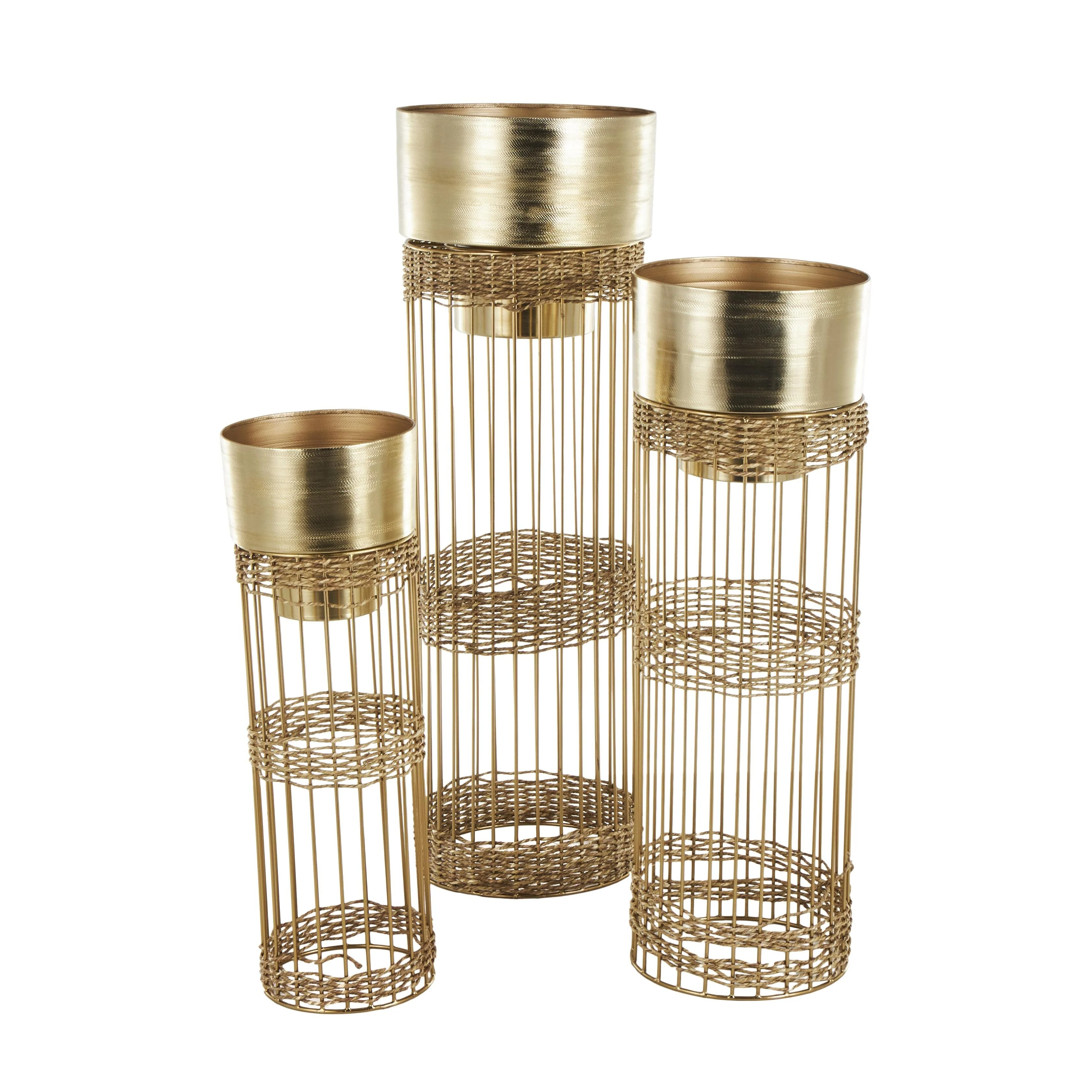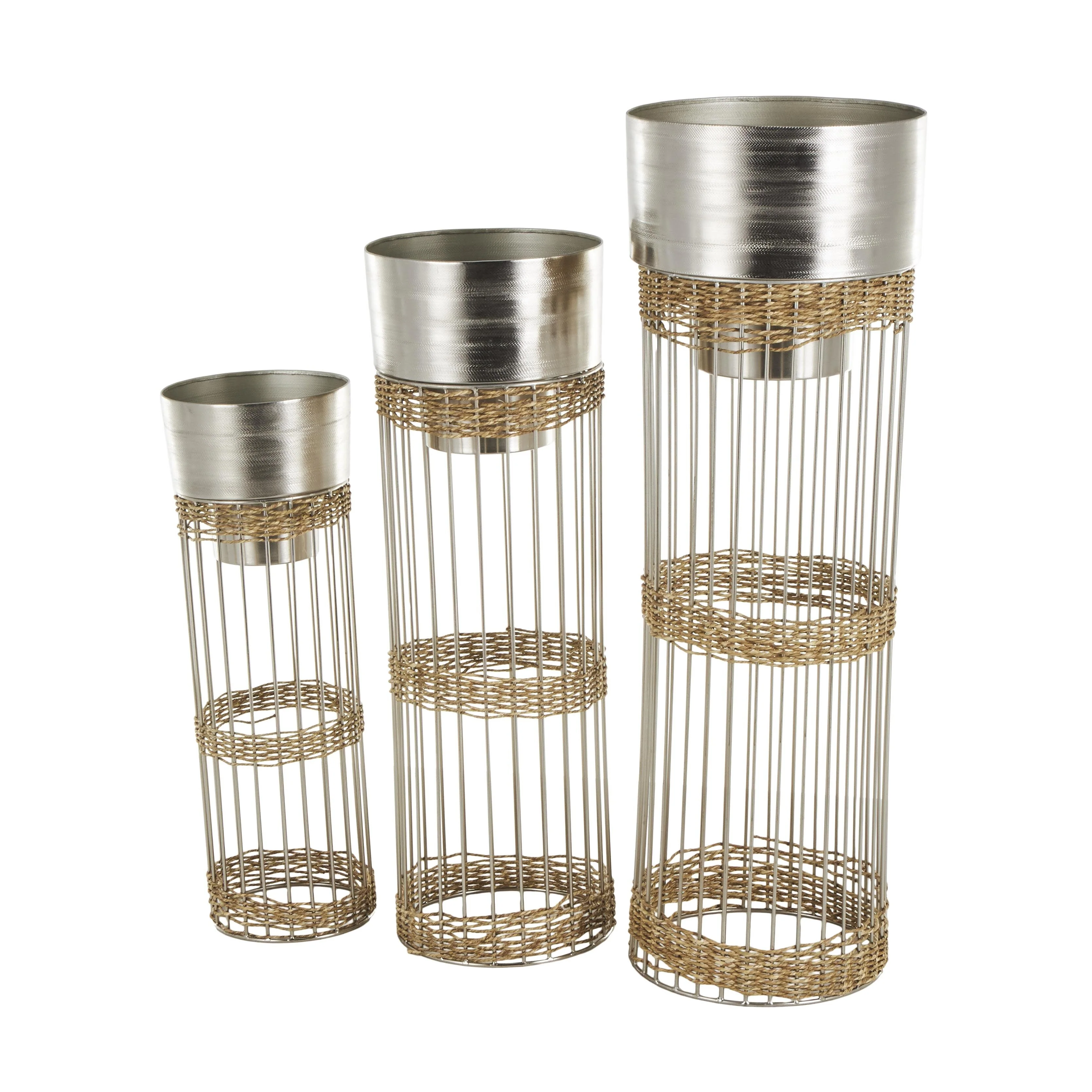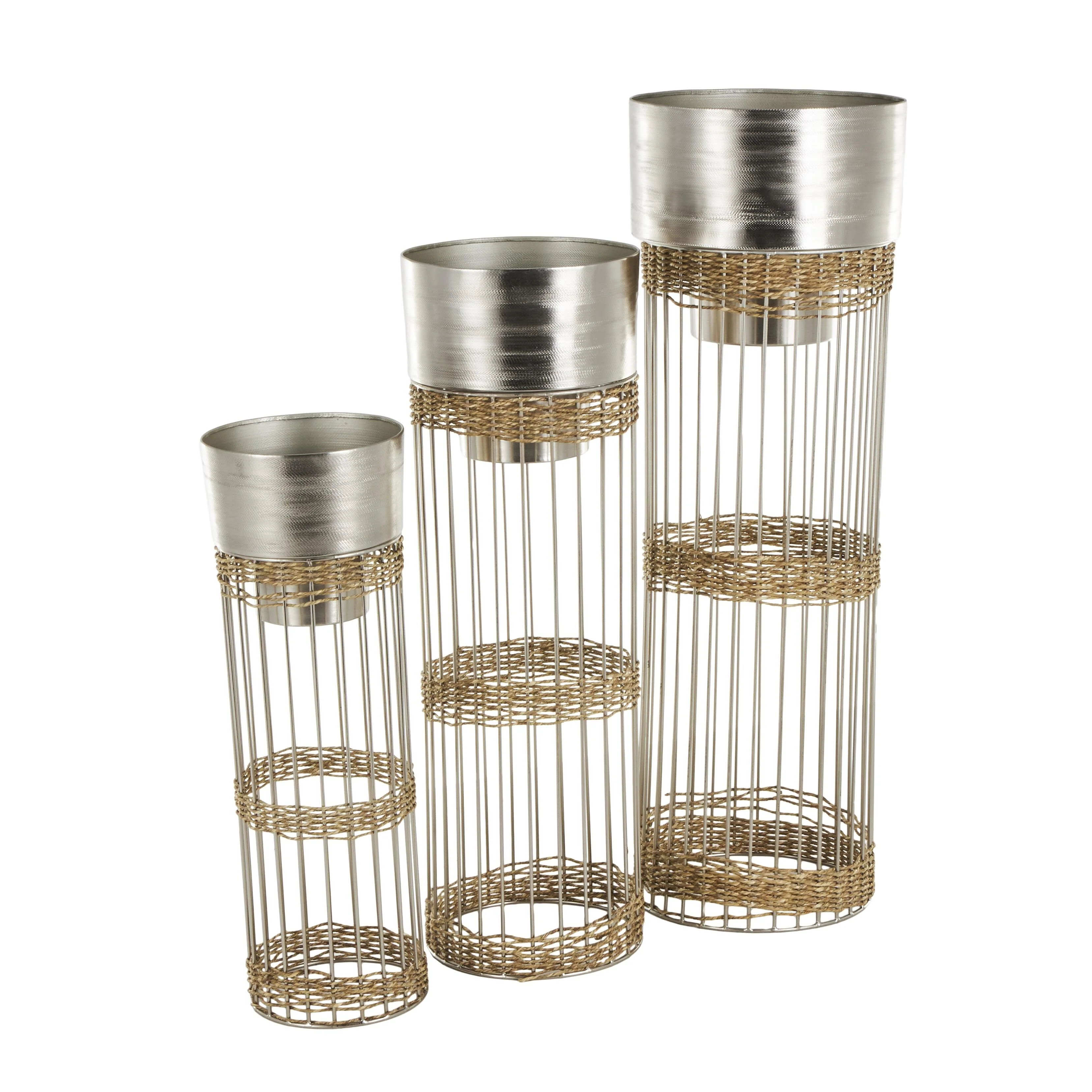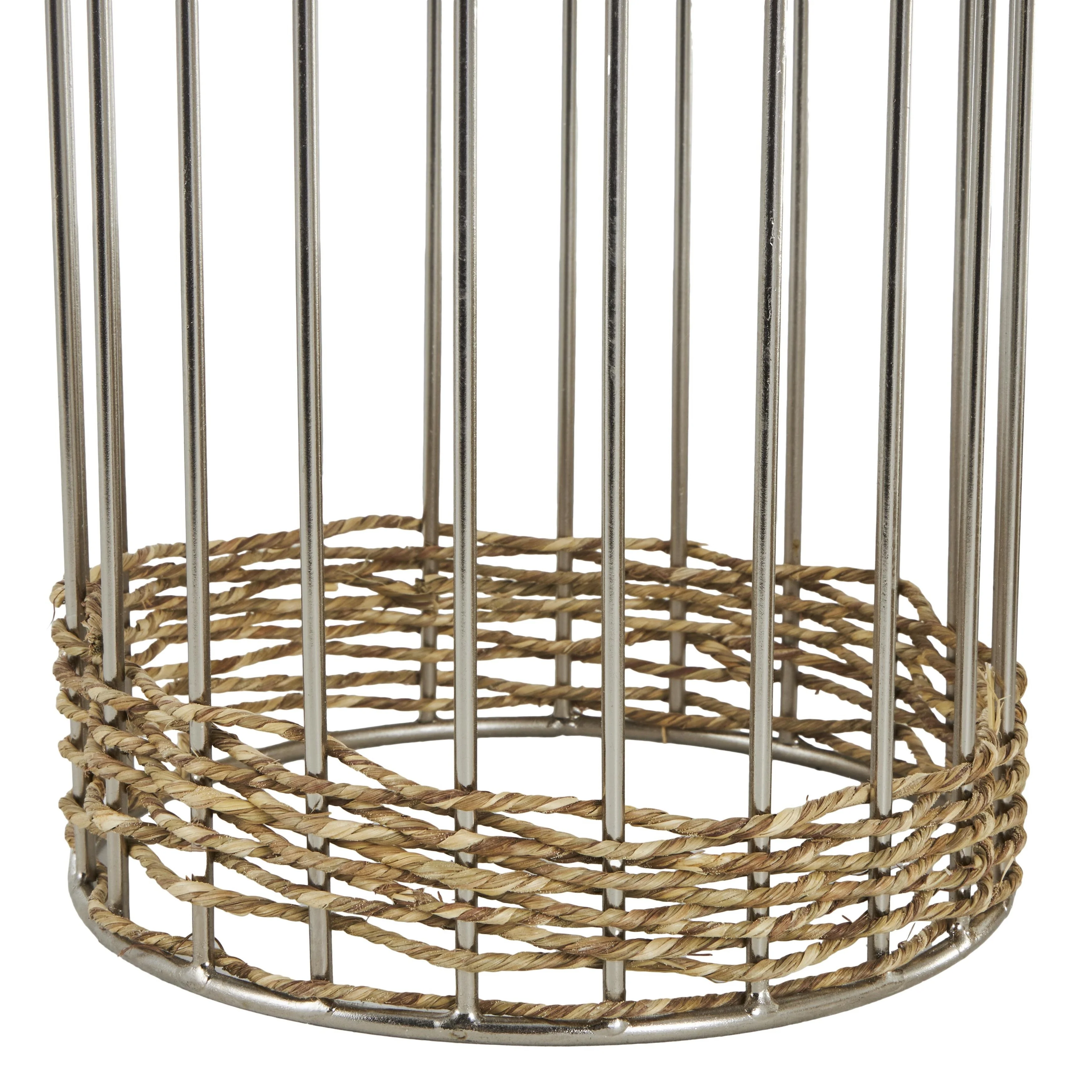 Metal Textured Dome Indoor Planter with Woven Seagrass or Rattan and Cage Rod Base - Set of 3 Gold or Silver - Roche River Decor