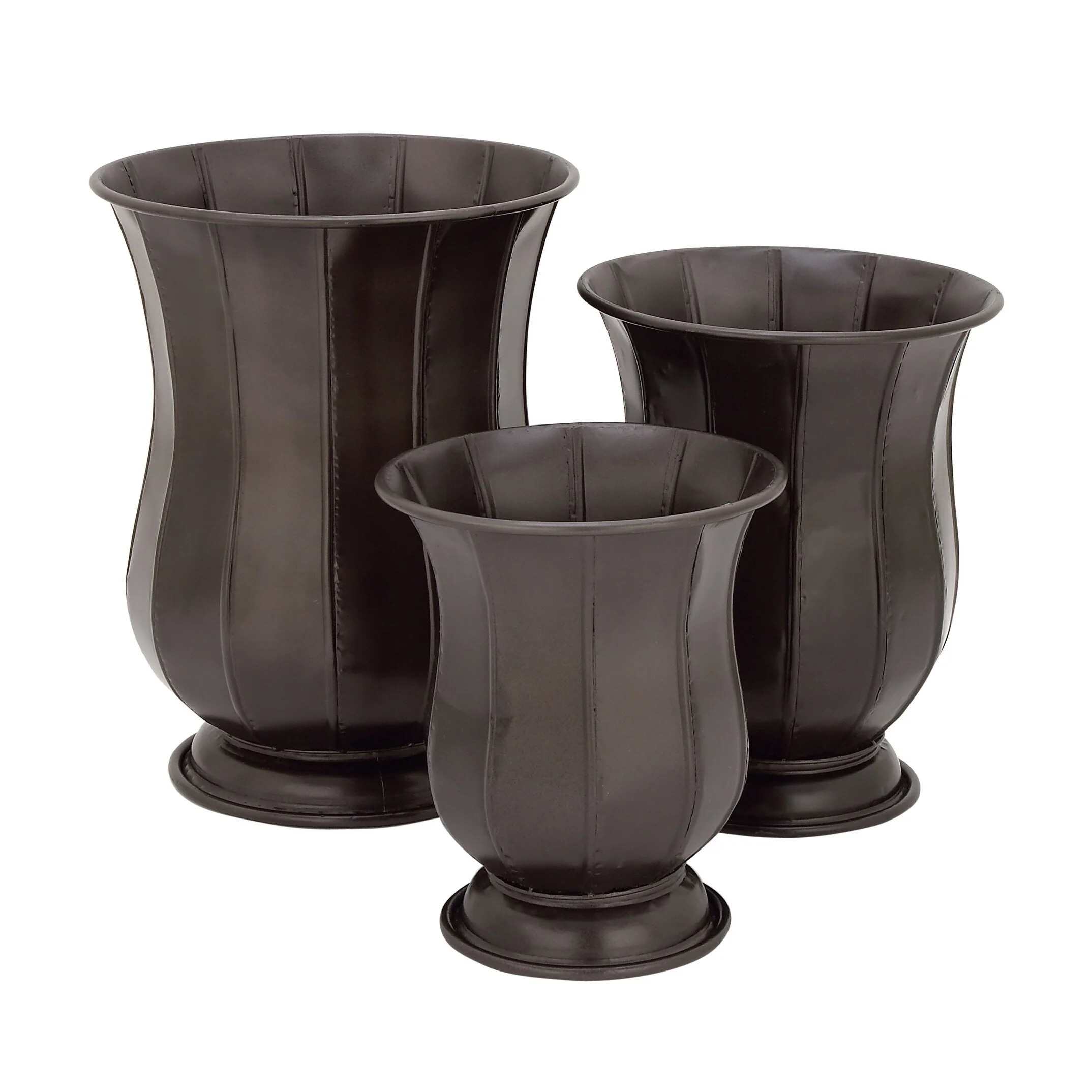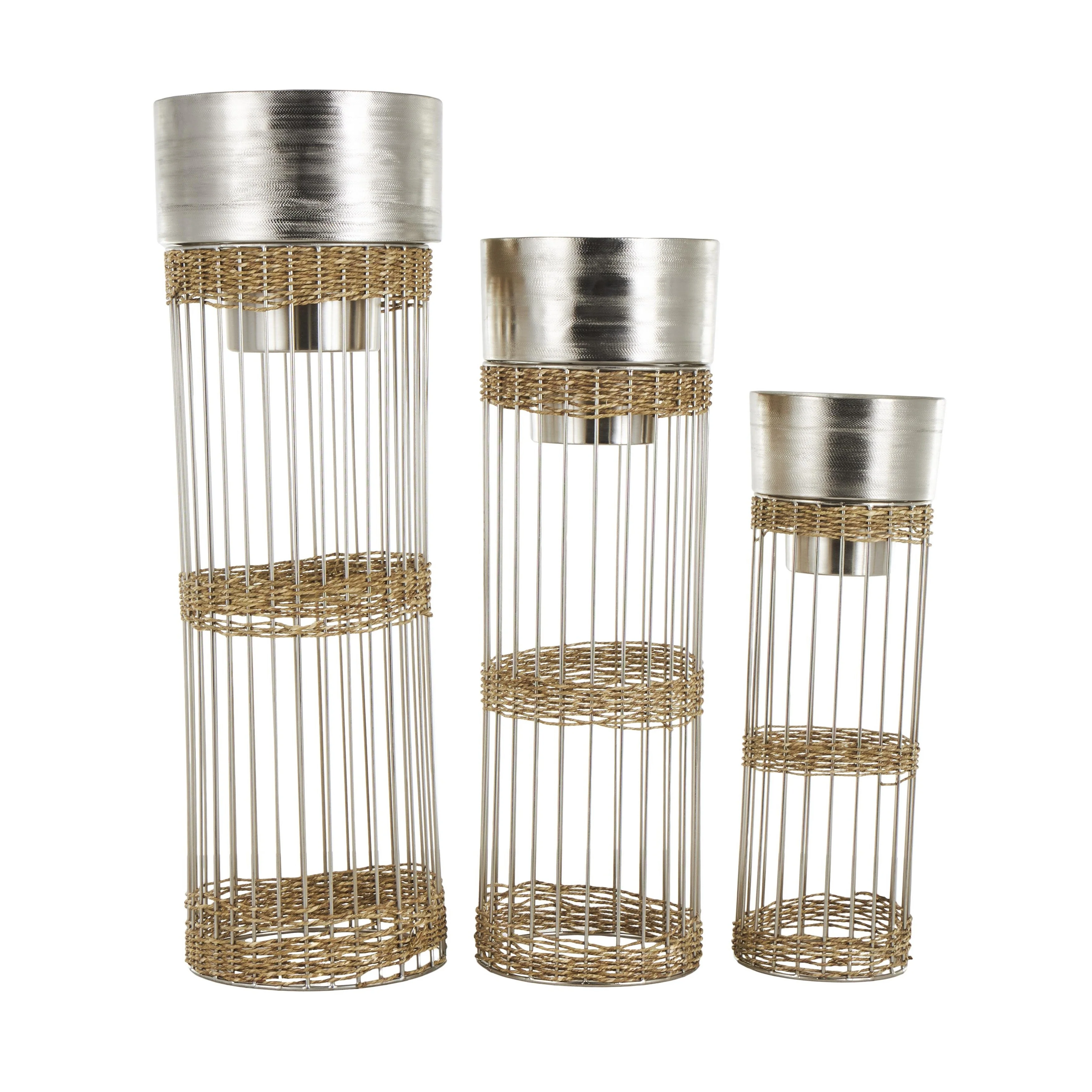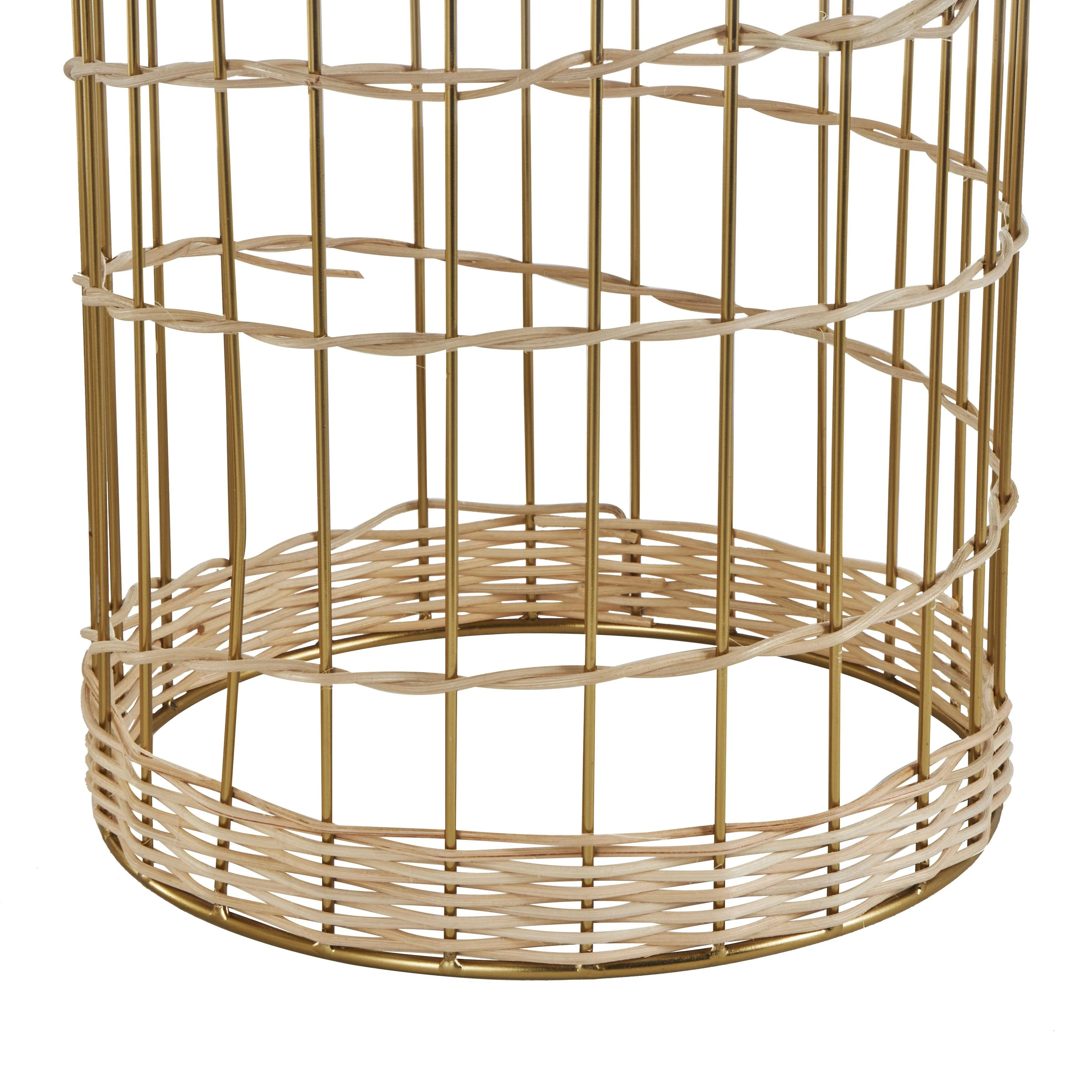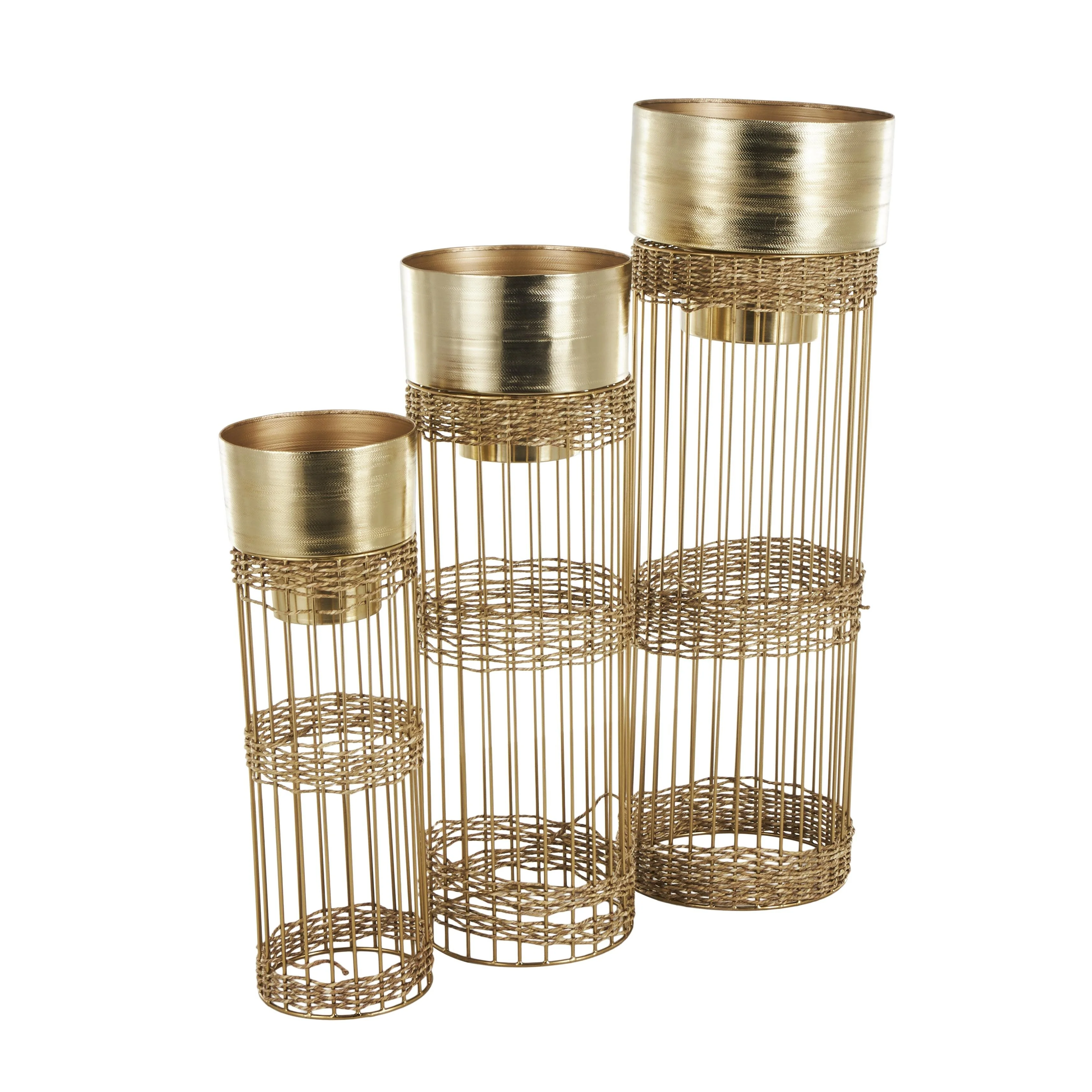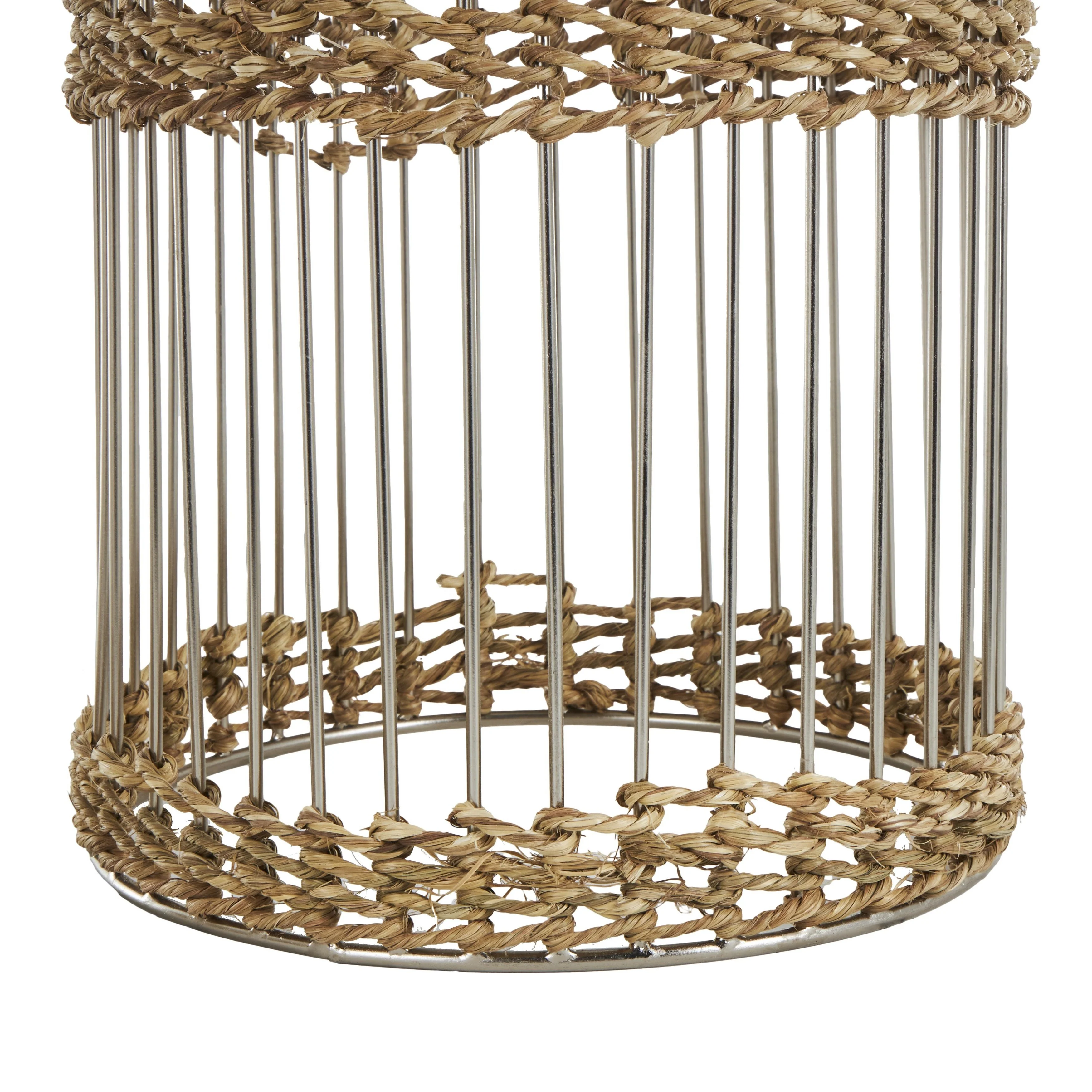Metal Textured Dome Indoor Planter with Woven Seagrass or Rattan and Cage Rod Base - Set of 3 Gold or Silver - Roche River Decor