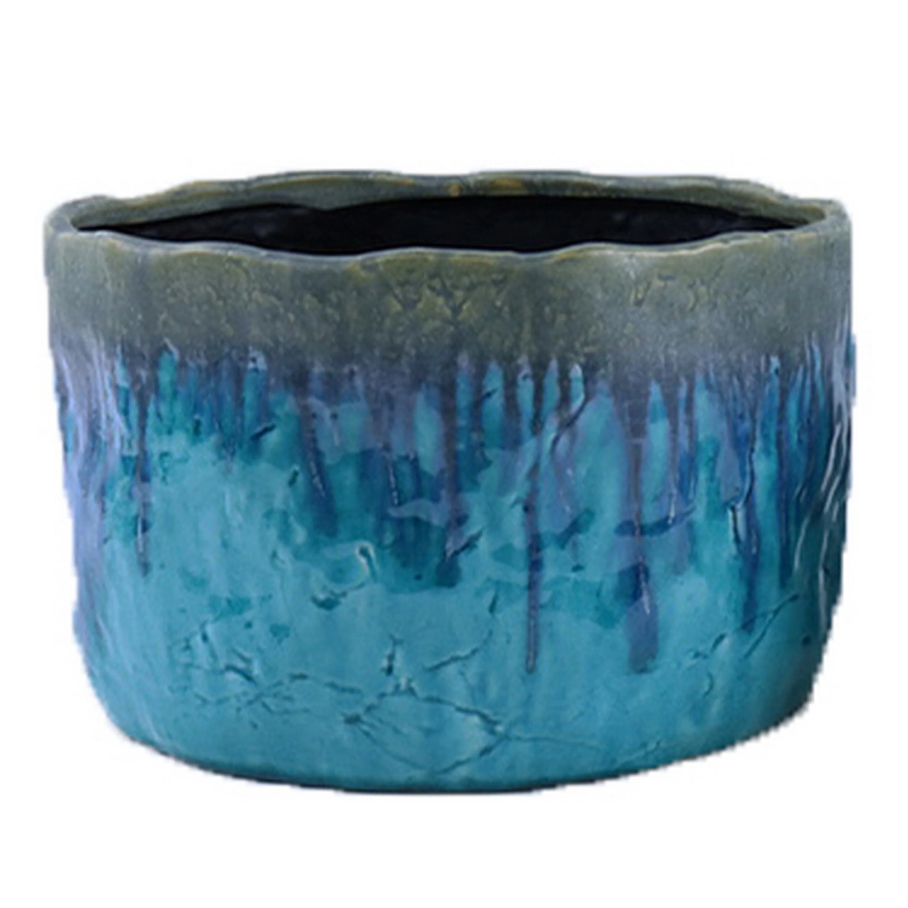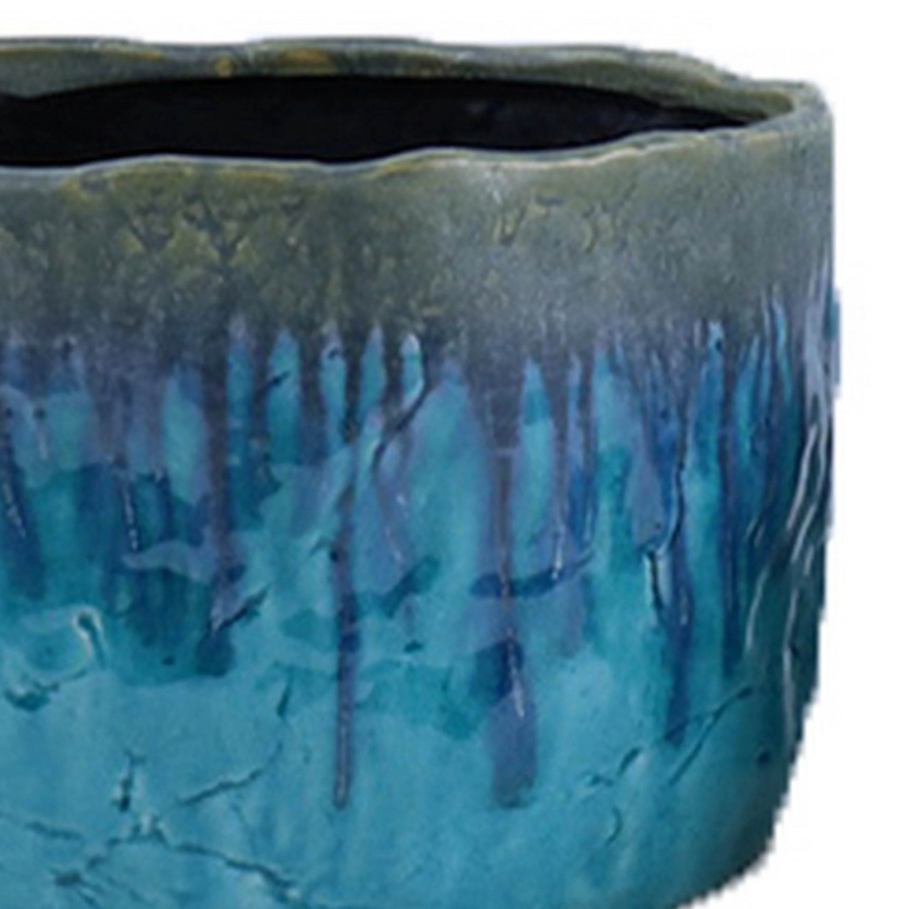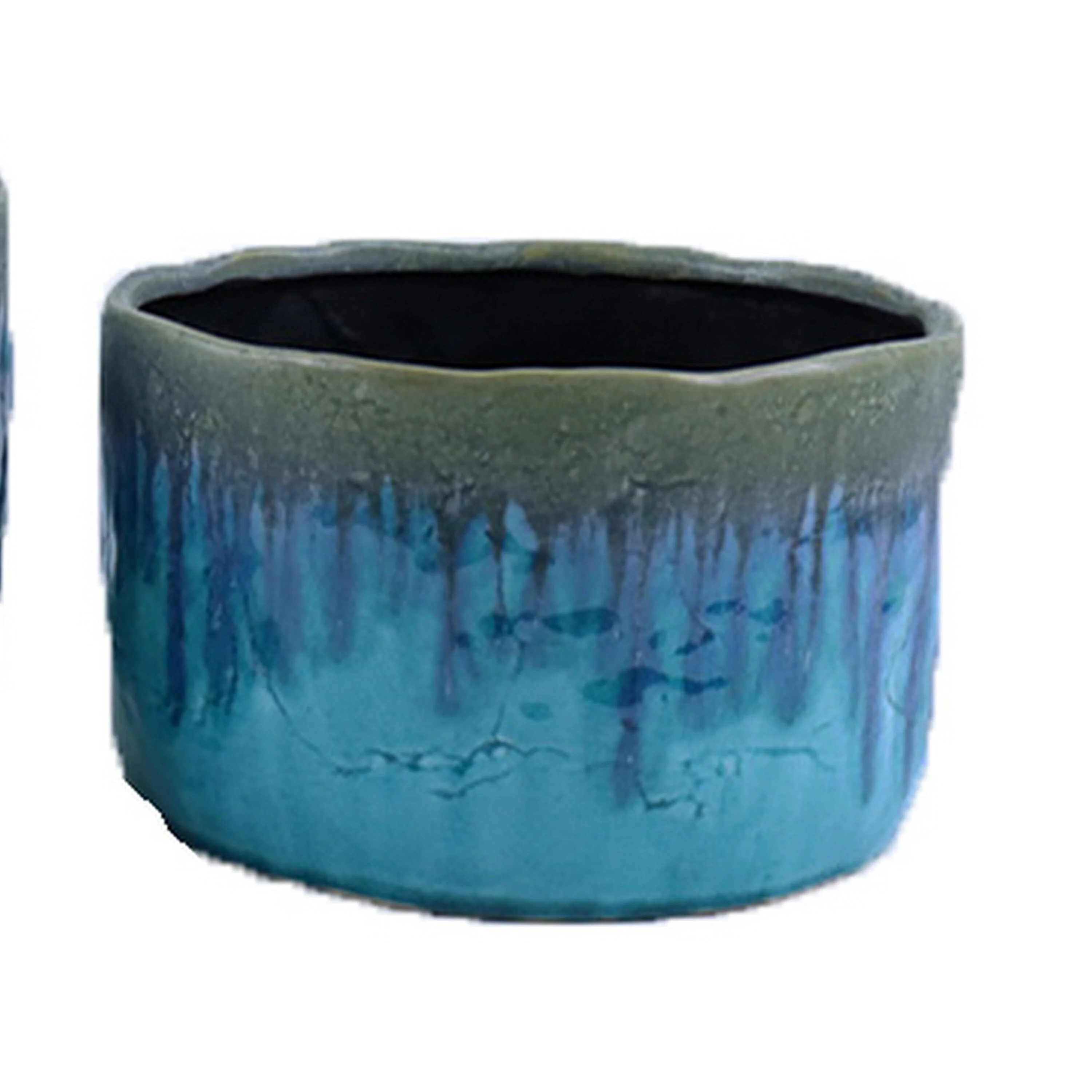 Foy Wide Planter Set of 2, Two Tone Blue Ceramic, Round, Modern Style