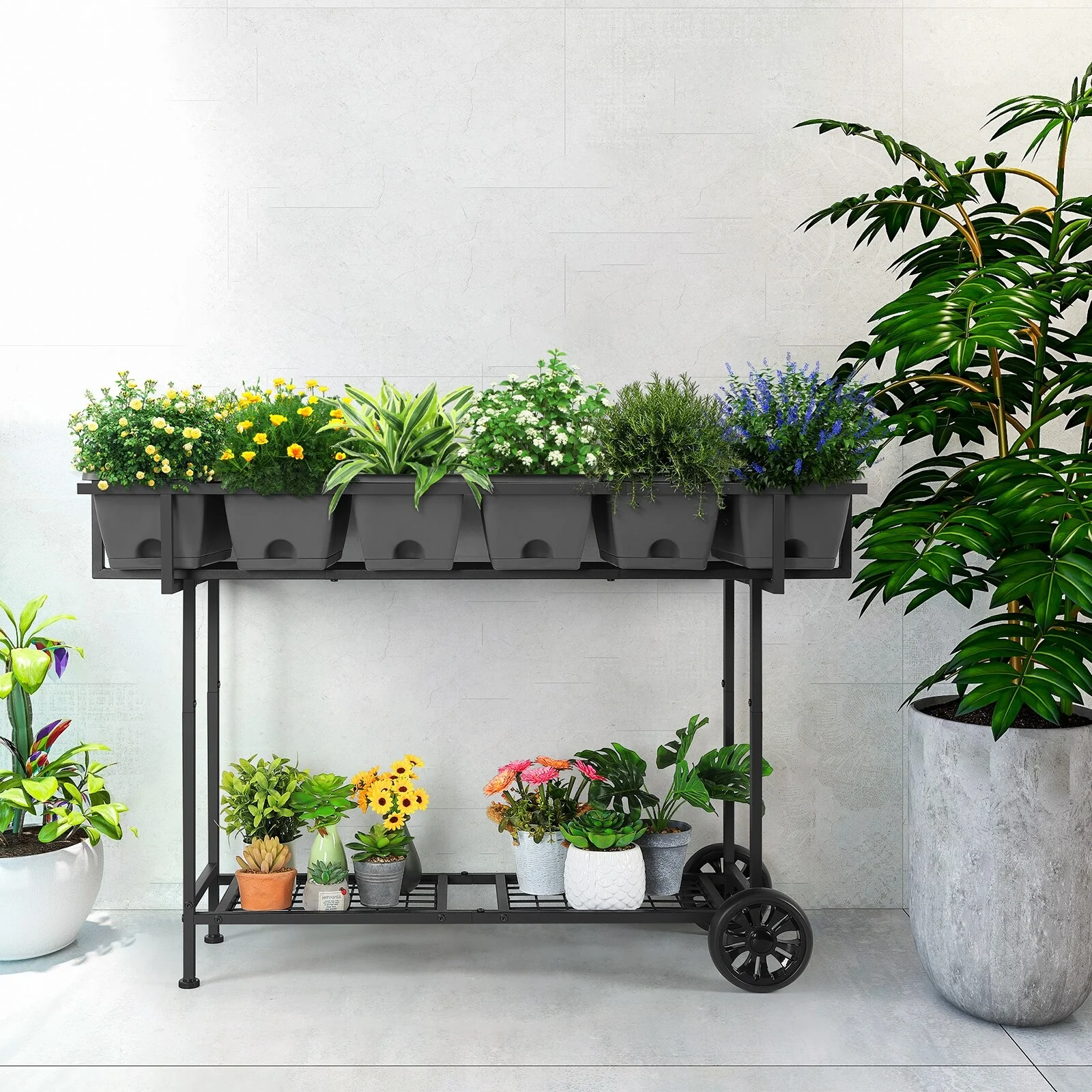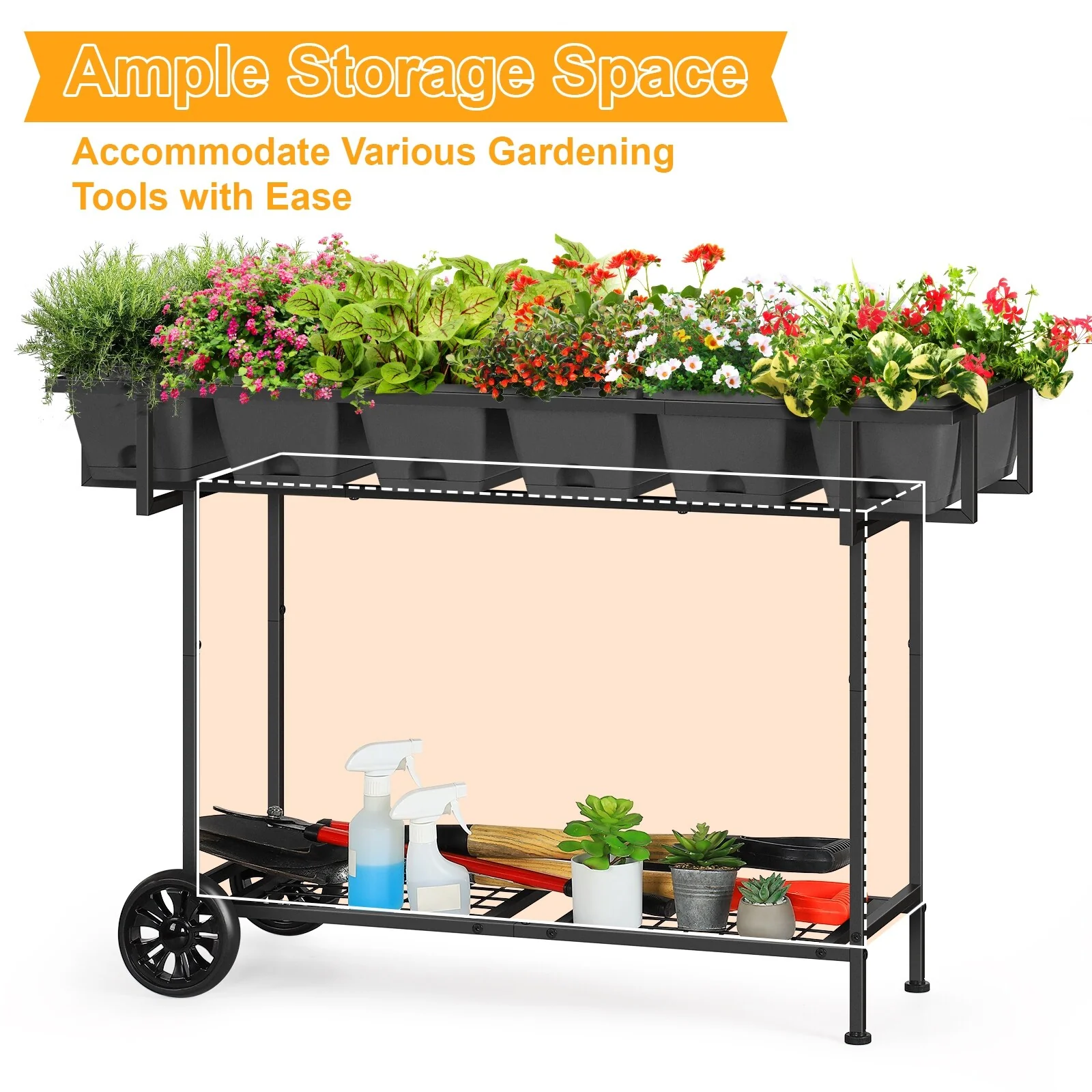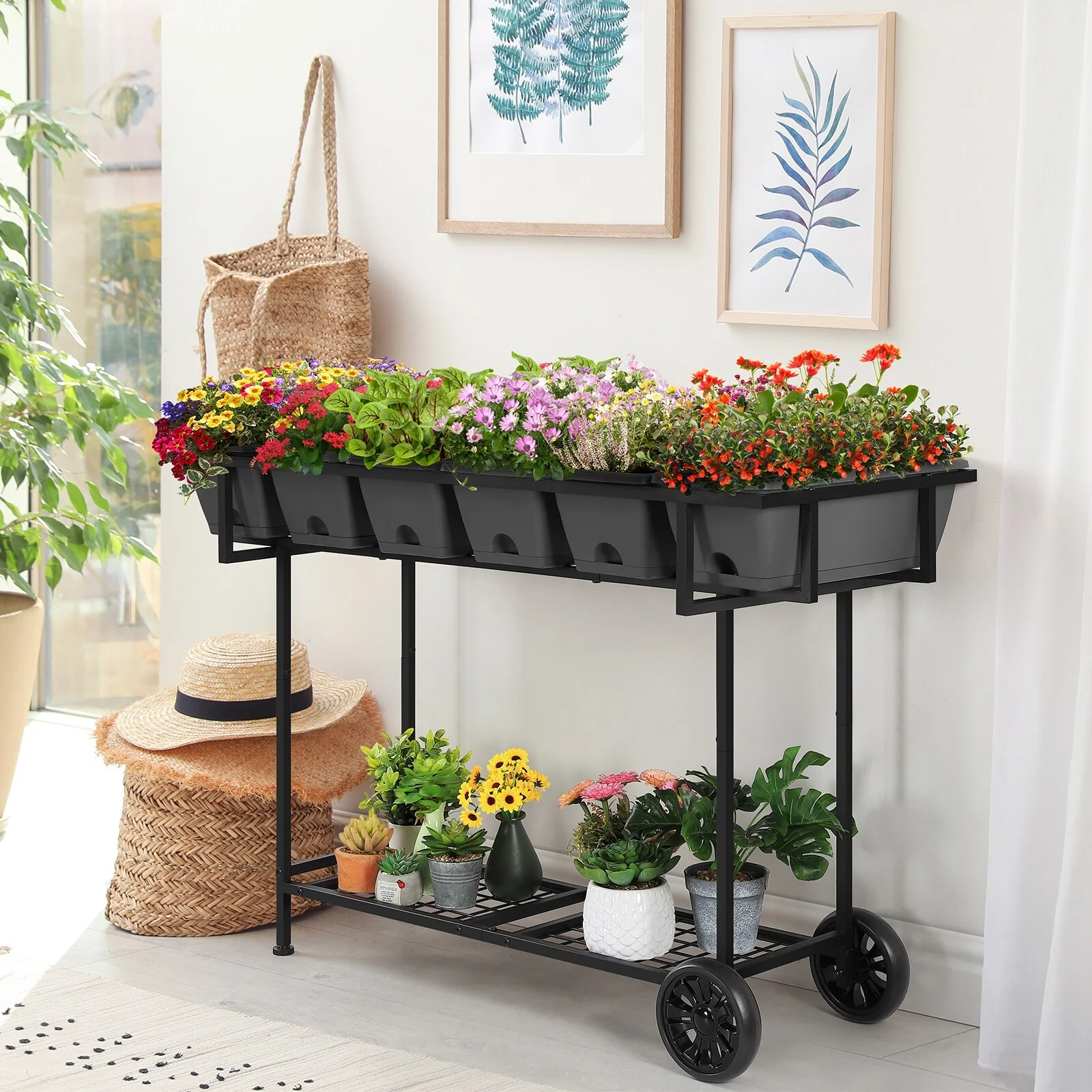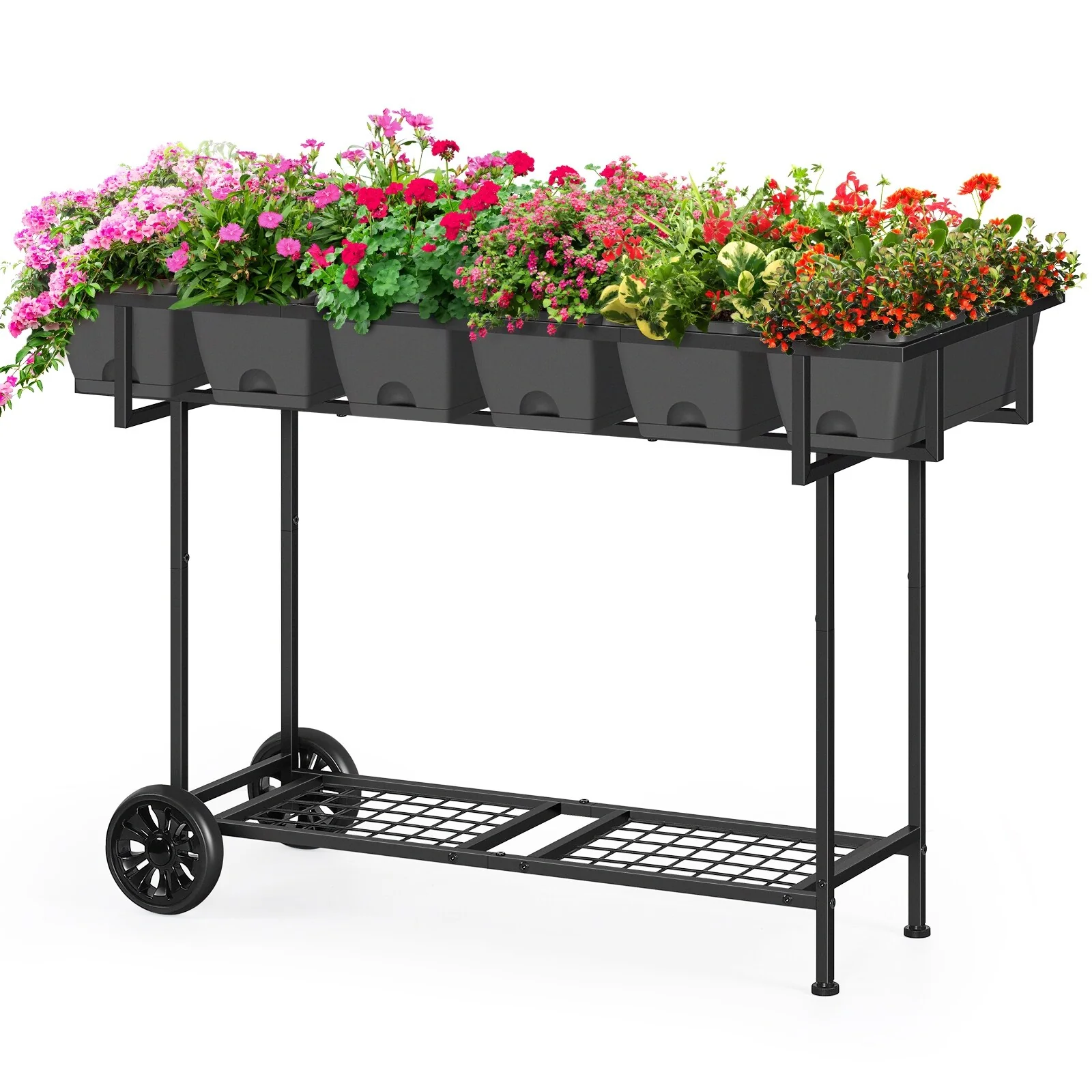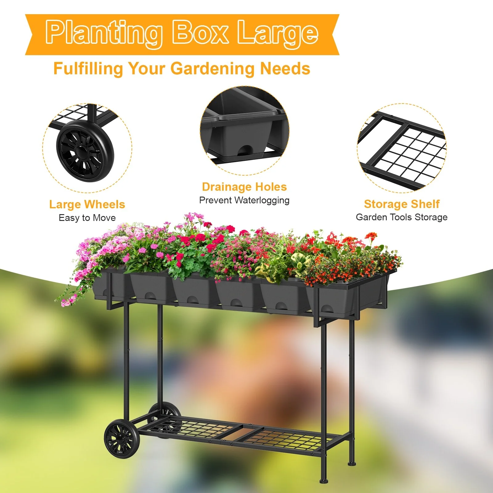 Raised Garden Bed Outdoor with Wheels Elevated Planter Box with Legs and Storage Shelf