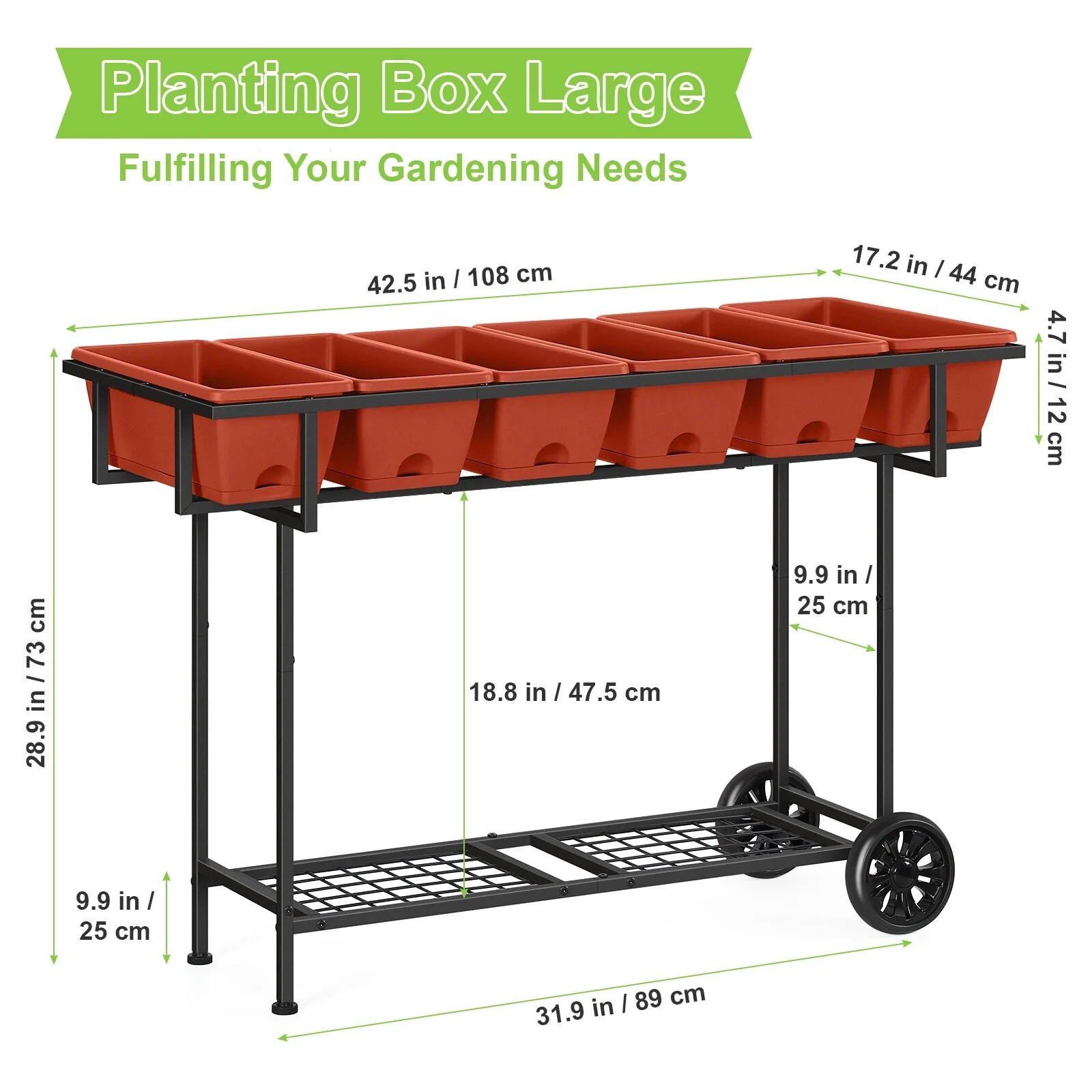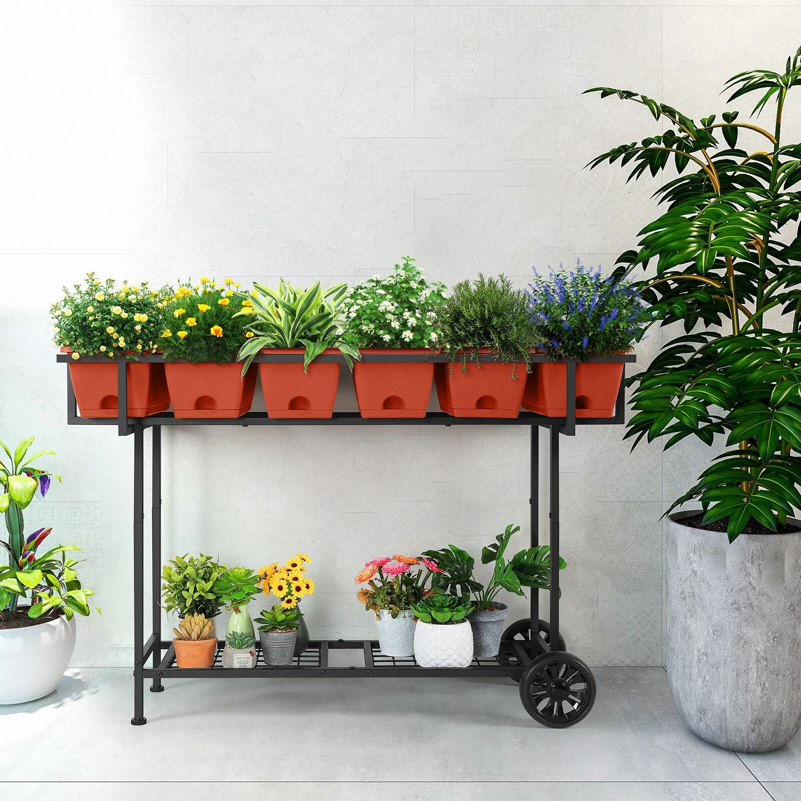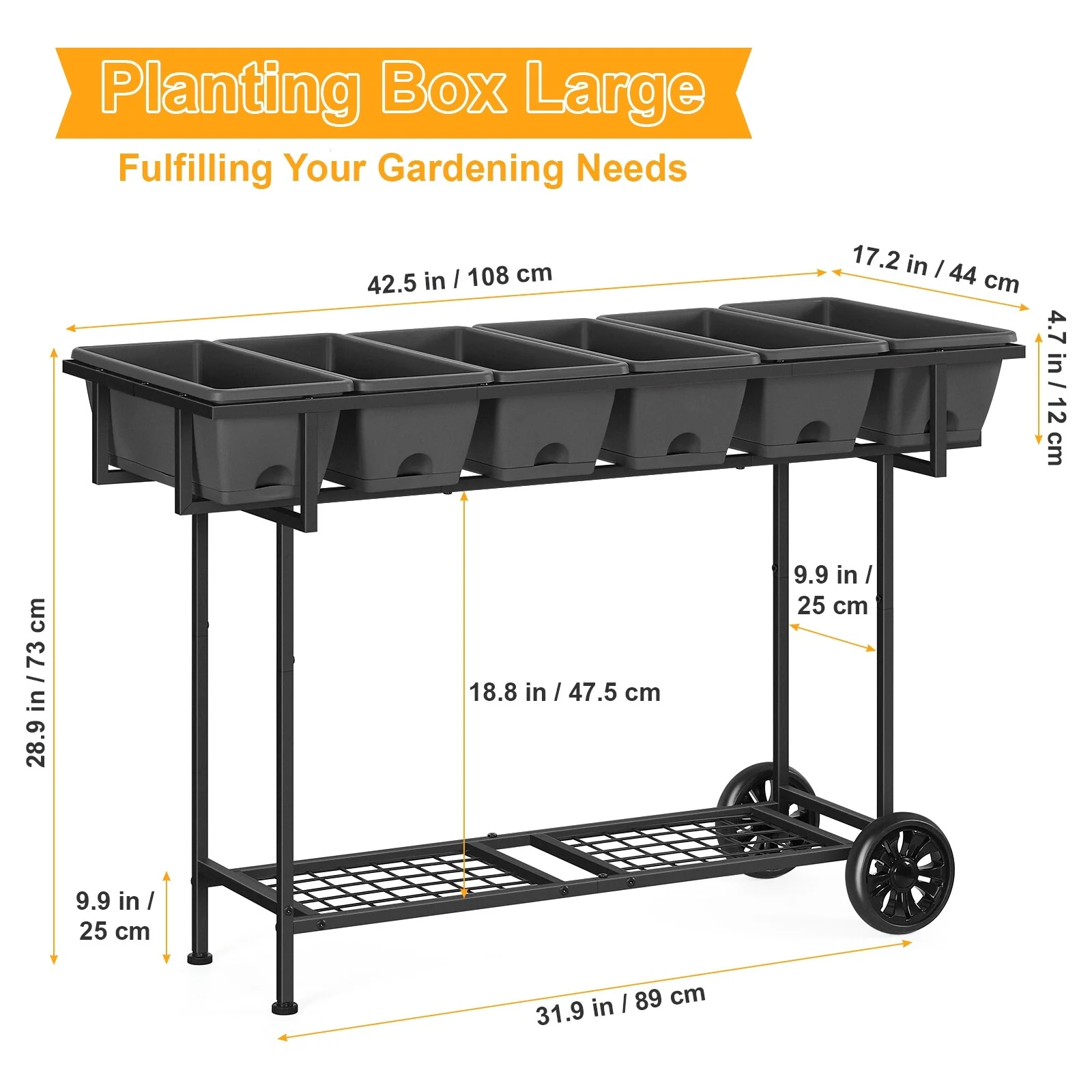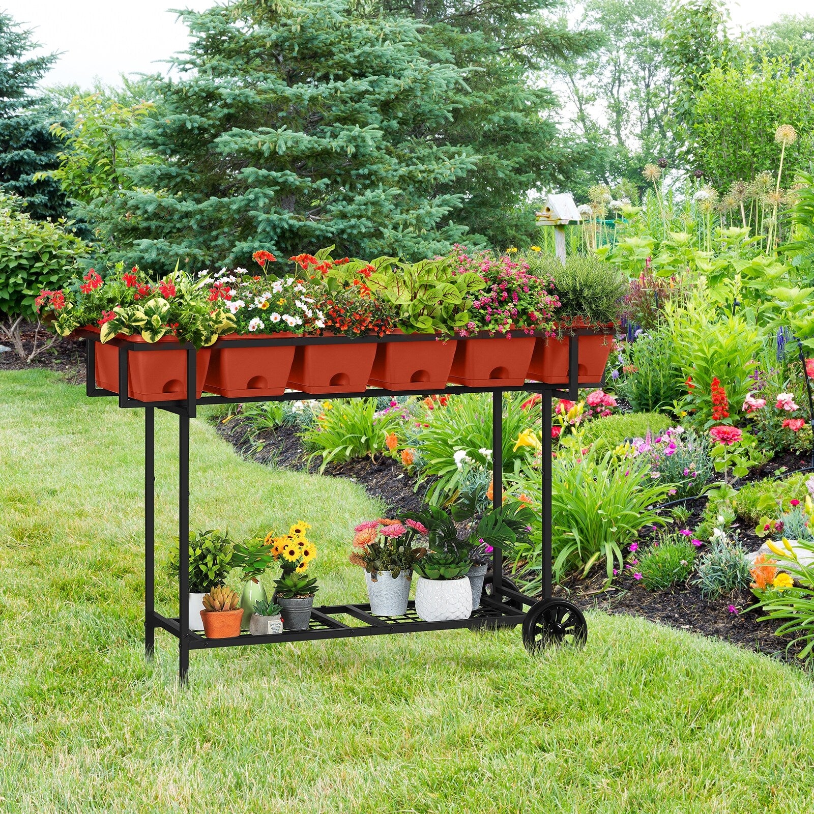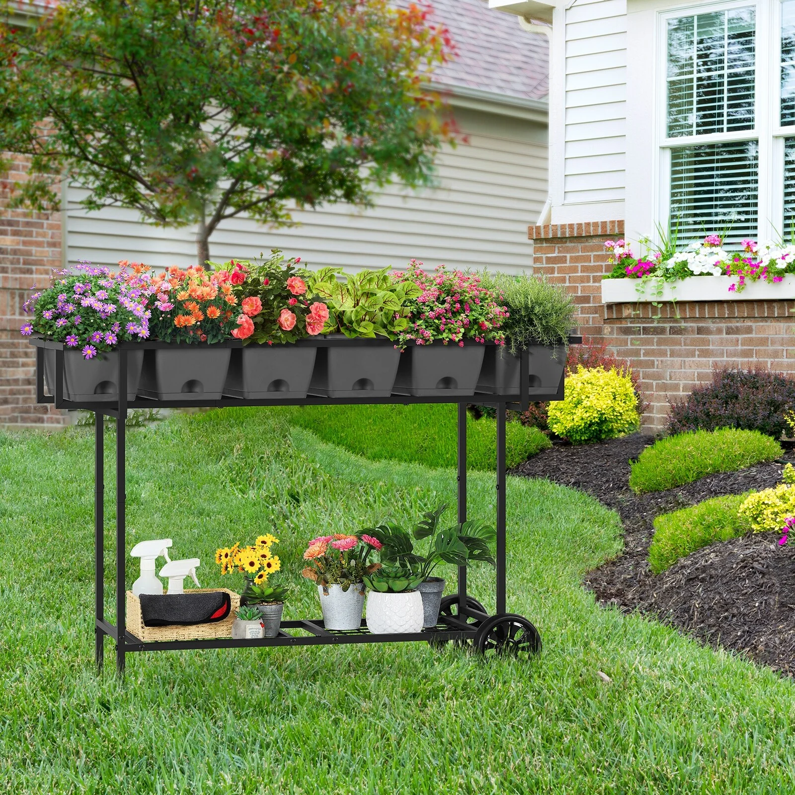 Raised Garden Bed Outdoor with Wheels Elevated Planter Box with Legs and Storage Shelf