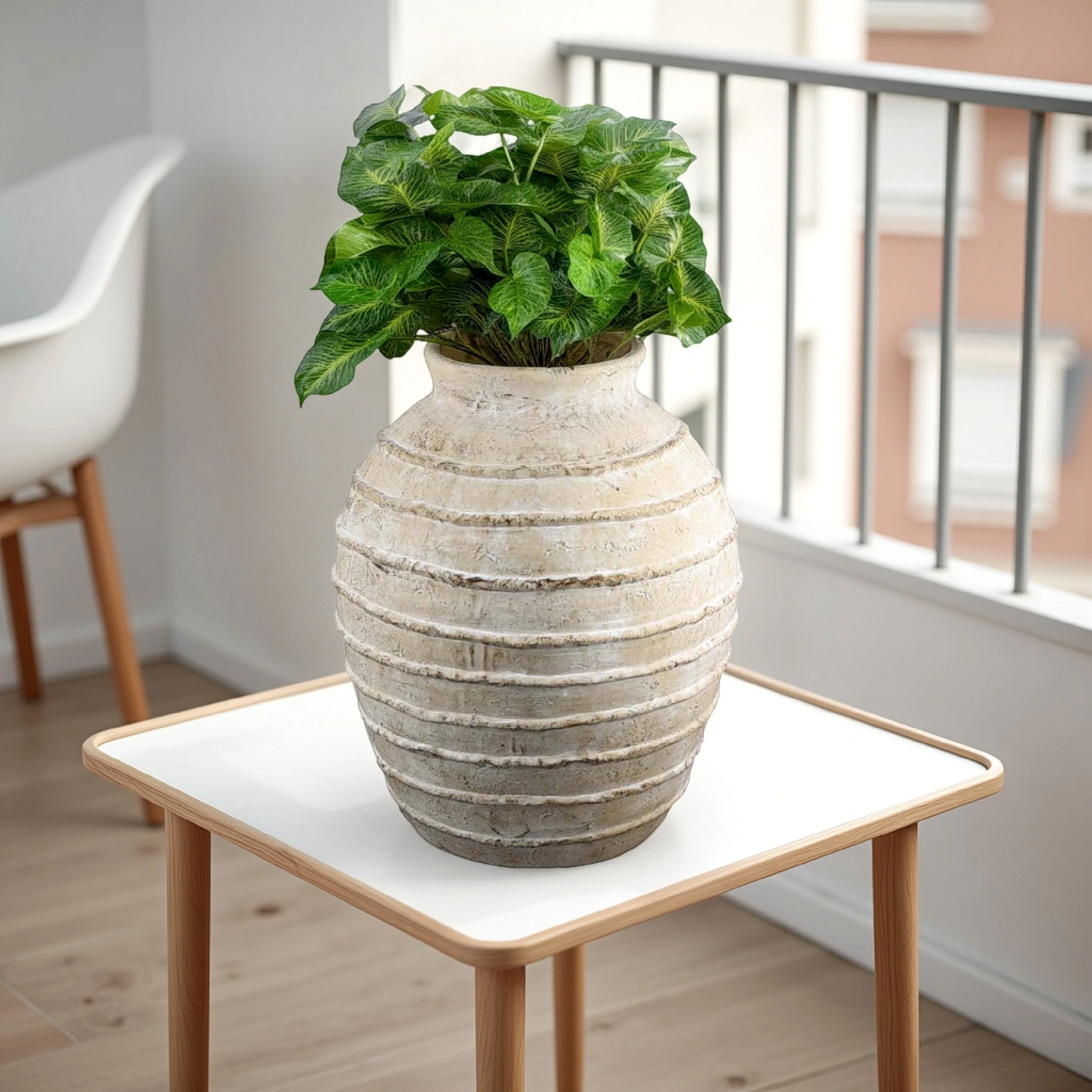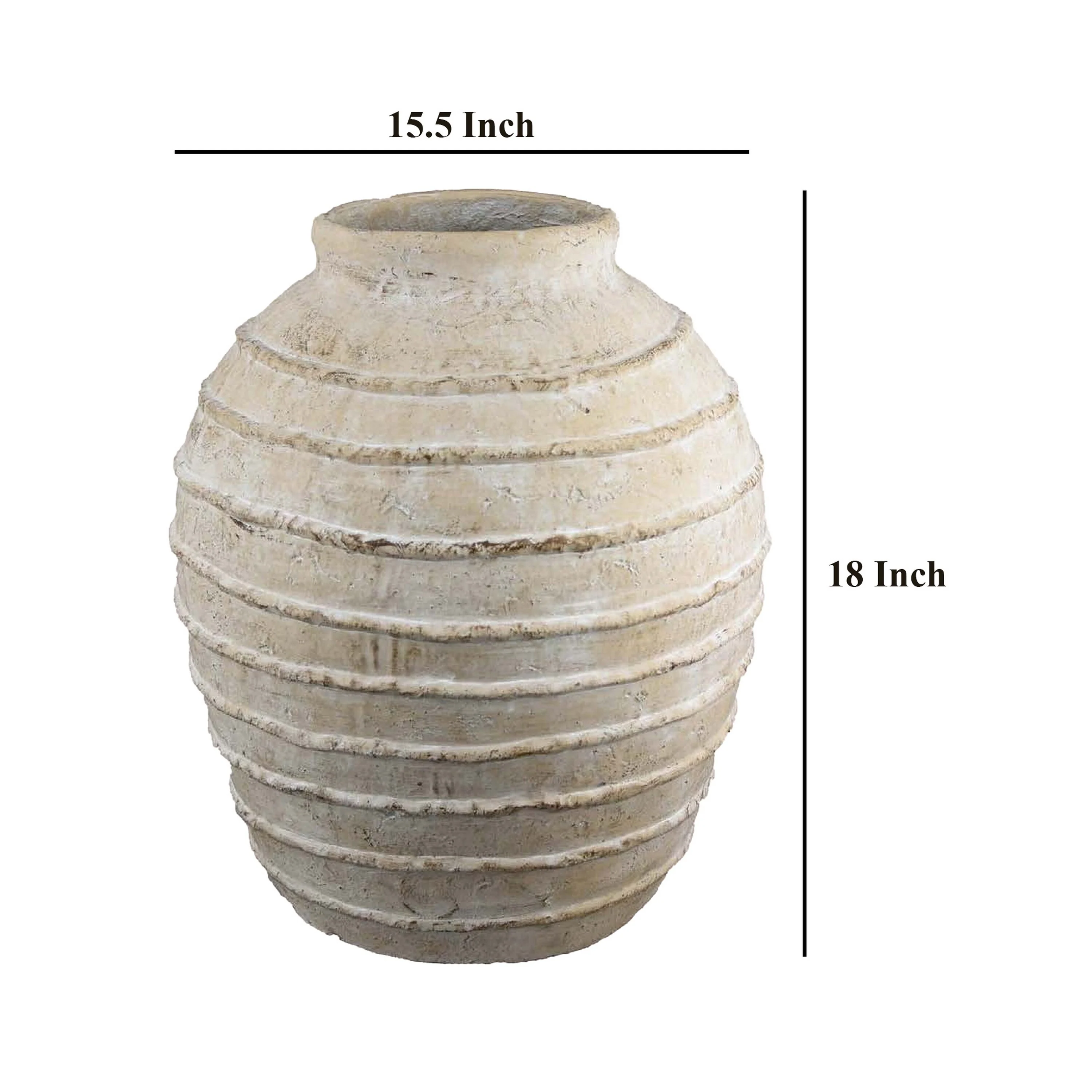 Lezlee Accent Planter, Beige Terracotta Textured Tapered Round 16 Inch