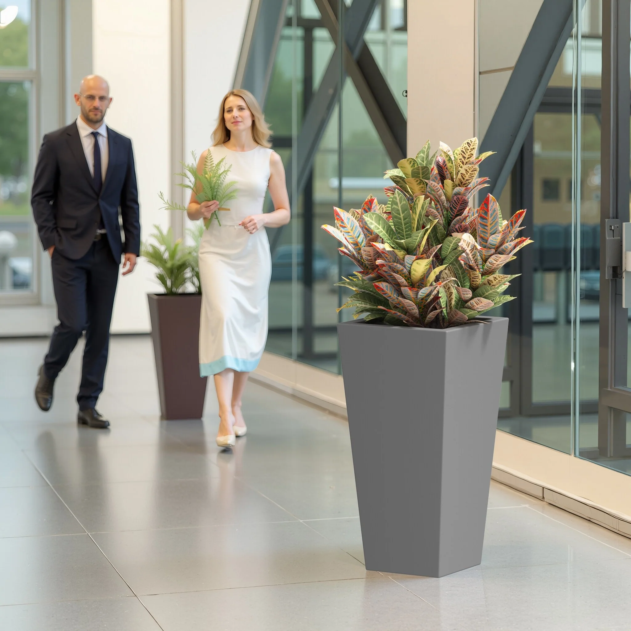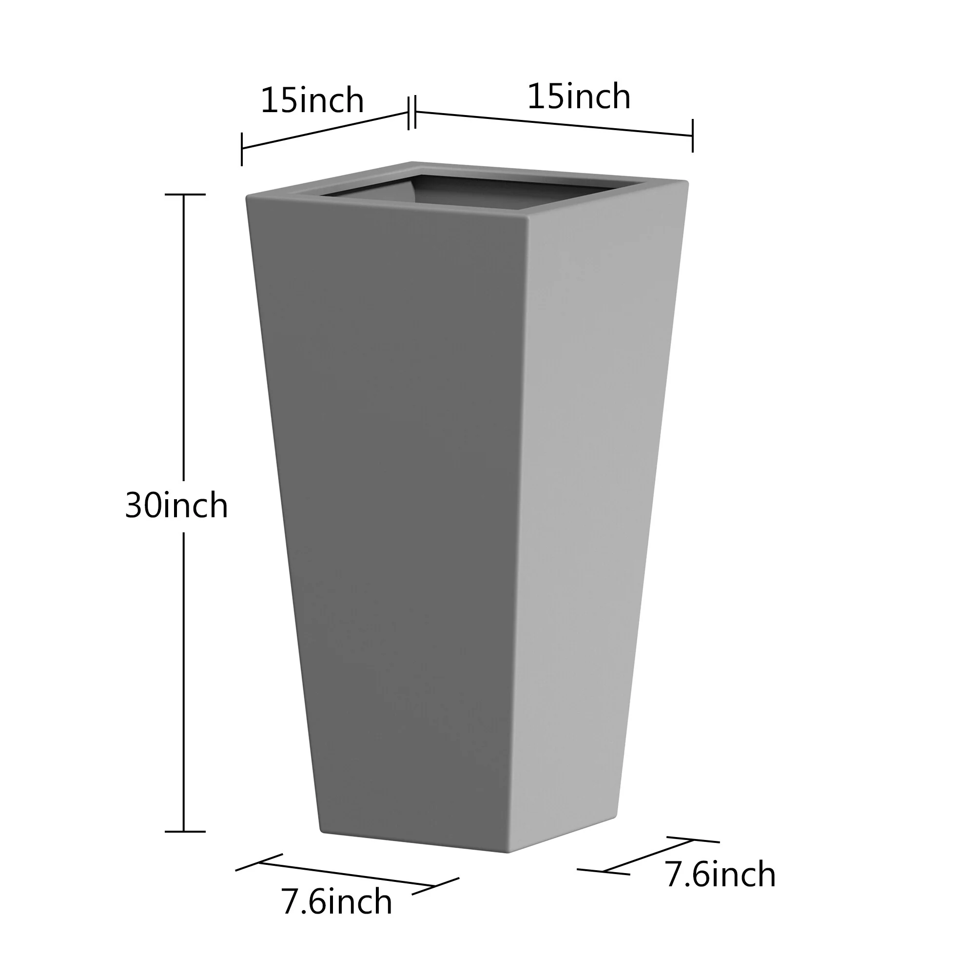 30" H Tall Metal Tapered Planter - Large Outdoor & Indoor Garden Plant Pot with Drainage Hole and Rubber Plug