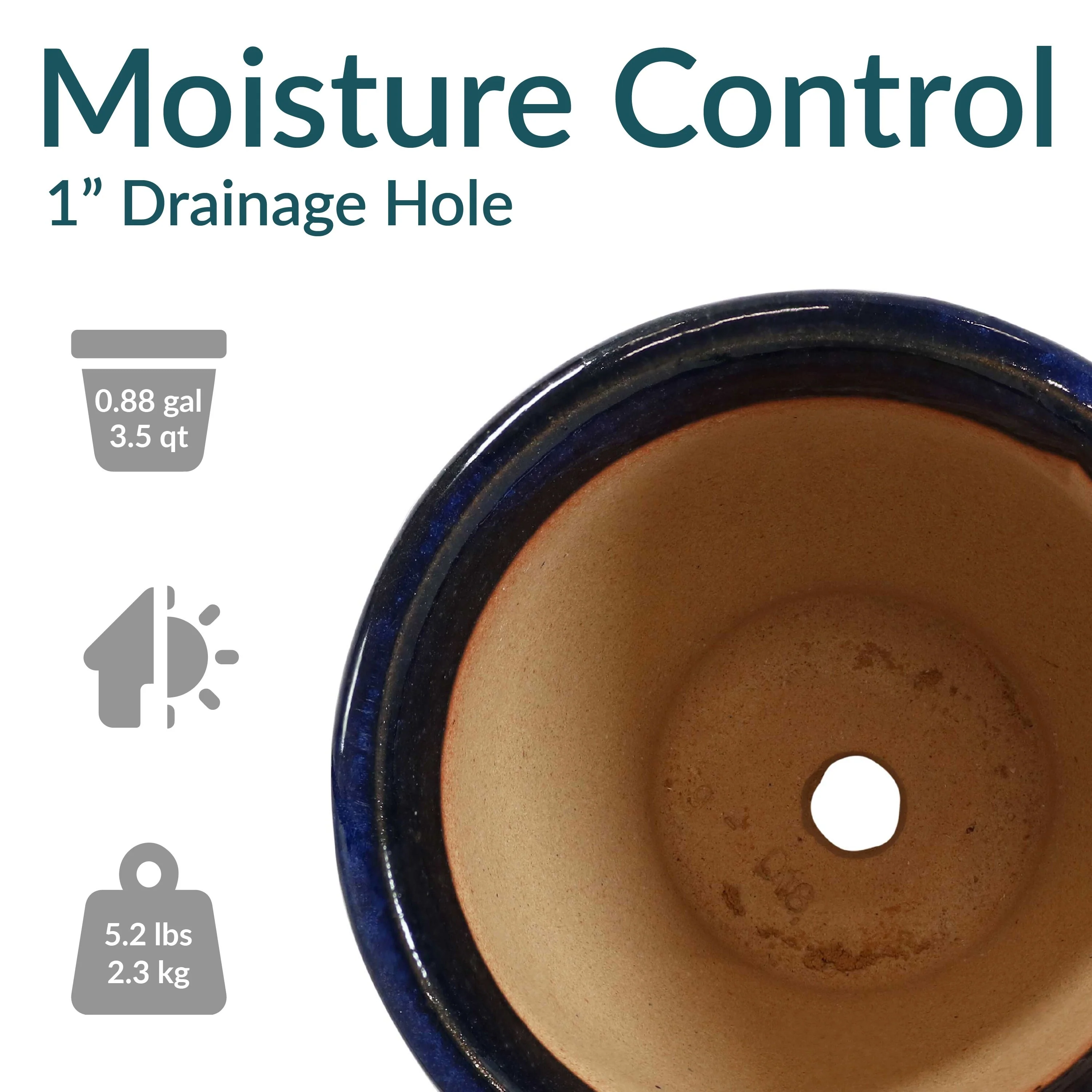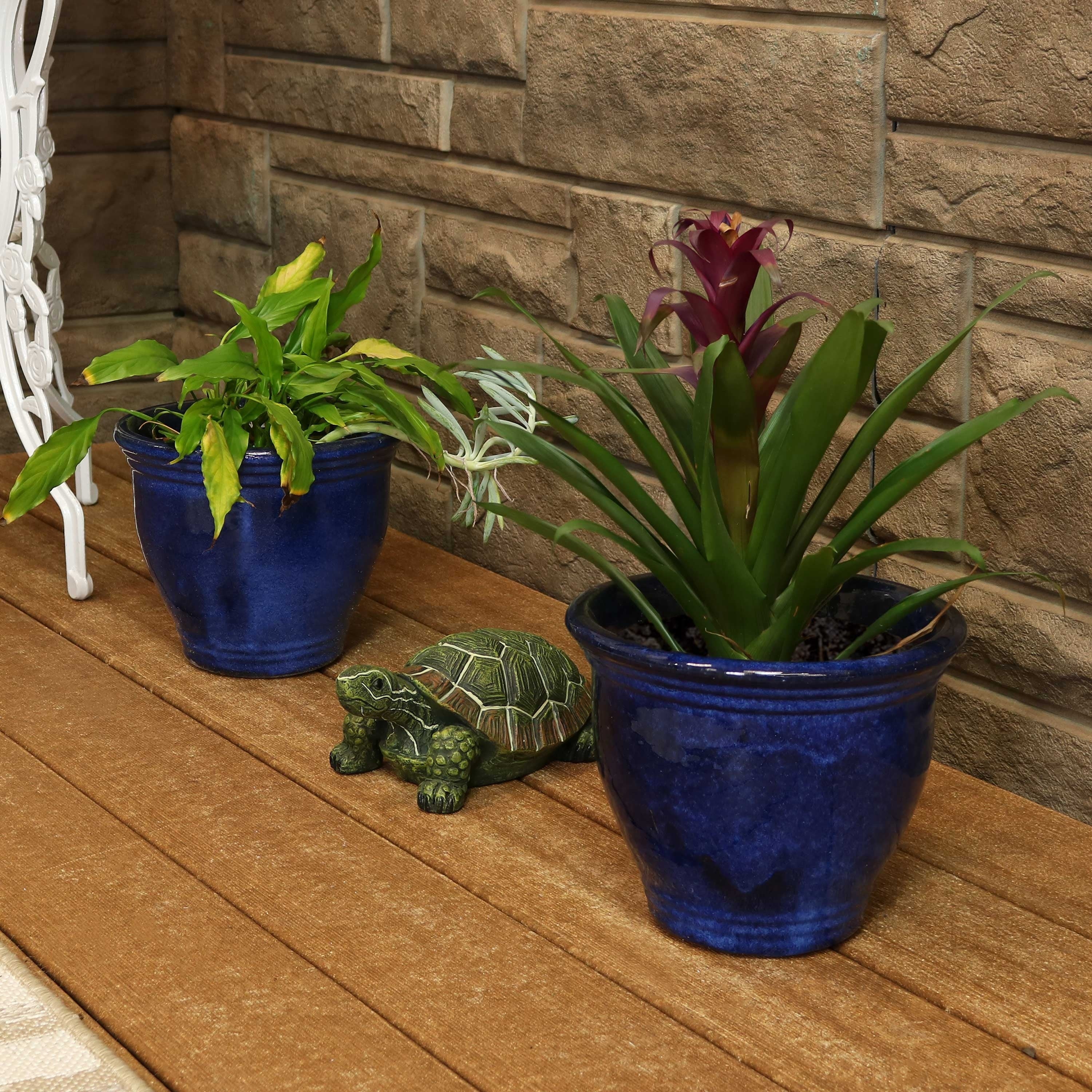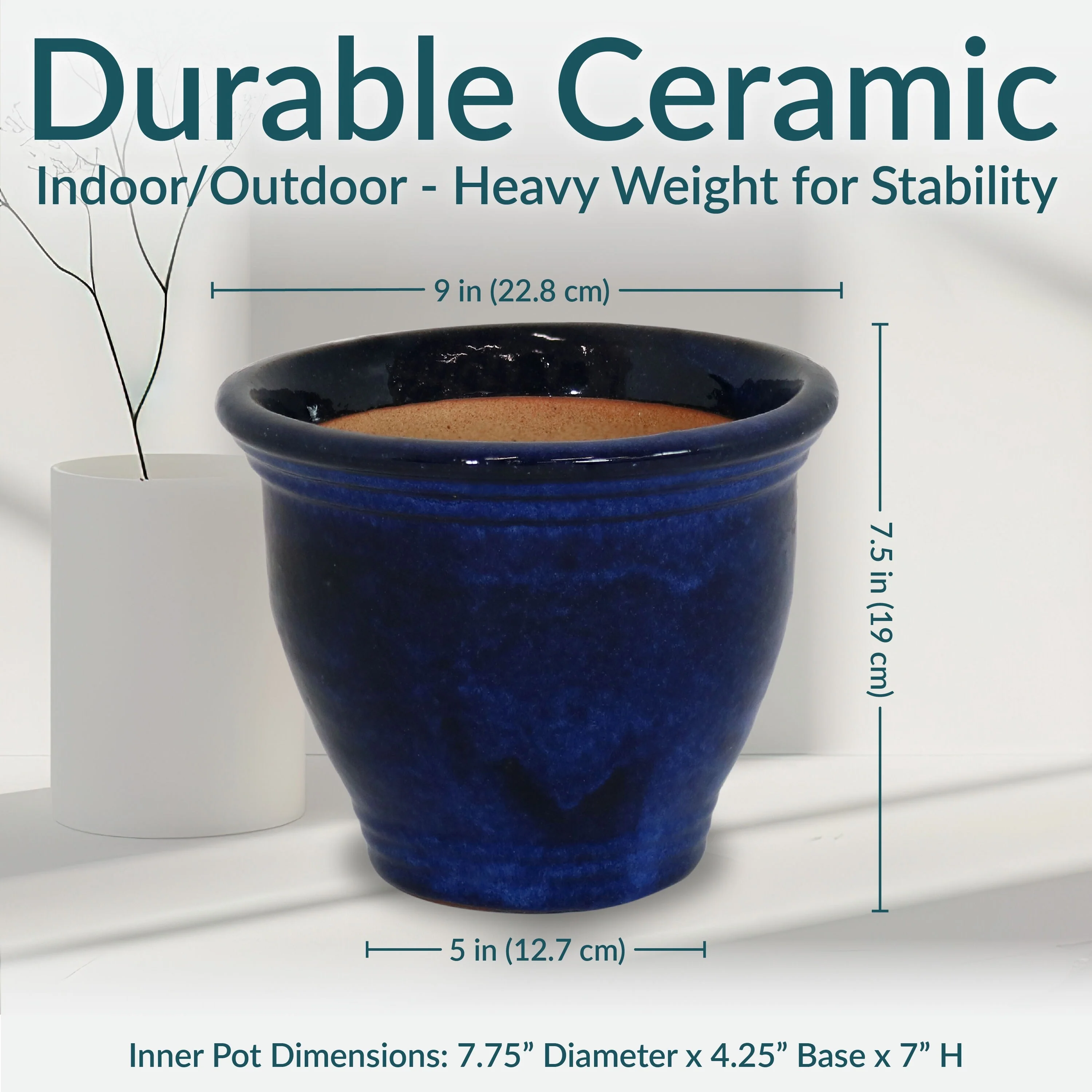 Sunnydaze Studio Glazed Ceramic Planter - Set of 2 - 9-Inch - Imperial Blue