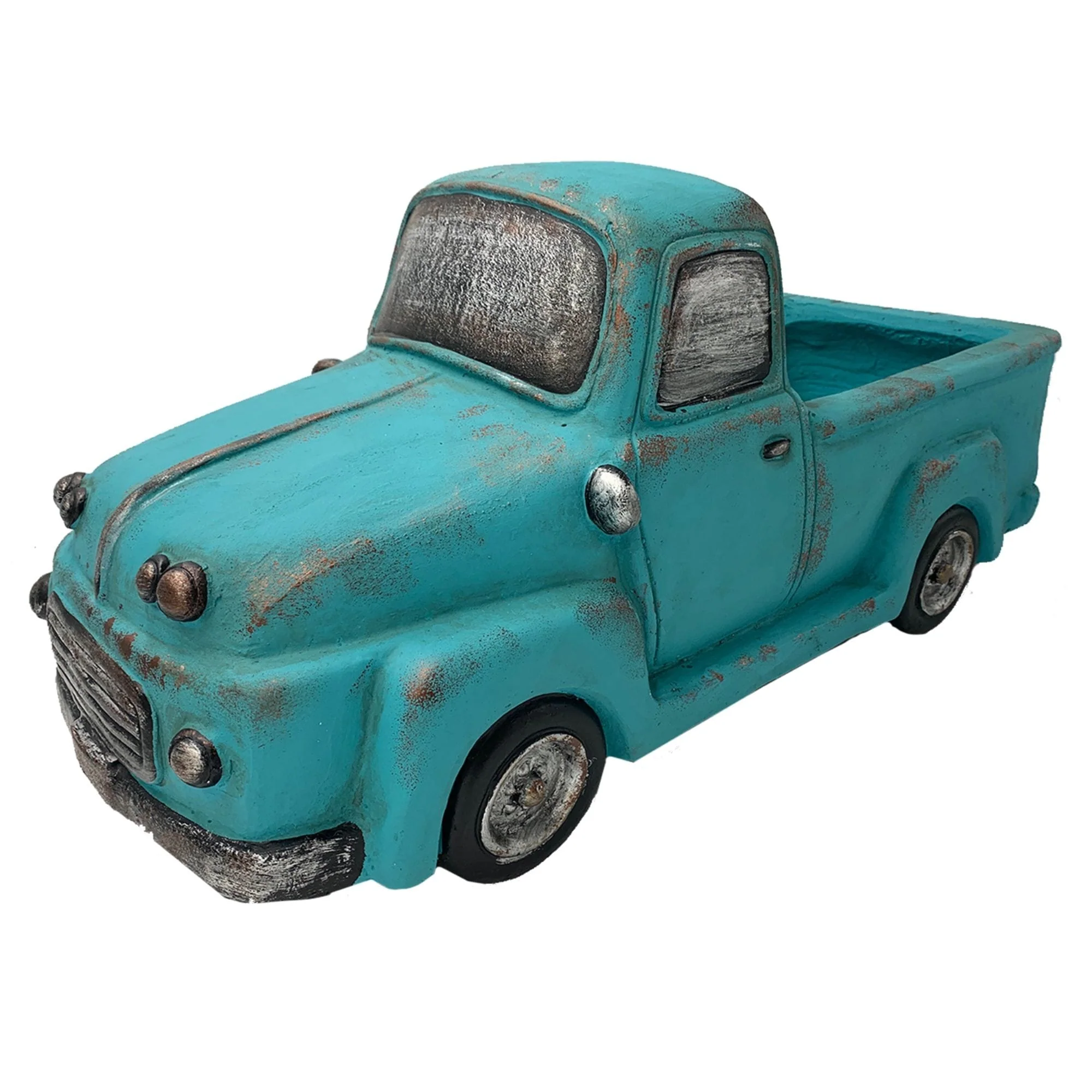 Vintage Truck Outdoor Garden Planter - 22.75" - Teal Blue and Gray