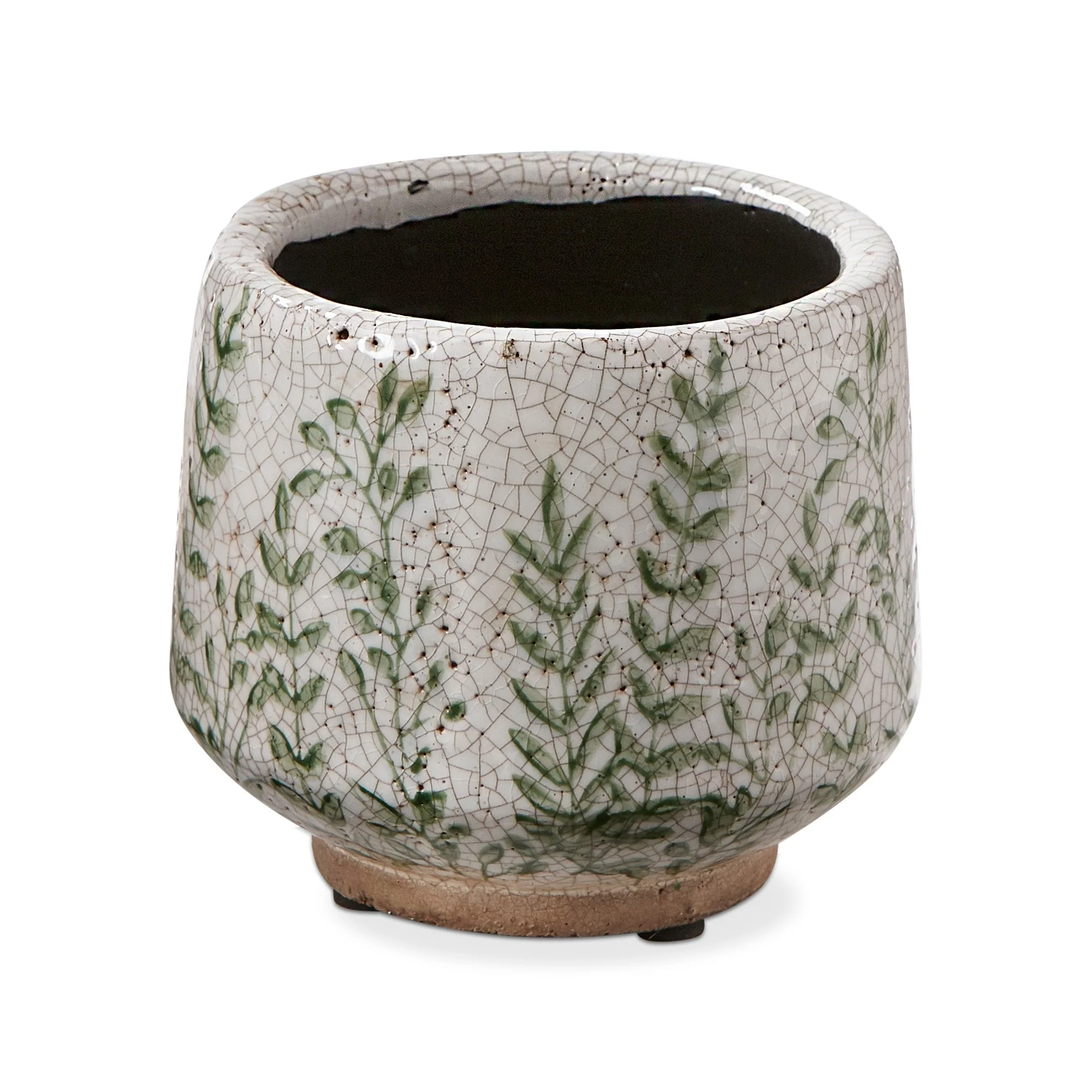 Foliage Printed Glazed Terracotta Footed Planter Small, 4.9L x 4.9W x 4.3H inches