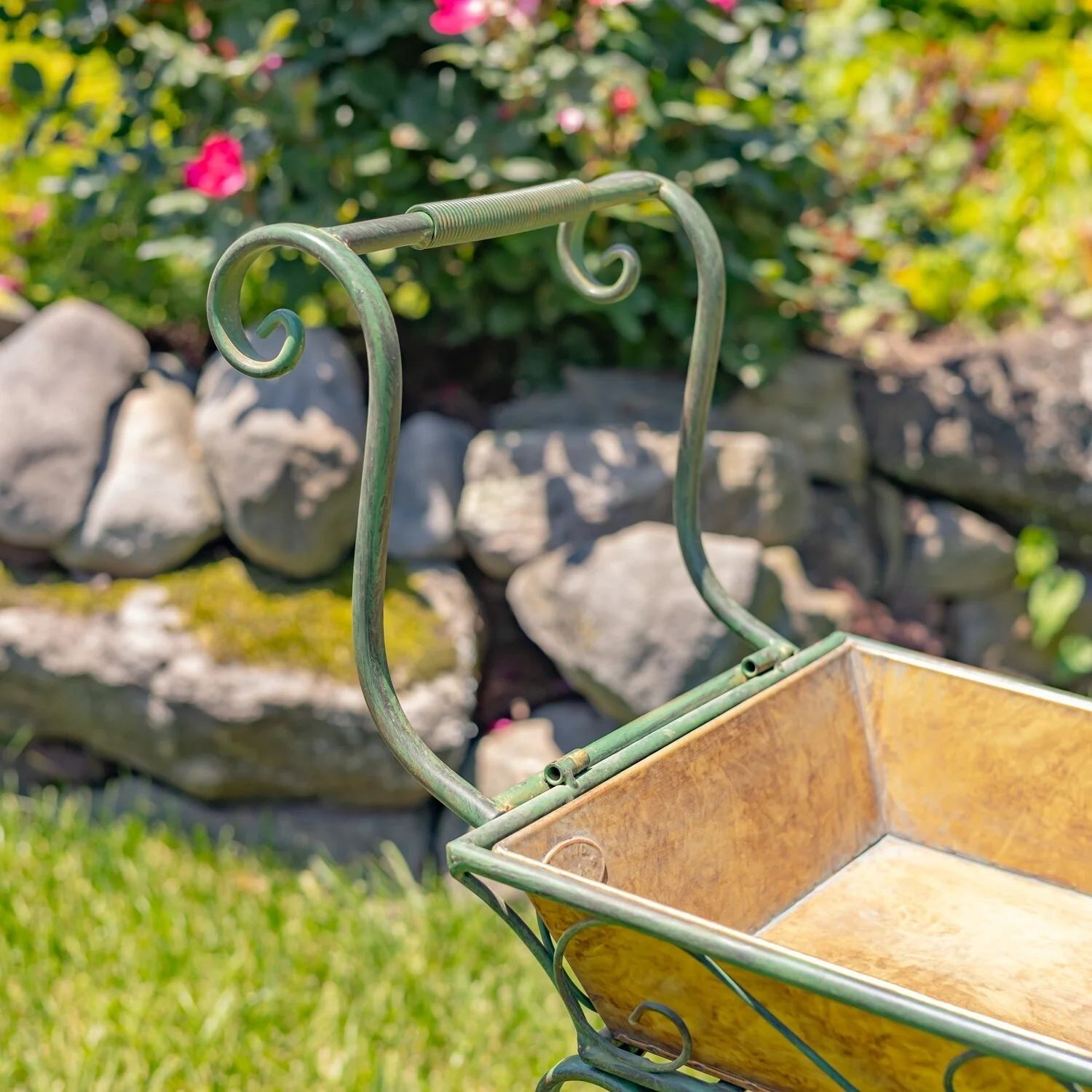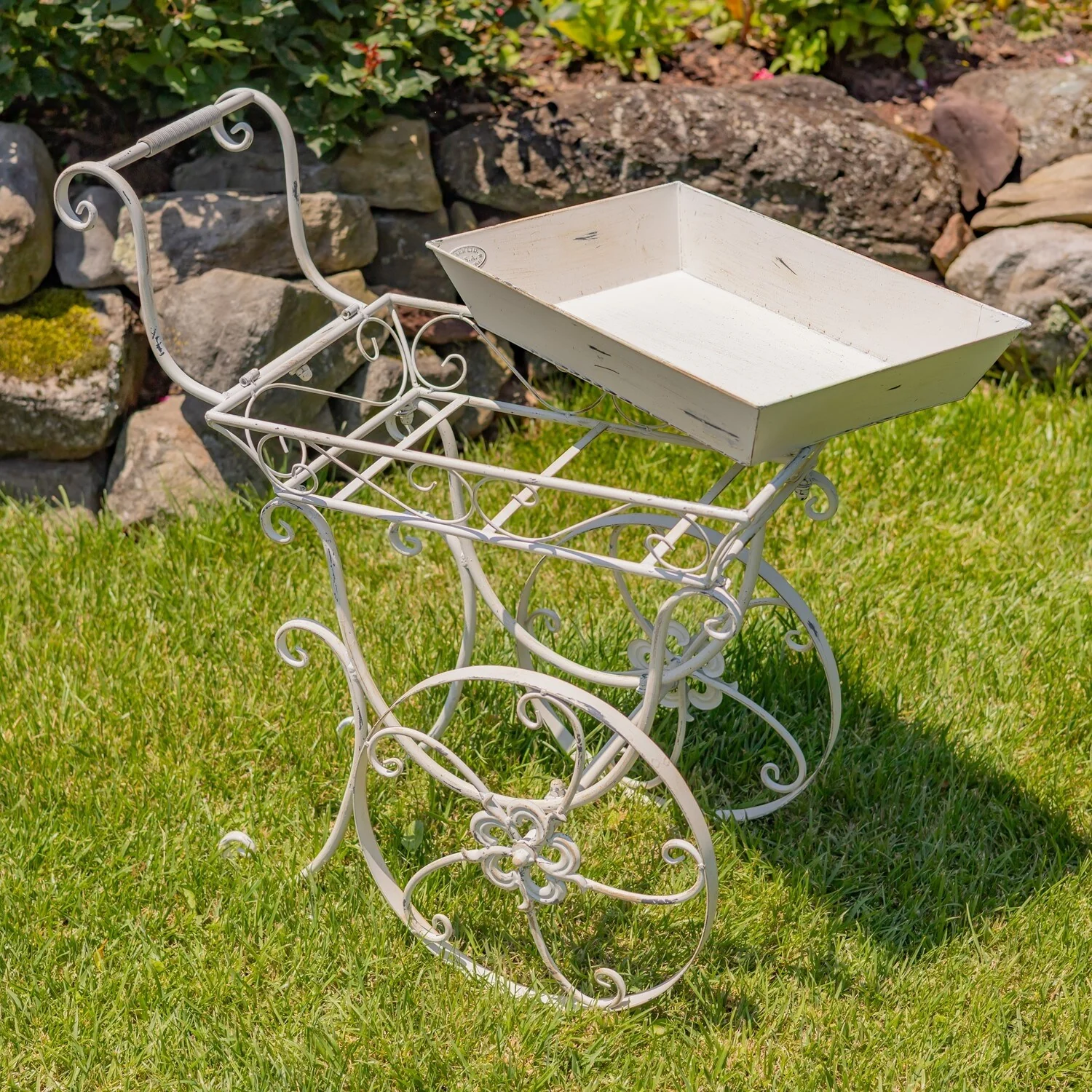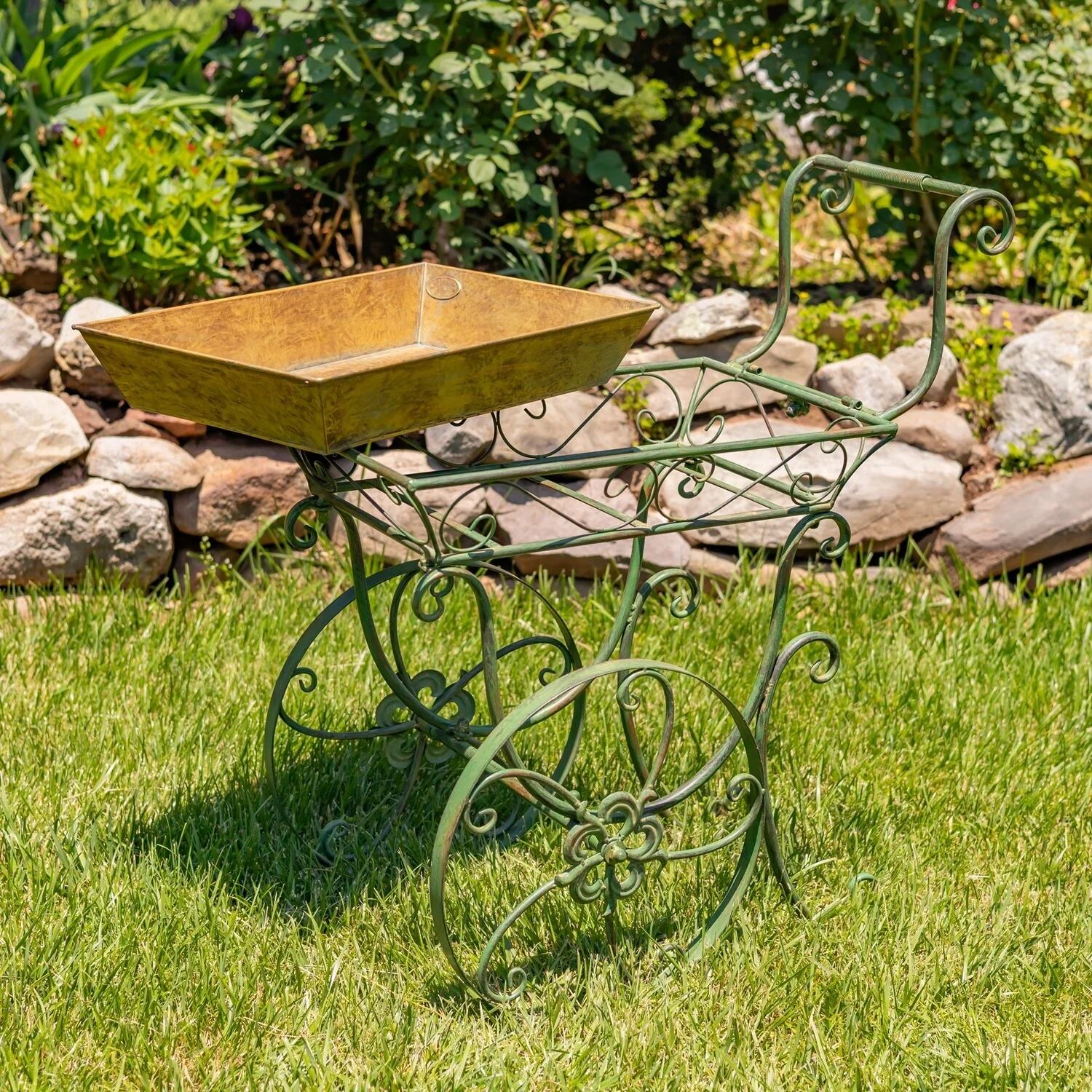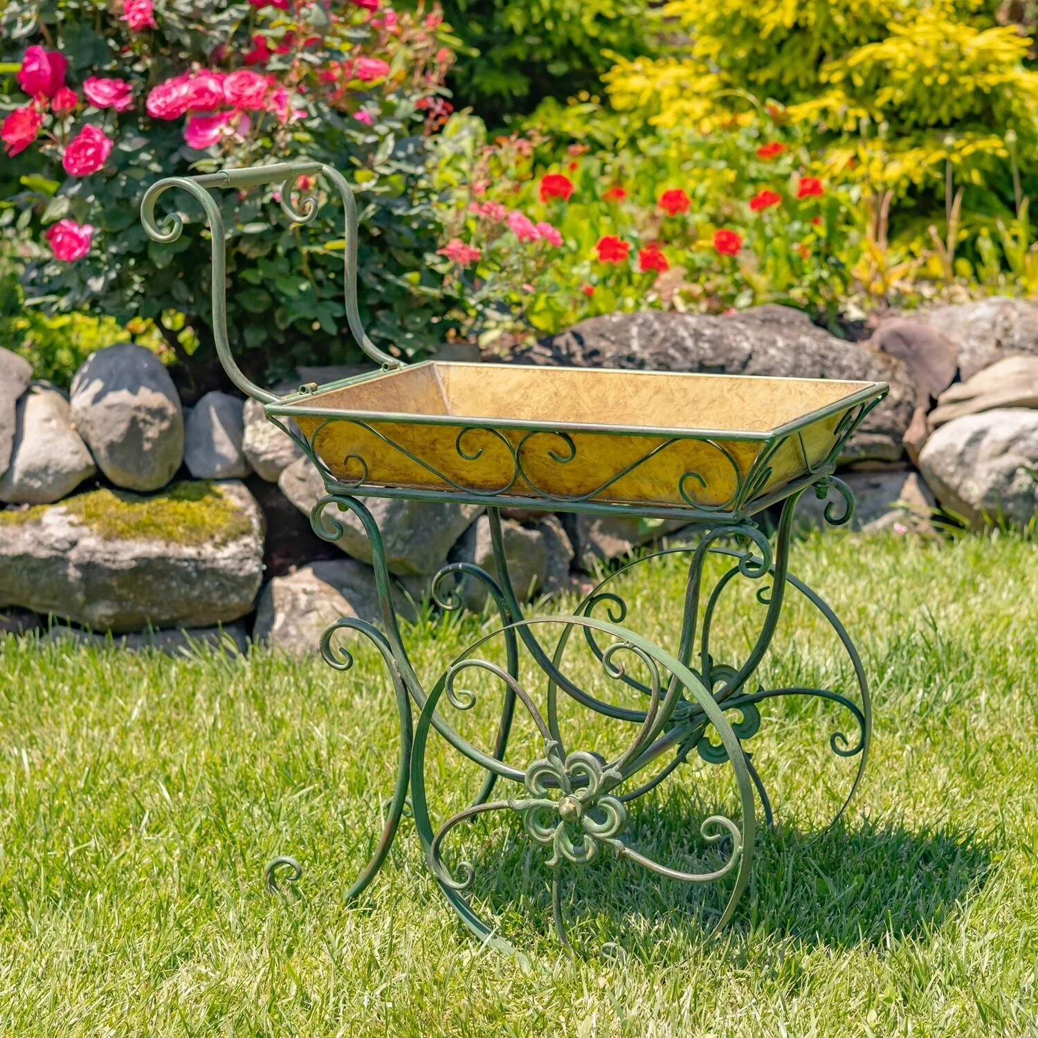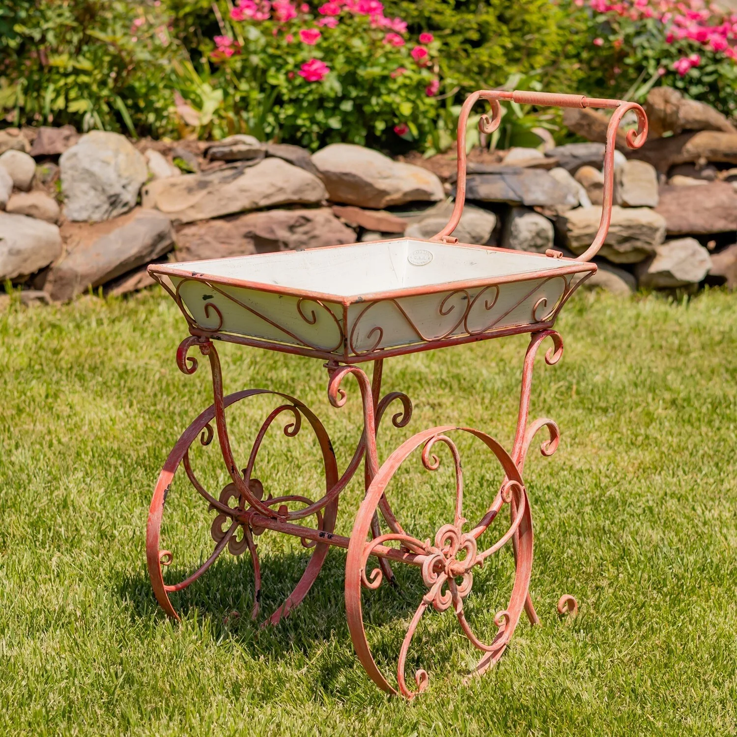 32" Tall Metal Garden-Flower Cart with Handle & Wheels "London 1820"