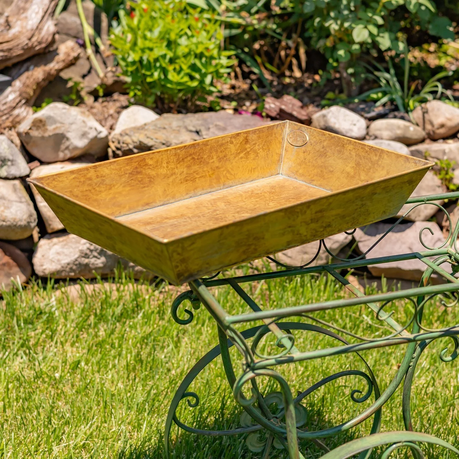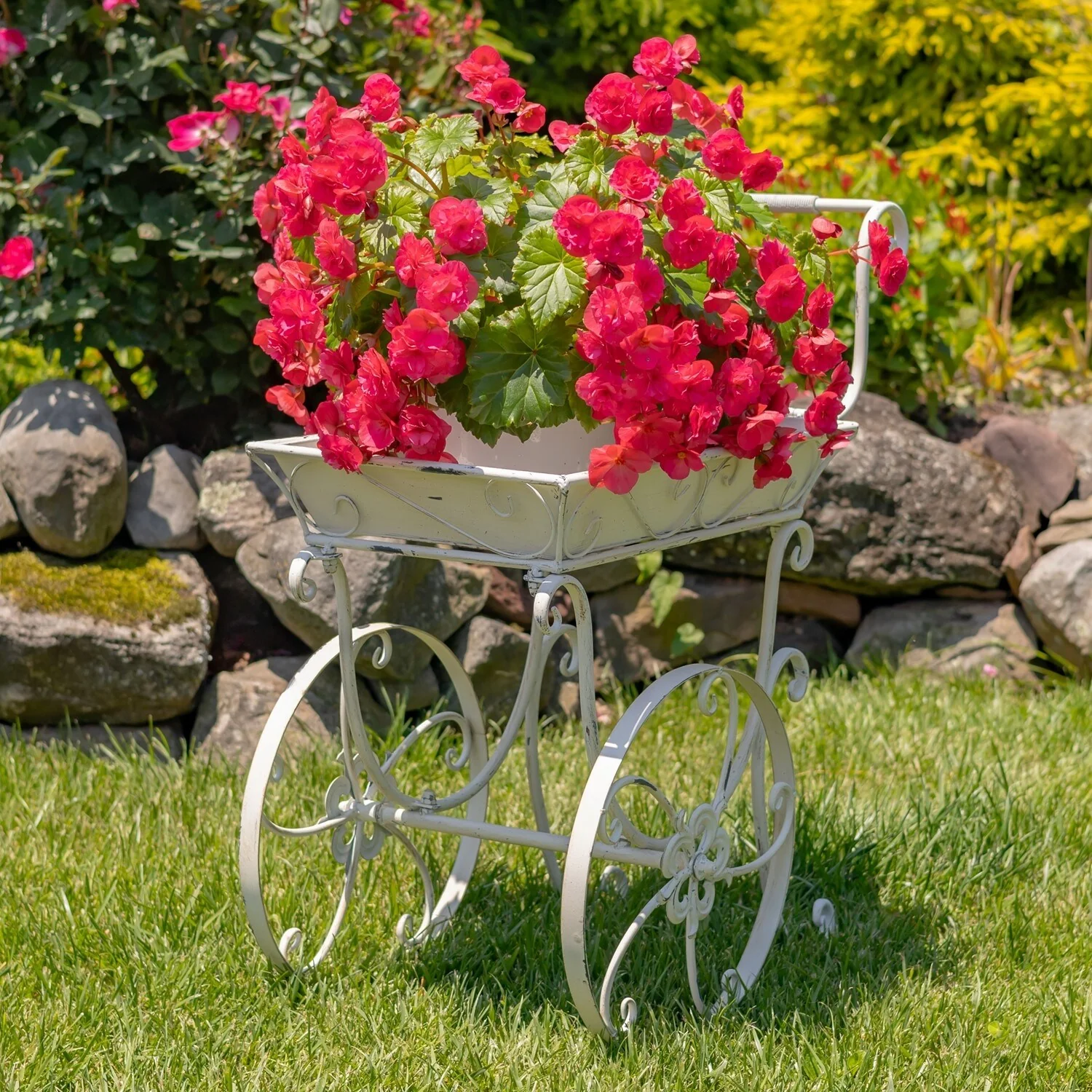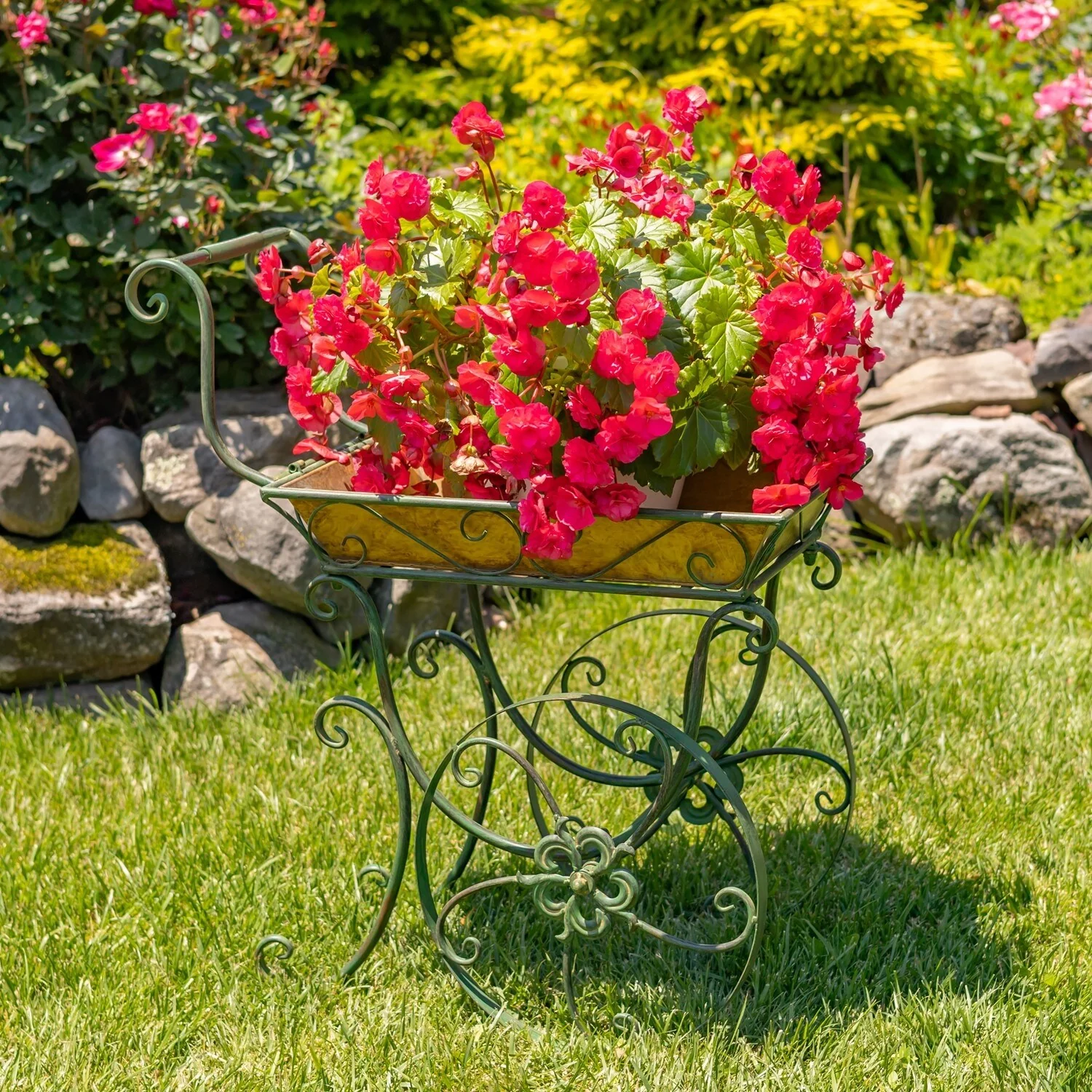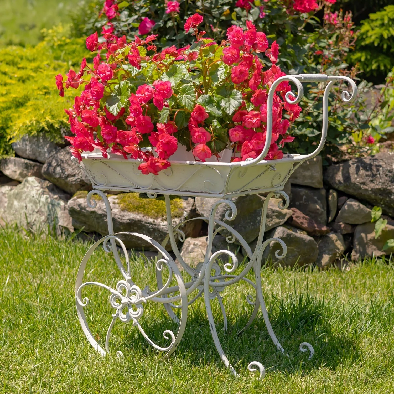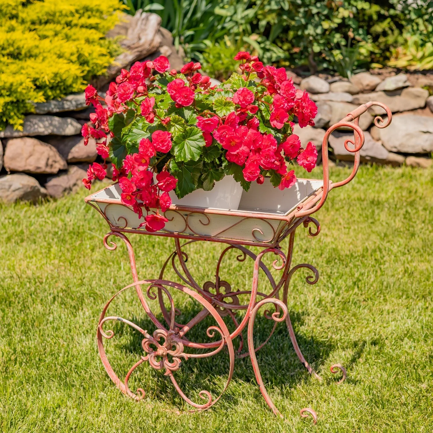 32" Tall Metal Garden-Flower Cart with Handle & Wheels "London 1820"