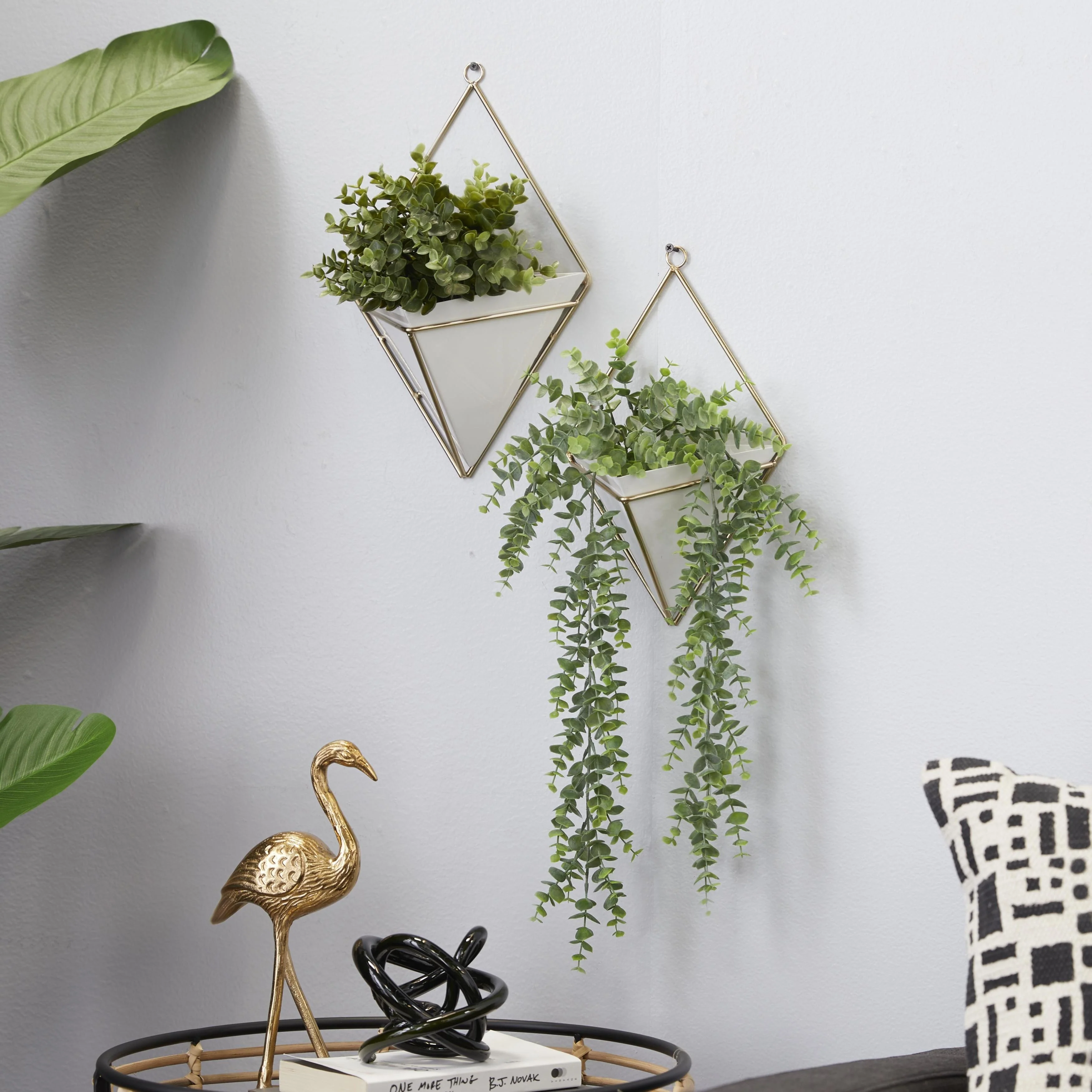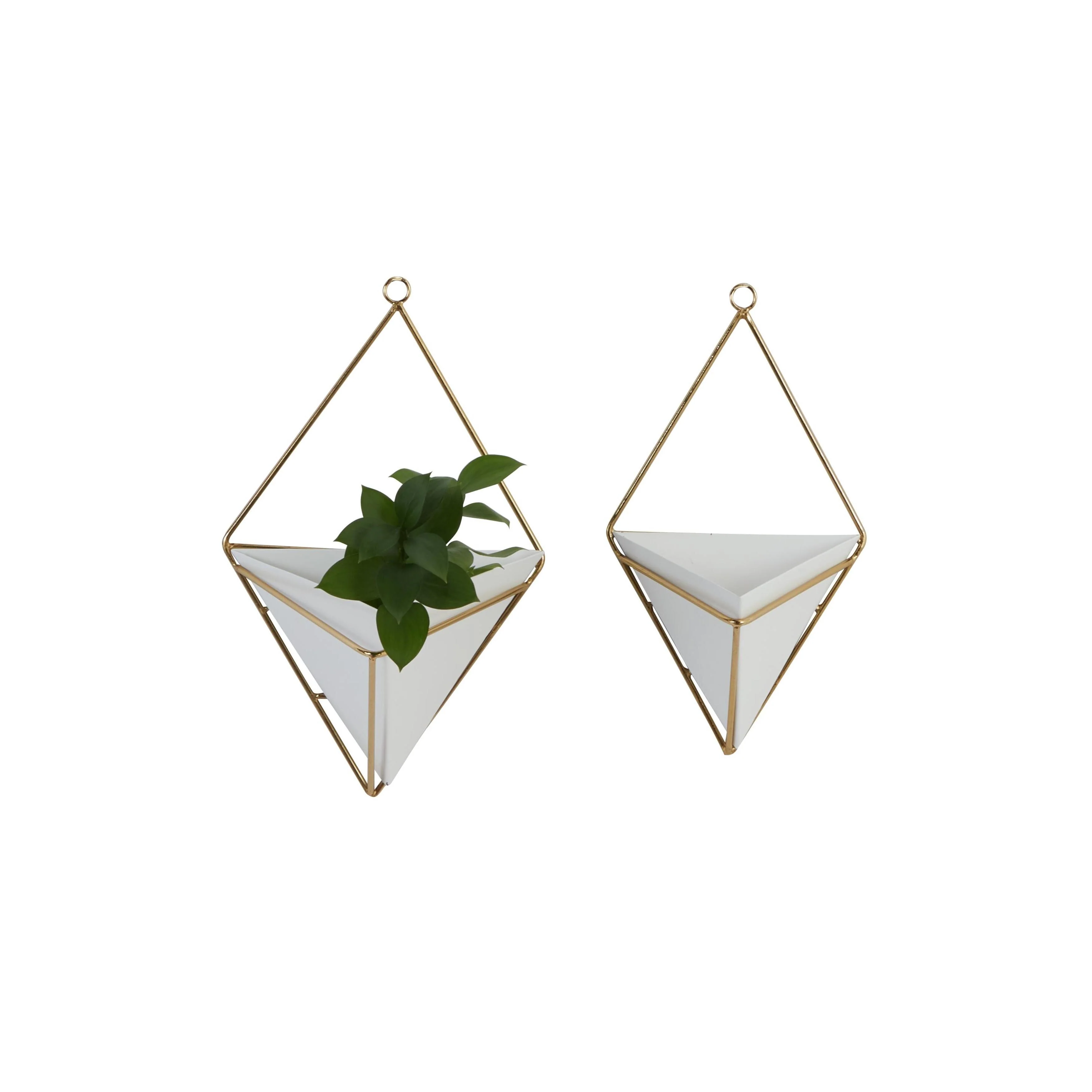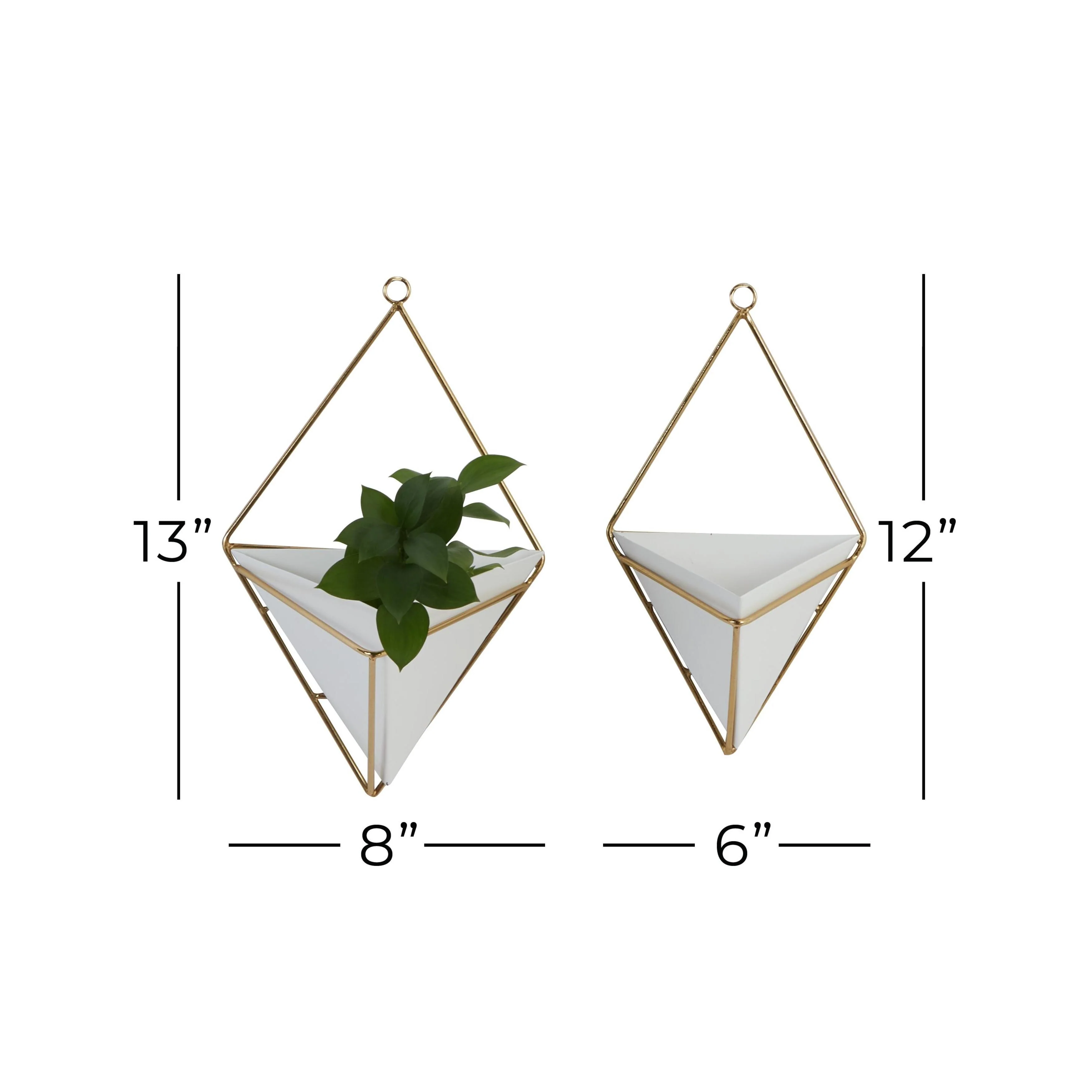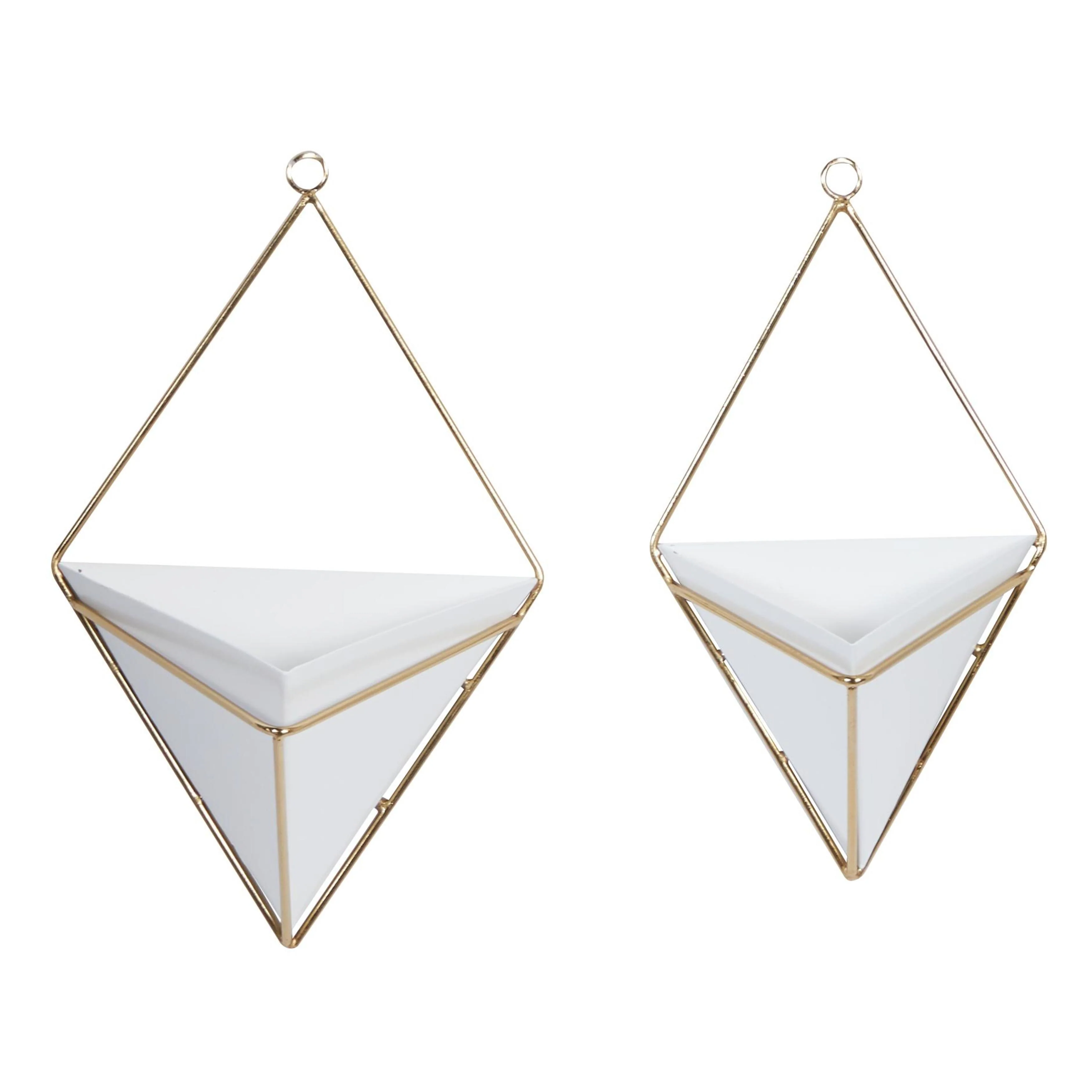 Metal Geometric Indoor Outdoor Triangle Wall Planter - Set of 2 White - CosmoLiving by Cosmopolitan - 6"W x 8"L x 13"H