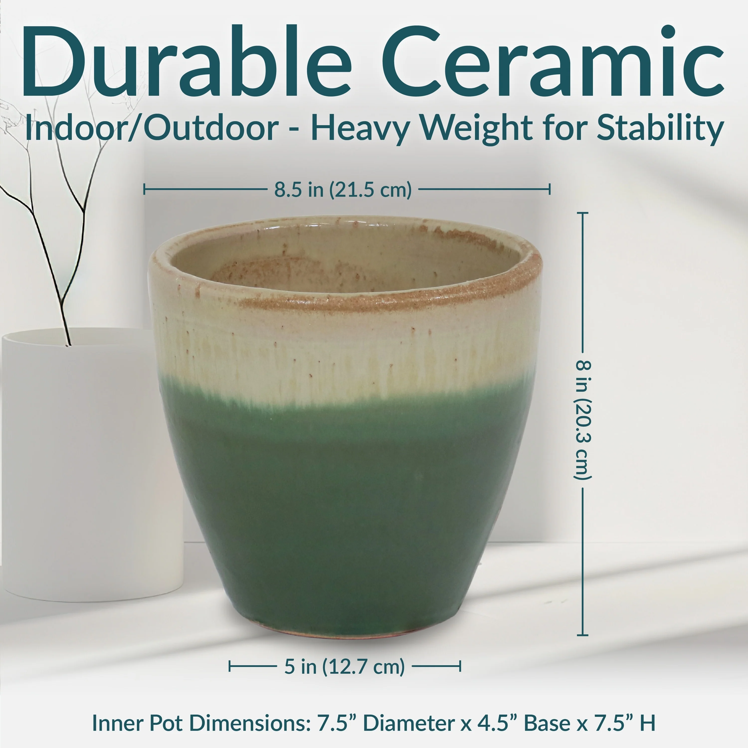 Sunnydaze Resort Ceramic Planter - Set of 2 - Seafoam - 8-Inch