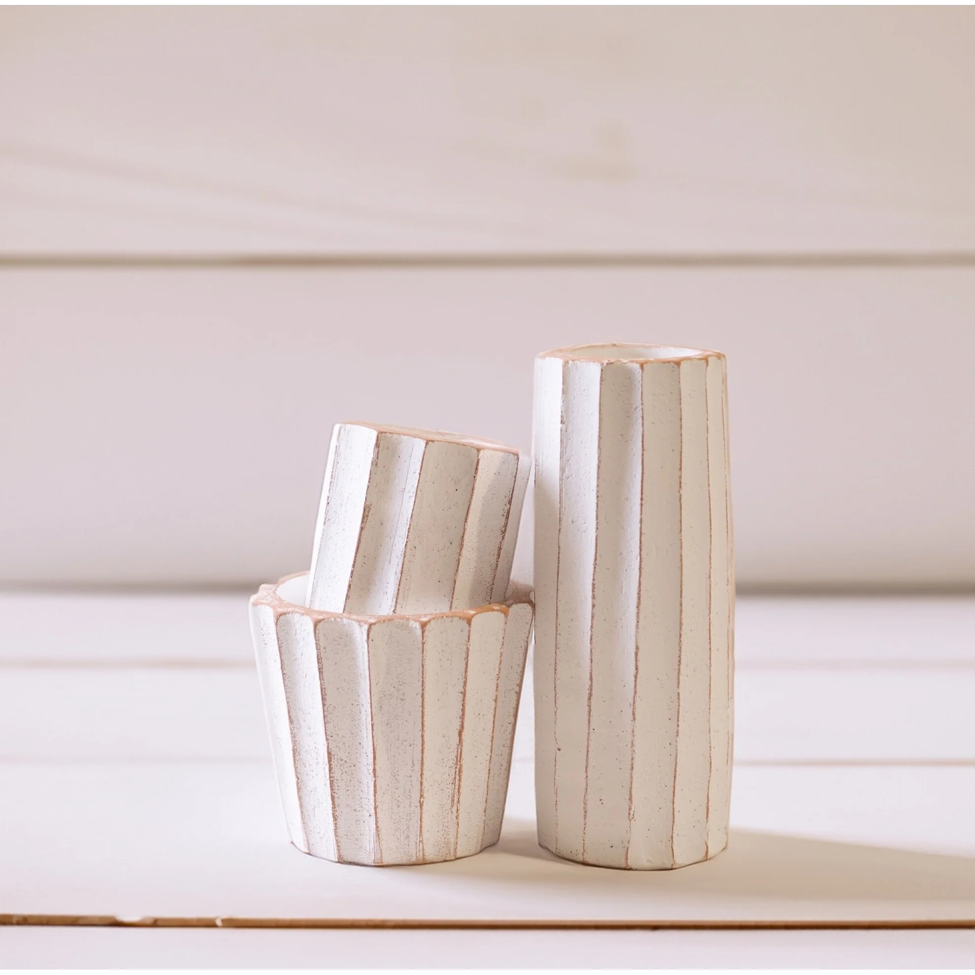 Rustic Fluted Tapered Planter - 20" - White