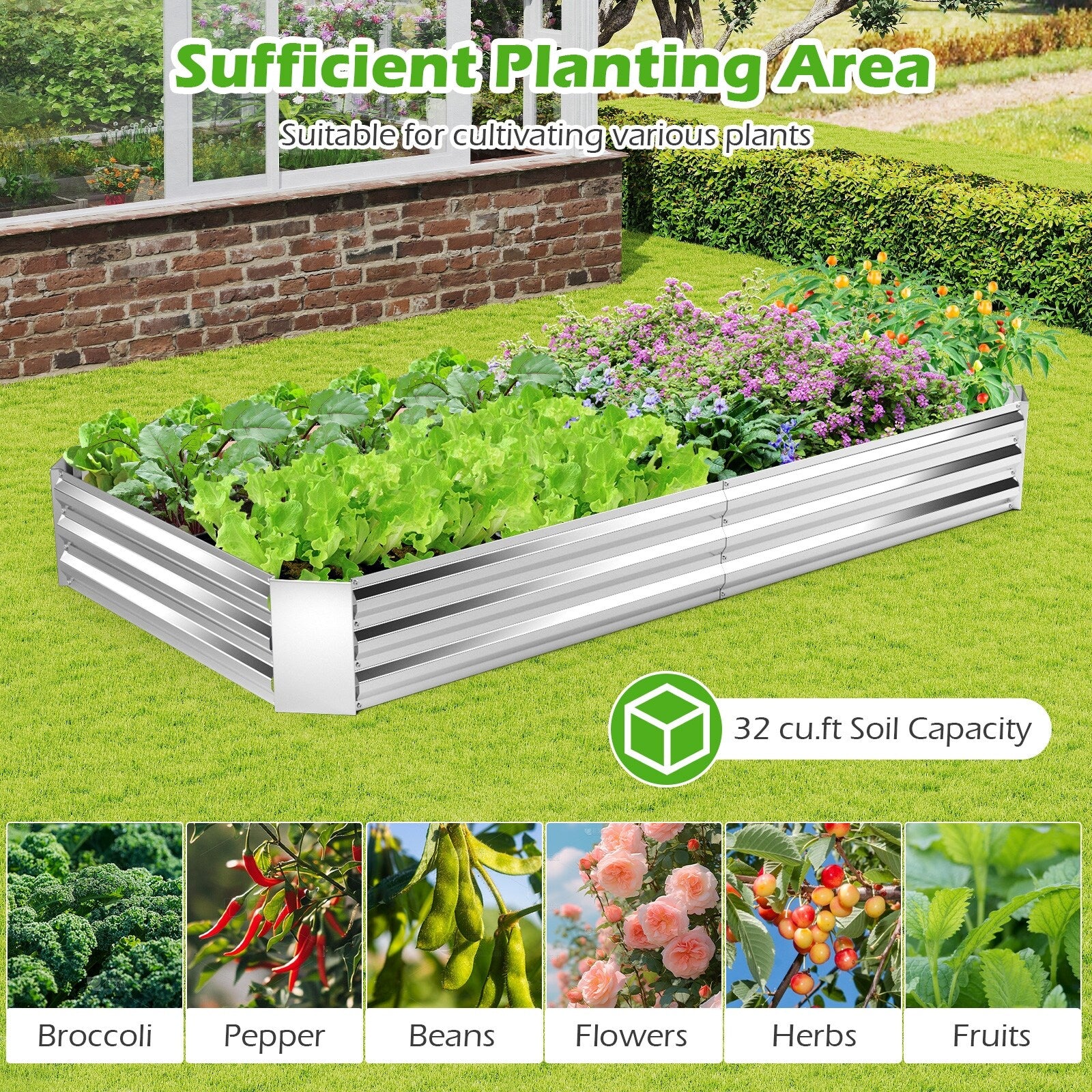 Gymax 2PCS Galvanized Raised Garden Bed Elevated Rectangle Plant Box 8
