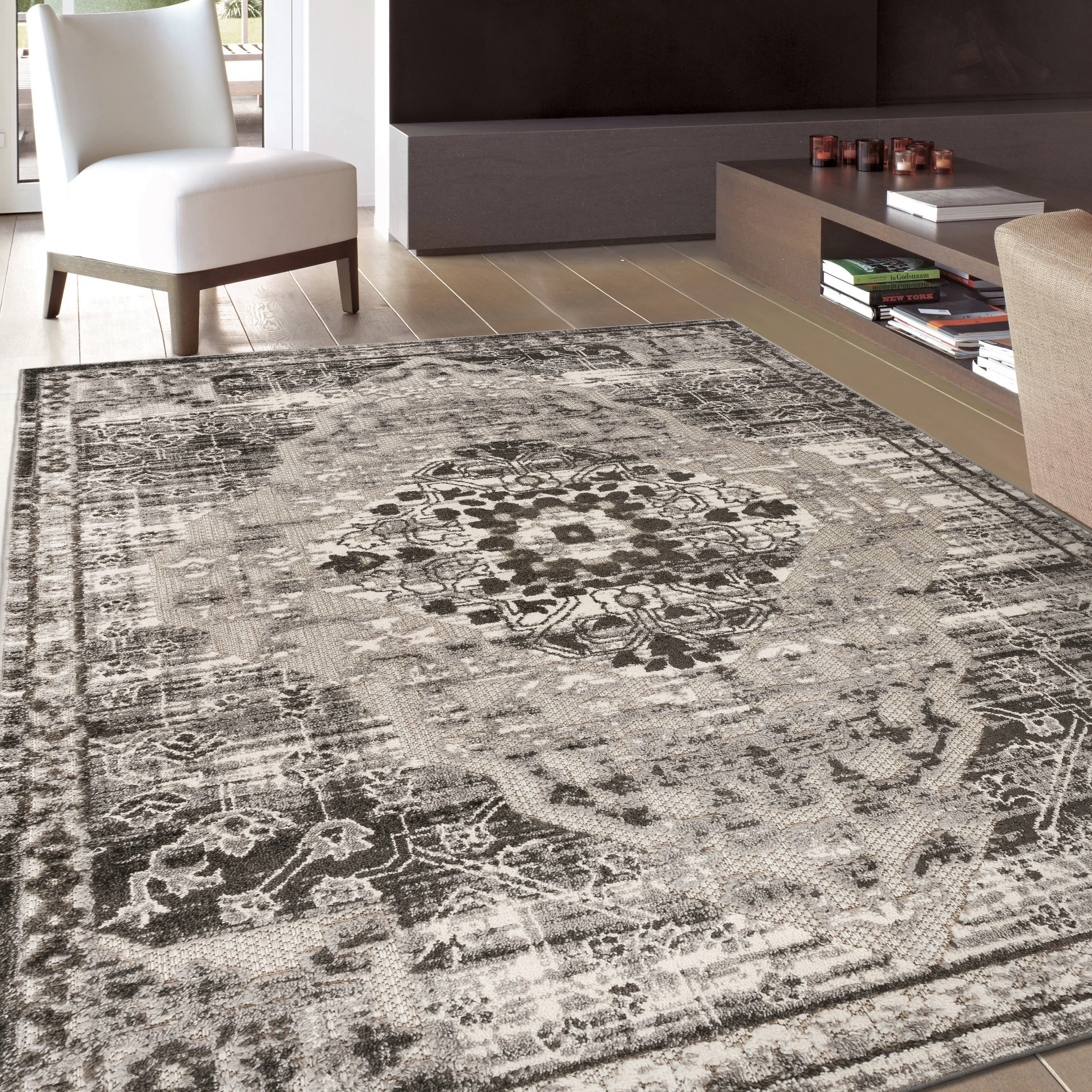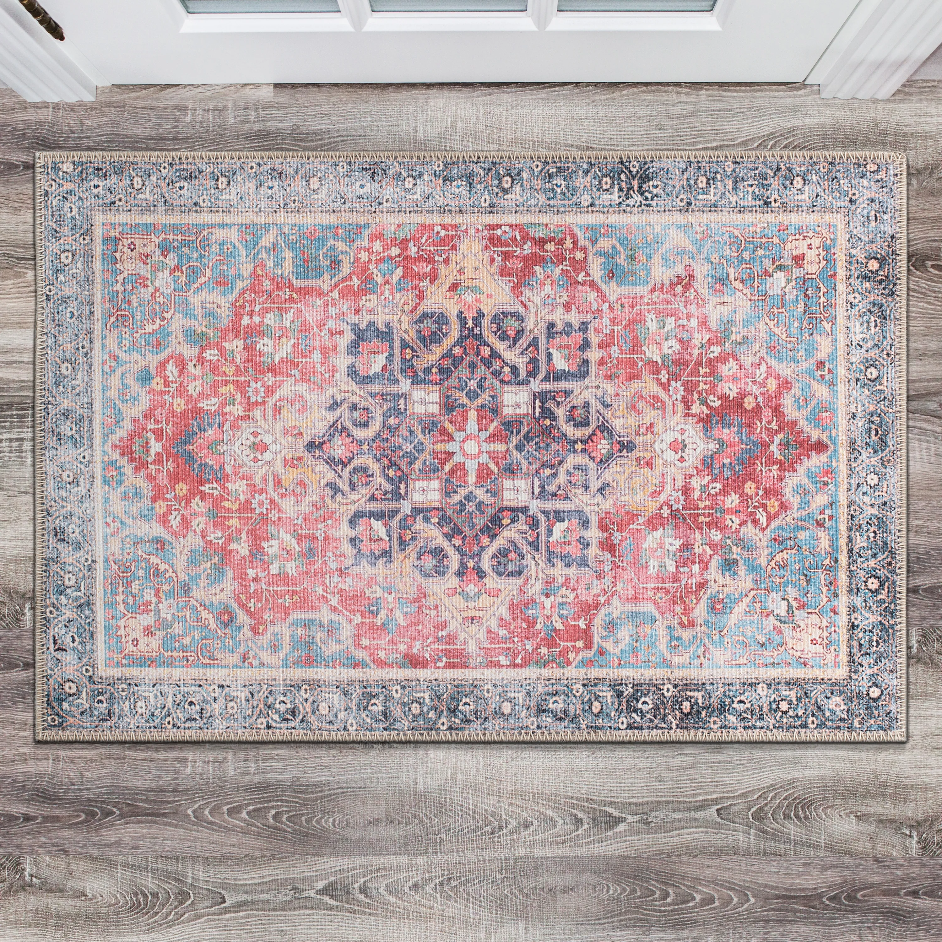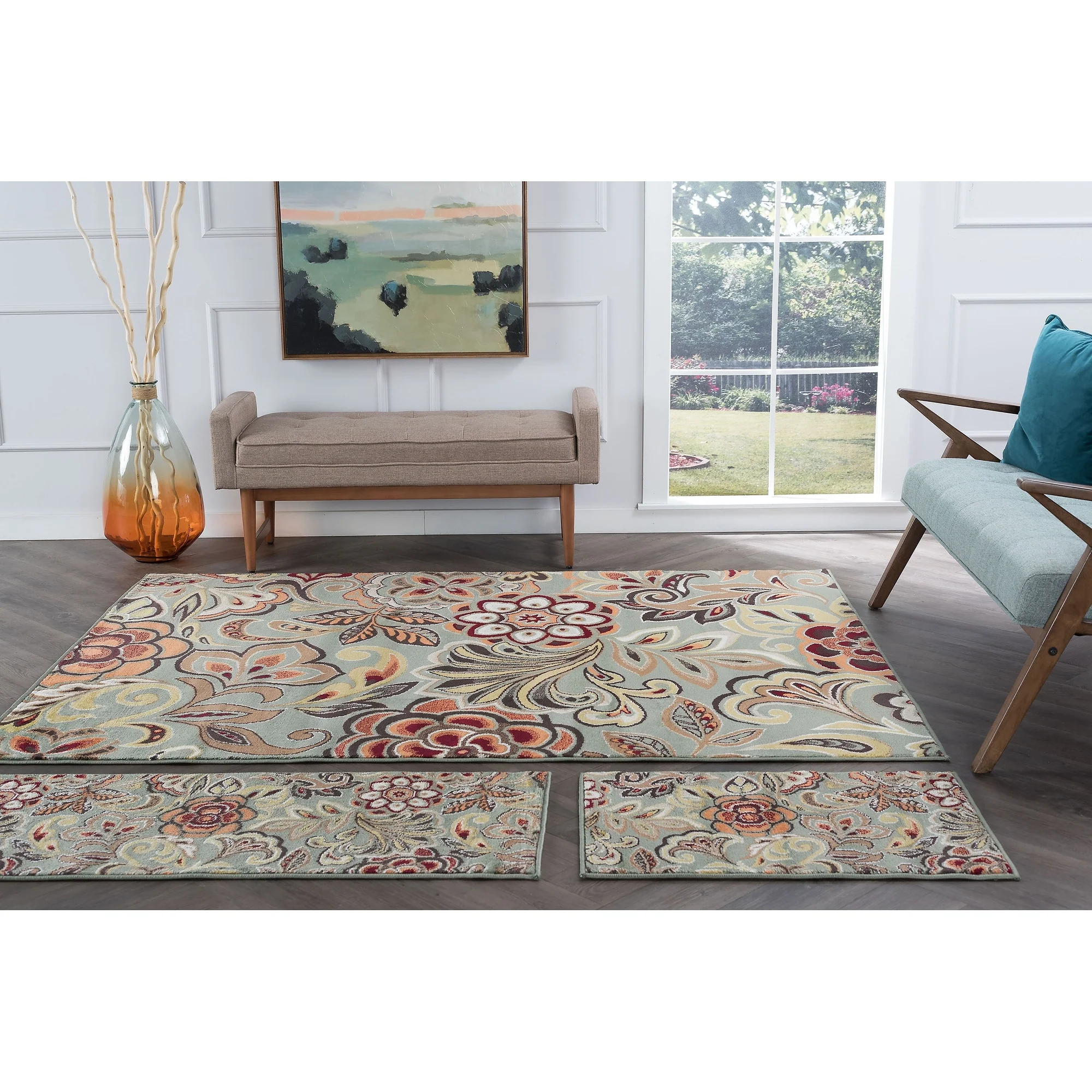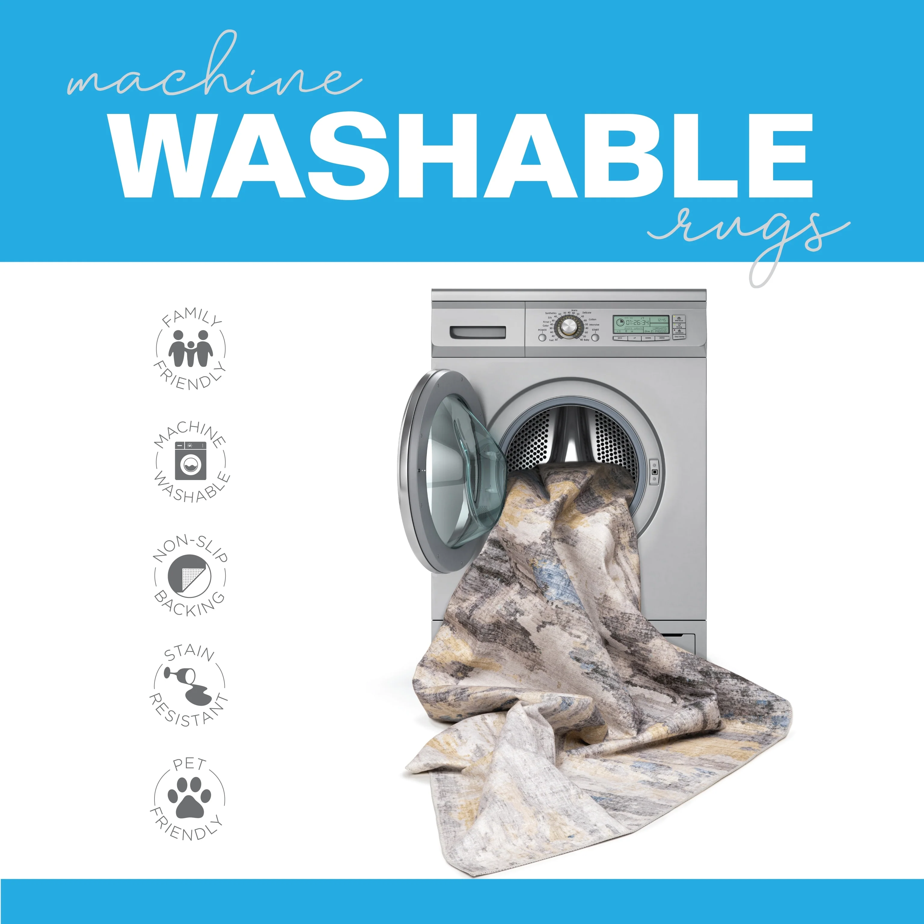 Vista Home Marissa Washable Abstract Grey/ Blue Indoor Area Rug