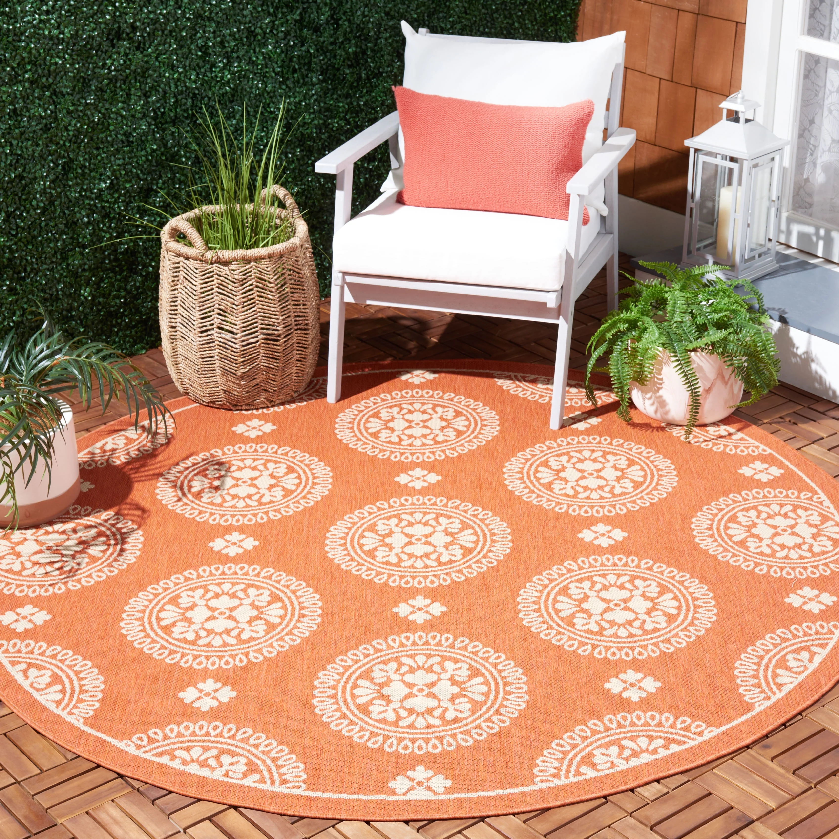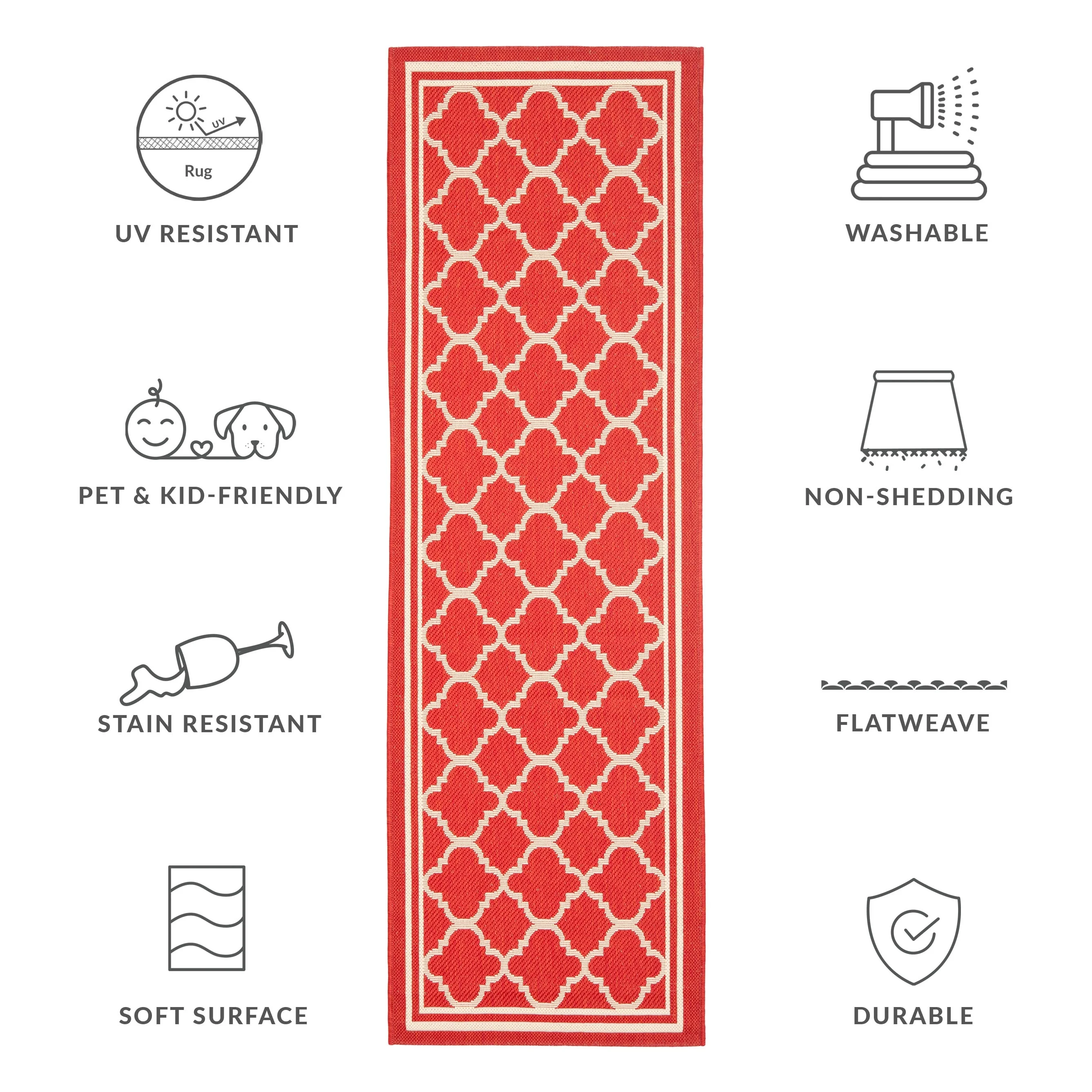 Vista Home Martinique Off-White/Brick Red Lattice Indoor/Outdoor Rug.