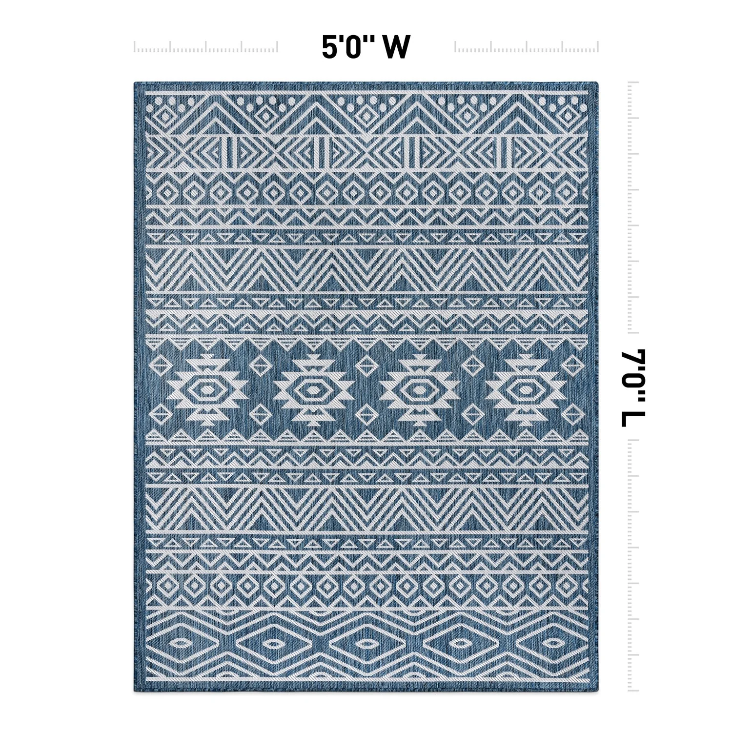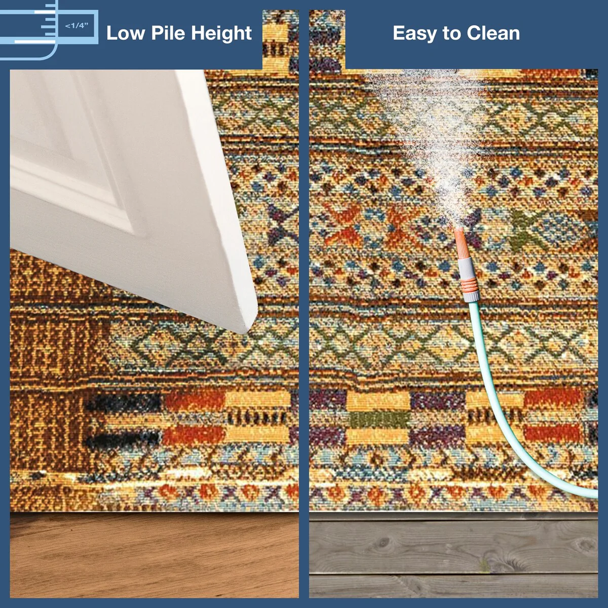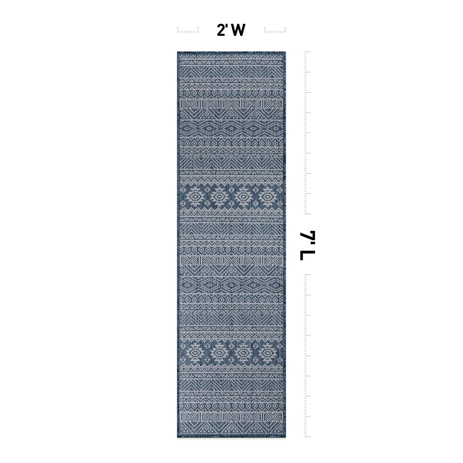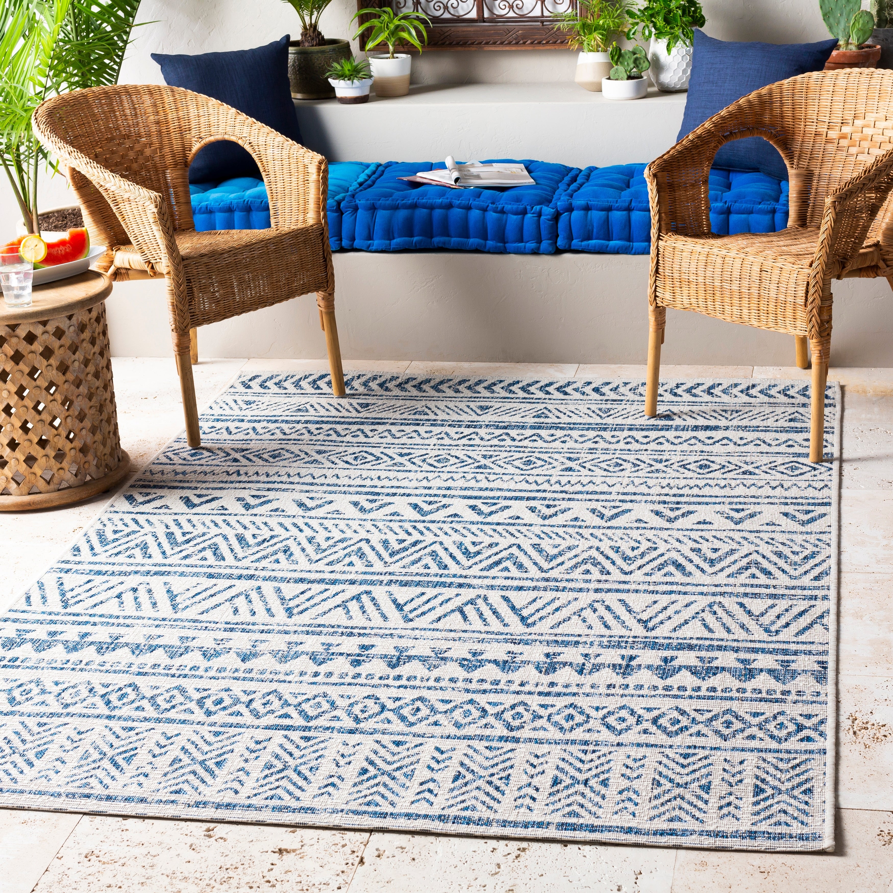 World Rug Gallery Distressed Geometric Bohemian Textured Flat Weave Indoor/Outdoor Area Rug