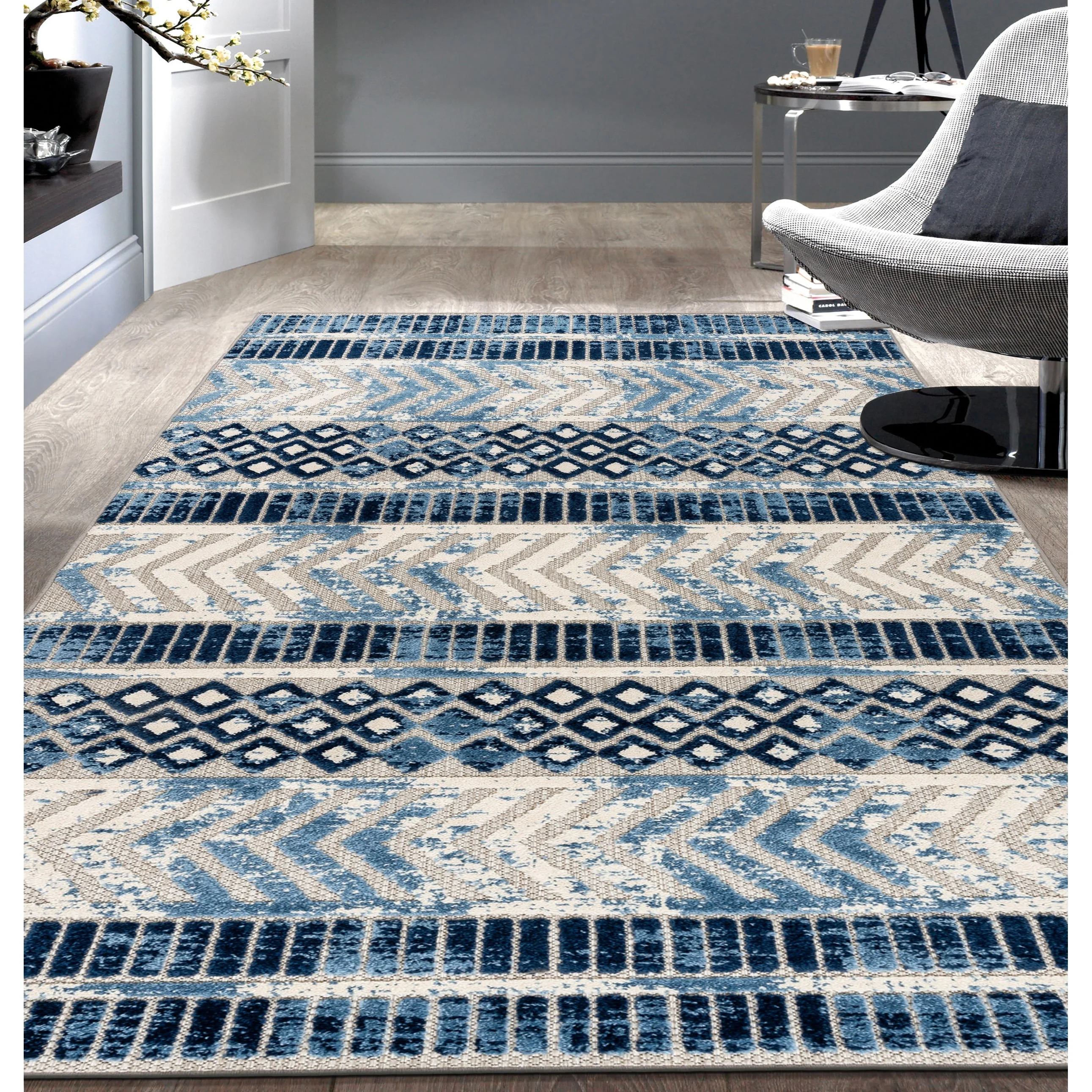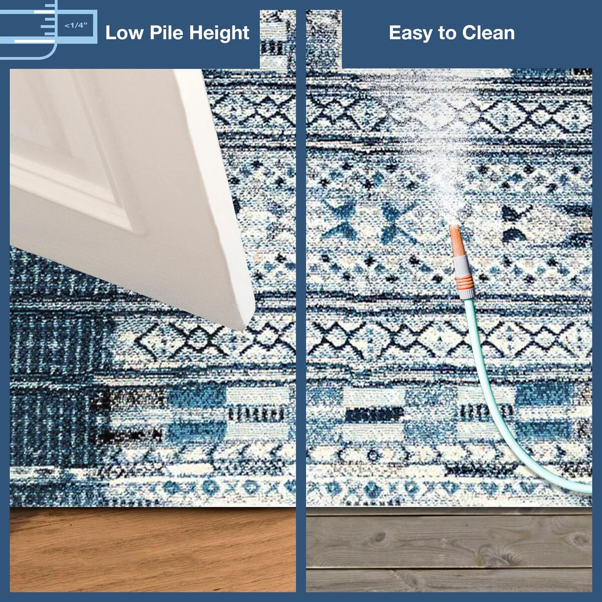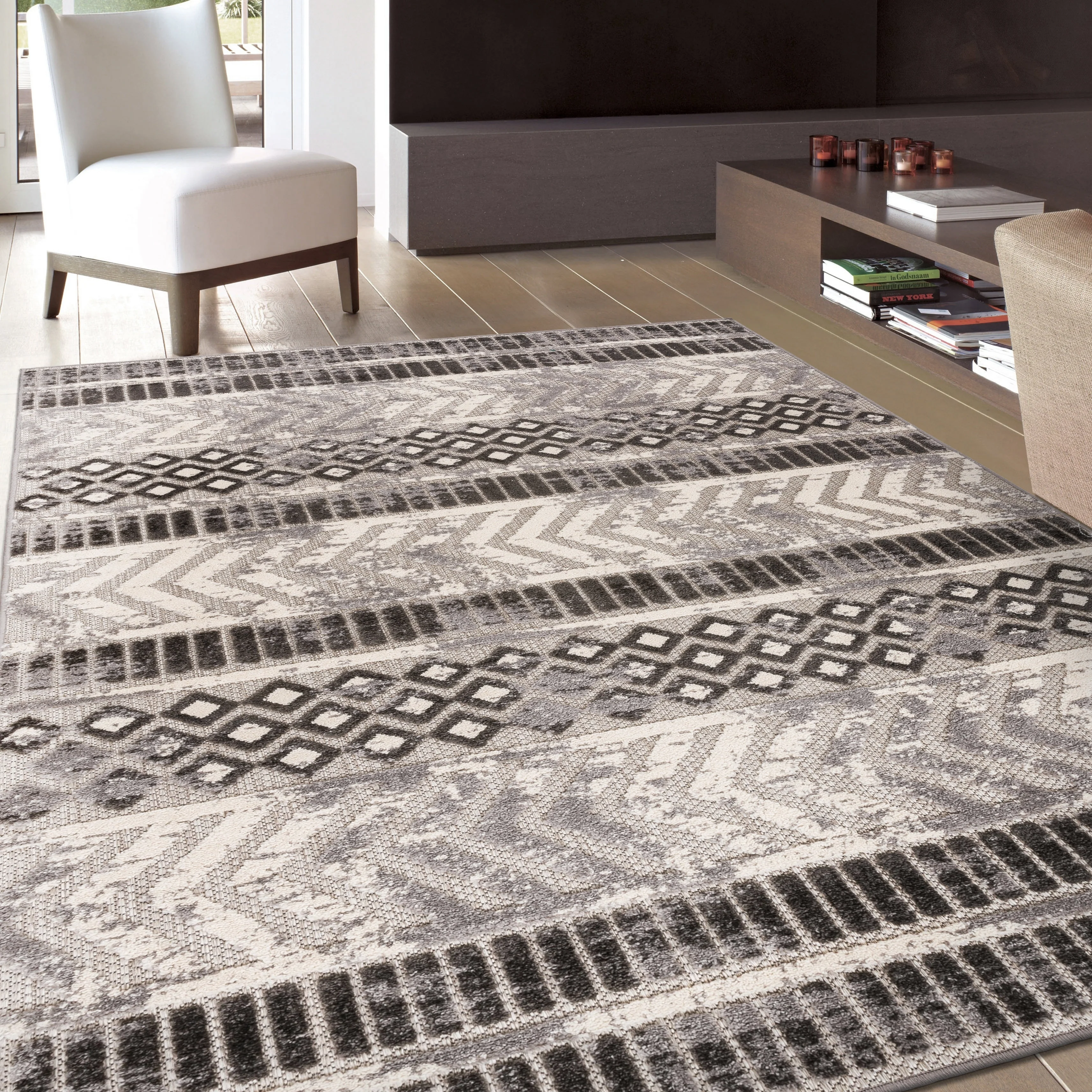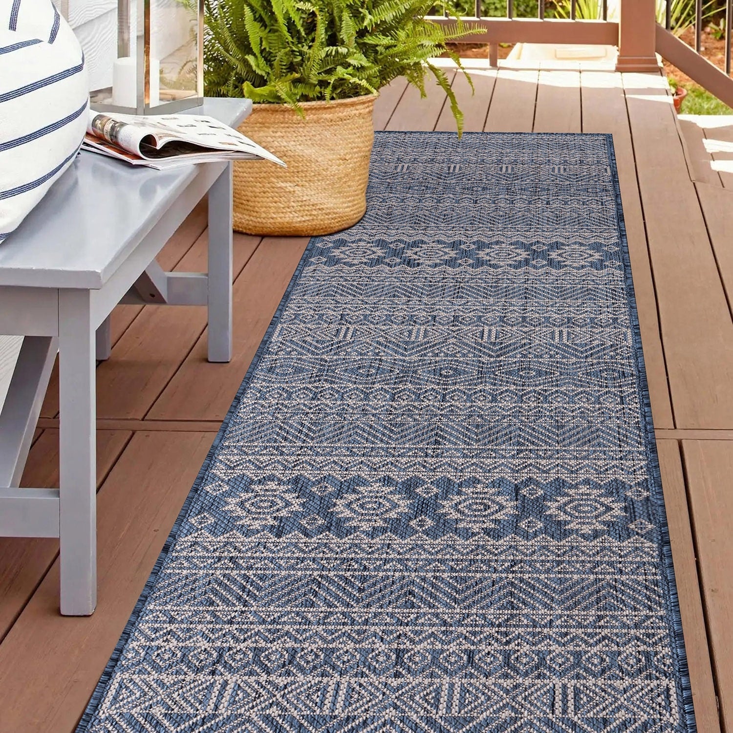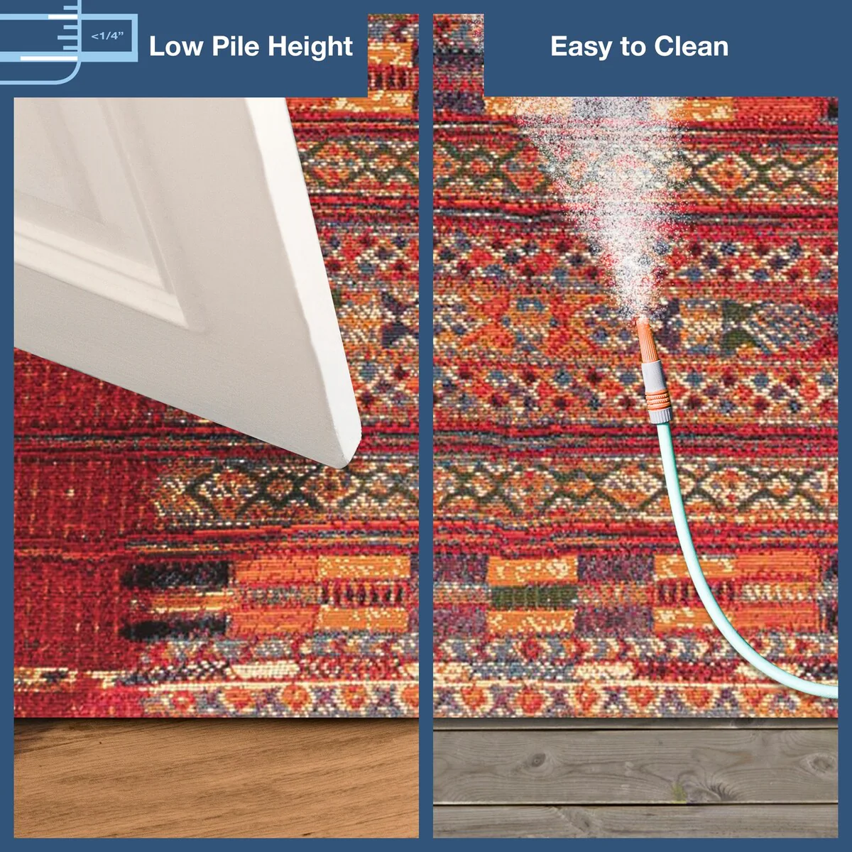 World Rug Gallery Distressed Geometric Bohemian Textured Flat Weave Indoor/Outdoor Area Rug
