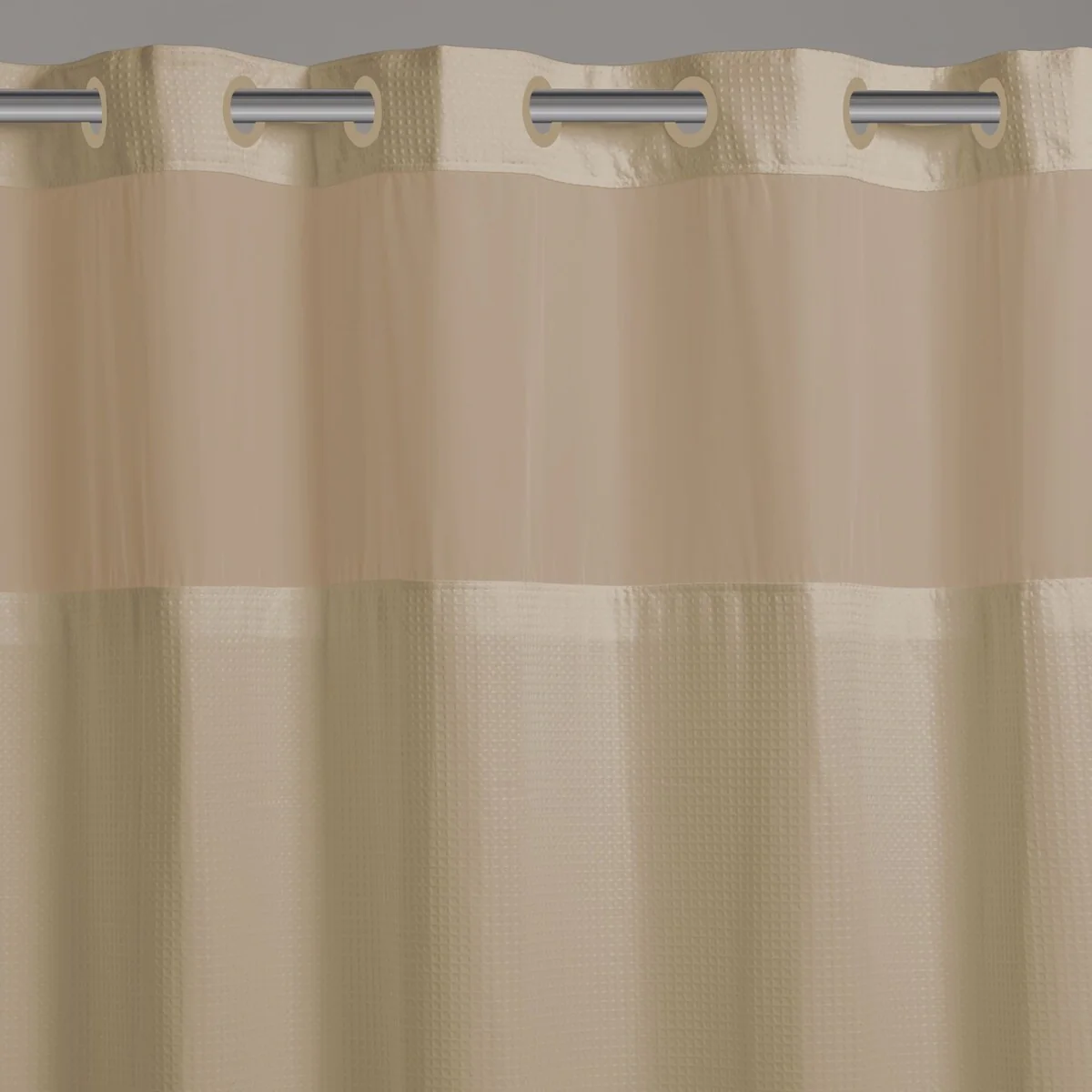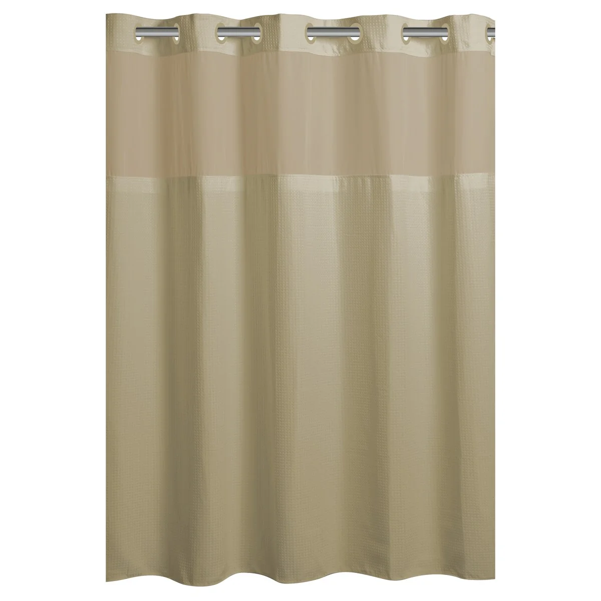 The innovative Hookless Microfiber Shower Curtain is designed to bring a spa-like ambiance effortlessly. The bathroom curtain set includes the fabric shower curtain, built-in rings, PEVA liner, and a sheer window. This shower curtain set offers a 3-in-1 value, transforming your bathroom decor in seconds without the hassle of hooks. With no need to remove the rod, the shower curtain slides right on with its FLEX-ON built-in rings that won't rust. The It��s A Snap! shower liner, is made of PEVA material, and snaps on and off ??easily for quick replacements and water repellence. The shower curtain features a sheer window for natural light, maintaining privacy while reducing ??humidity and moisture. Our OEKO-TEX certified Hookless shower curtains, are crafted with safety in mind. Maintenance of these bath curtains is also a breeze; simply shake off excess water after each use and hang the curtain to air dry. For cleaning, machine wash the curtain on a gentle cycle and spot clean or replace the PEVA liner as needed. After each use, shake off the water let the curtain hang freely outside the tub and allow it to air dry. ???