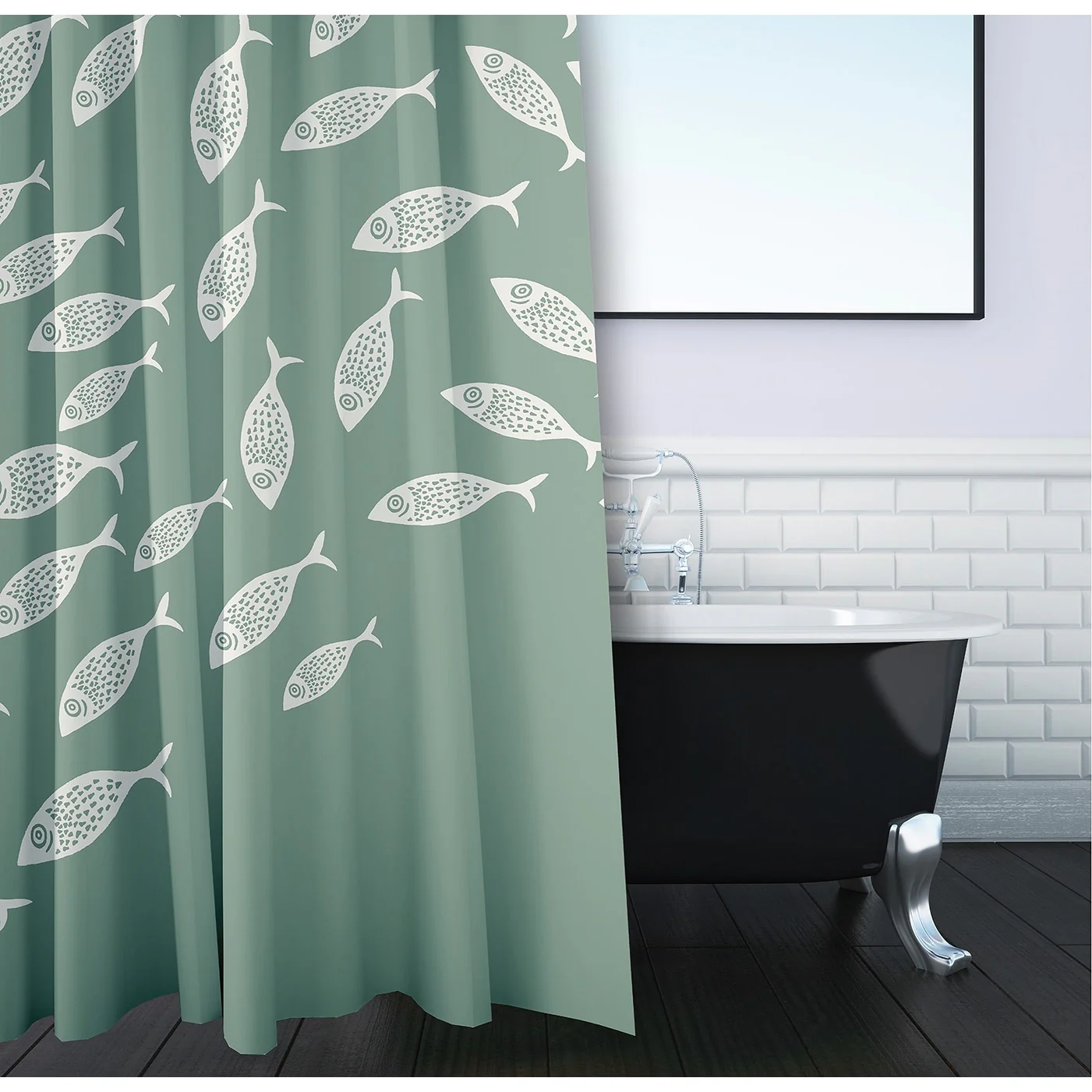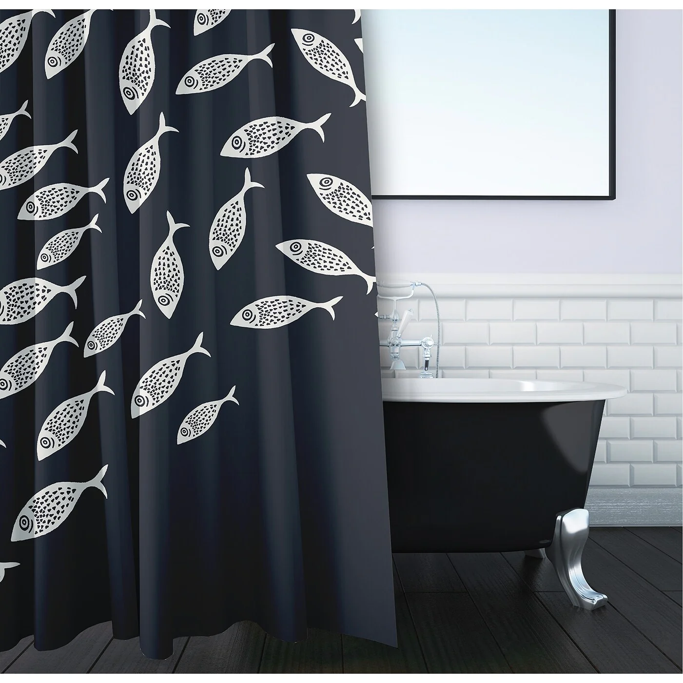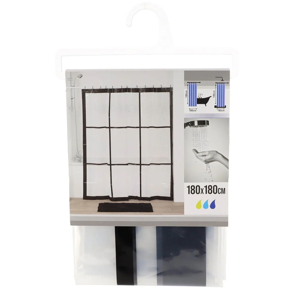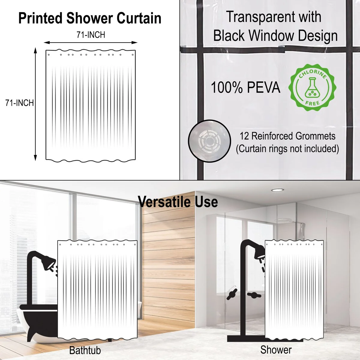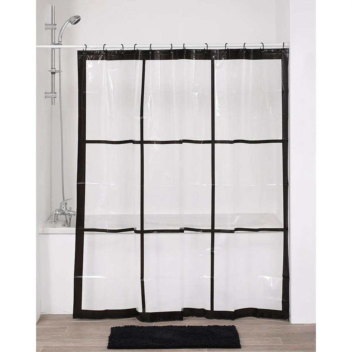 Transparent PEVA Shower Curtain - Black Window Design - 71x71 Inches