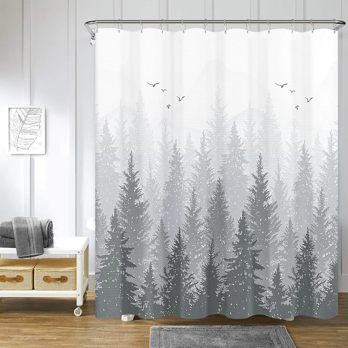 Mountain Shower Curtain Misty Forest Nature Tree Plant Waffle Fabric