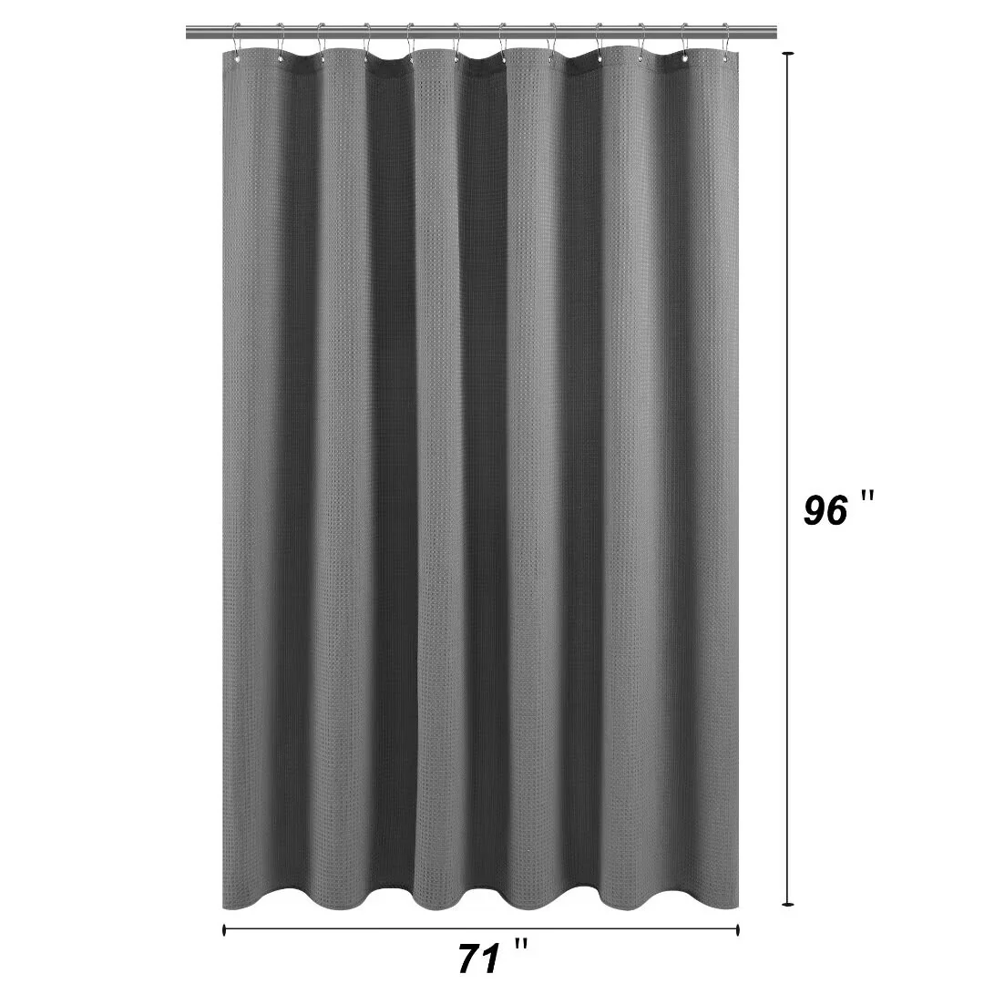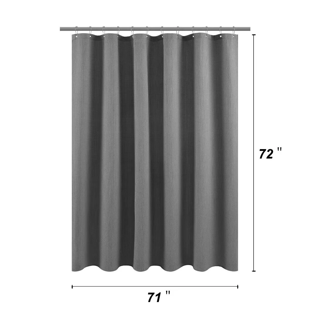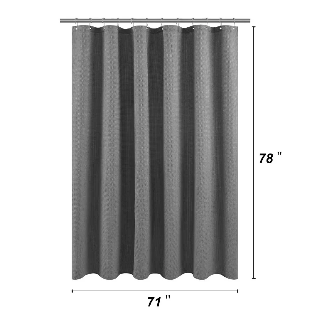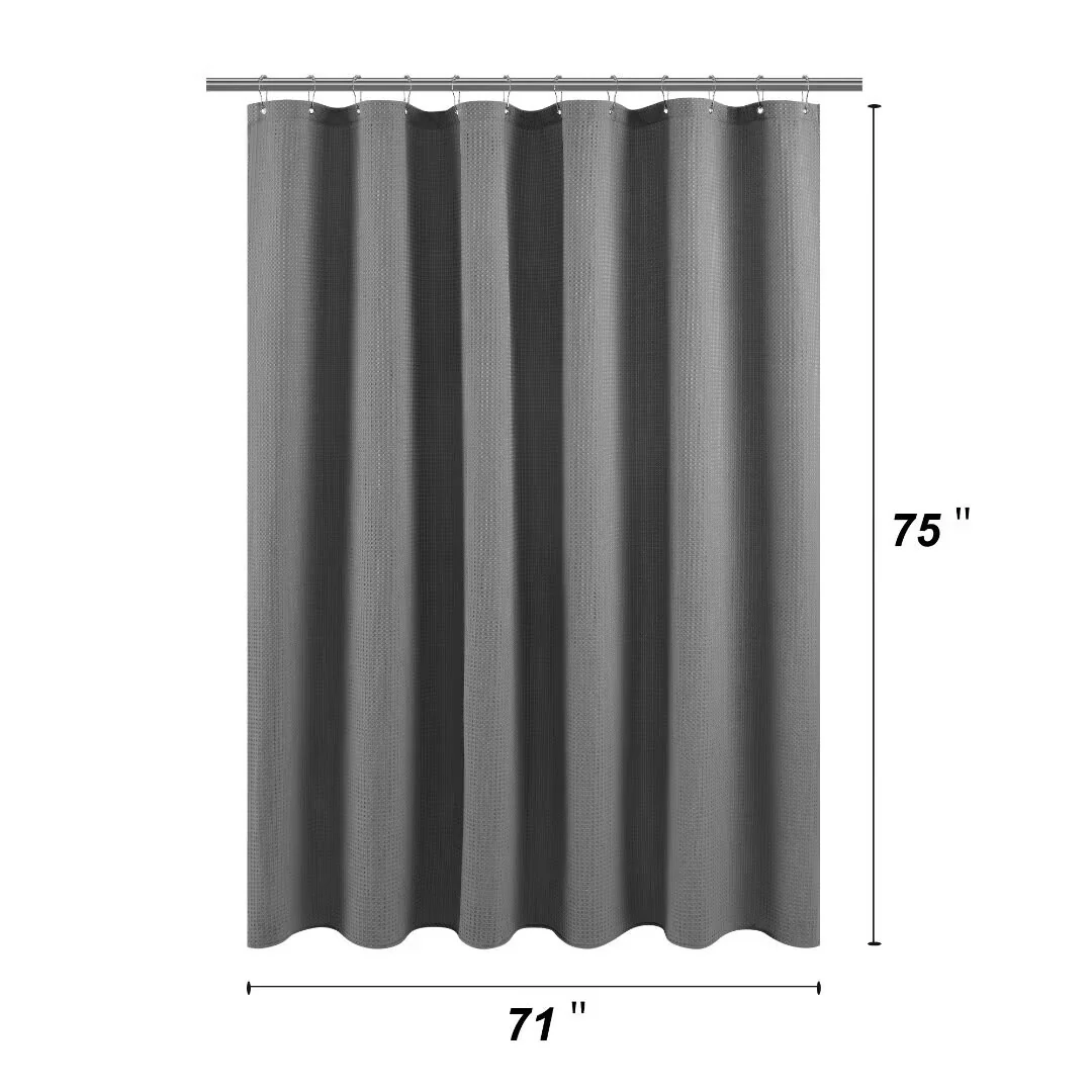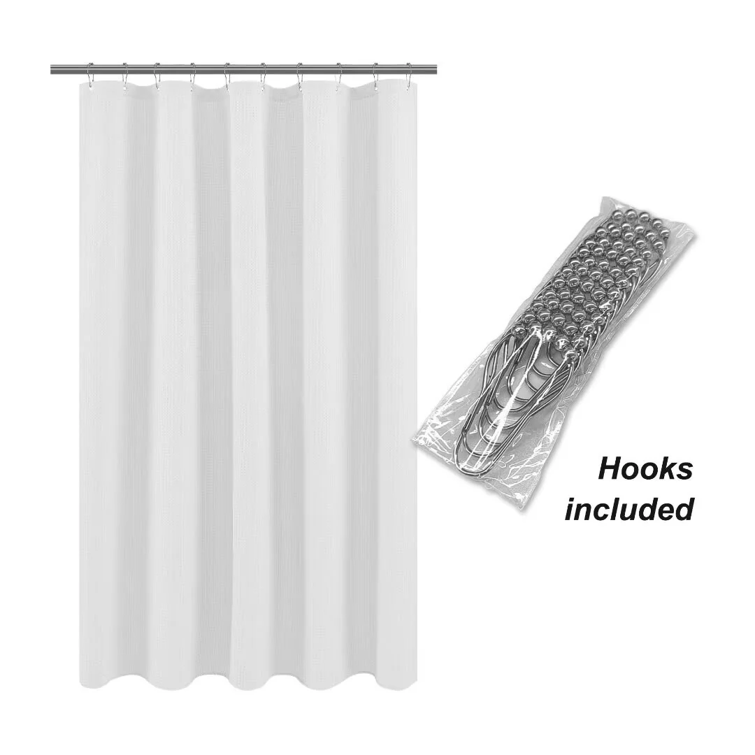 Dobby Waffle Shower Curtain with 12 Metal Hooks