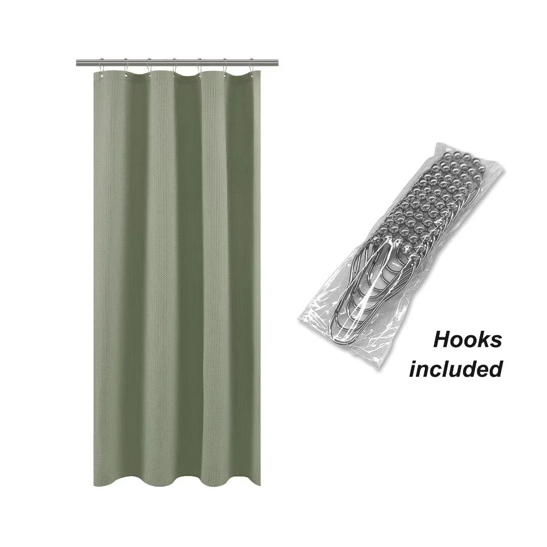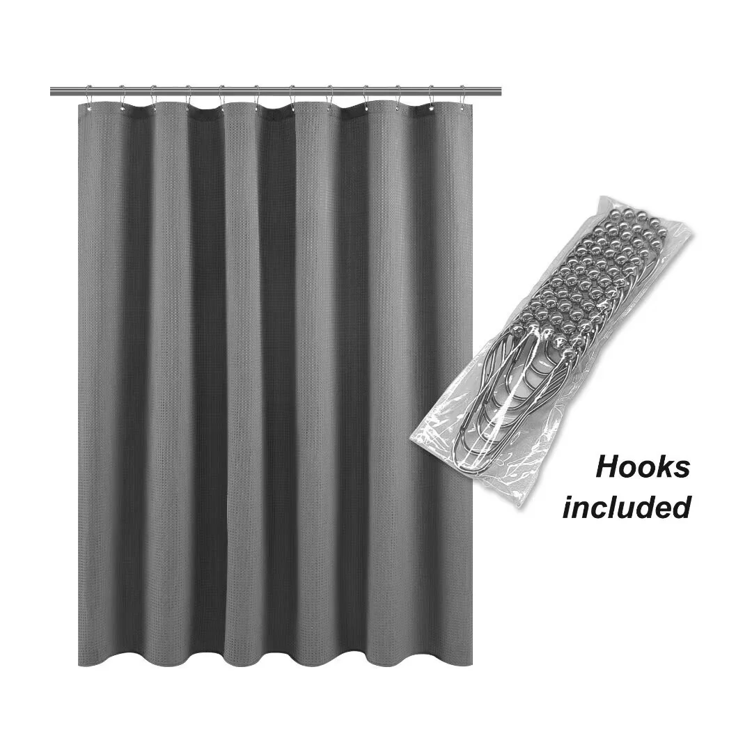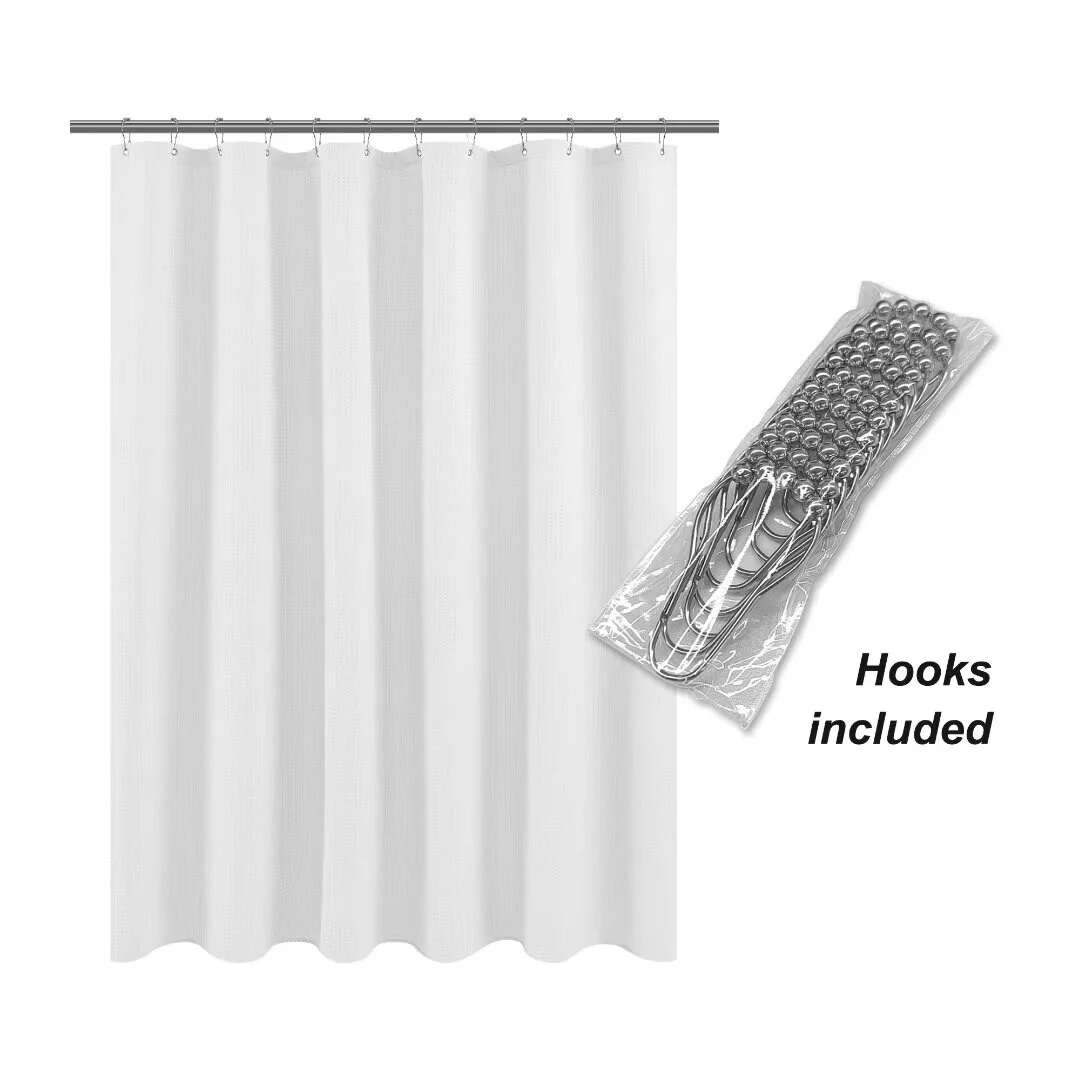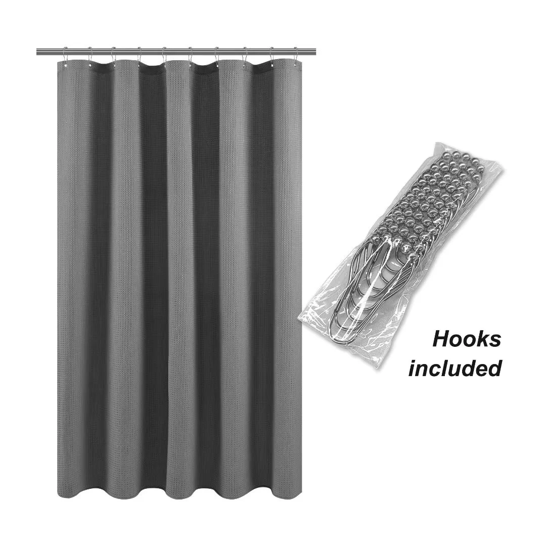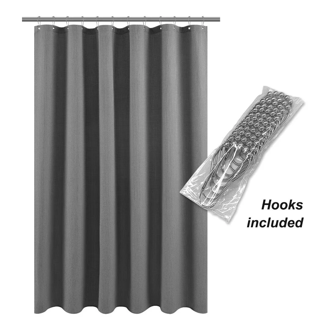 Dobby Waffle Shower Curtain with 12 Metal Hooks