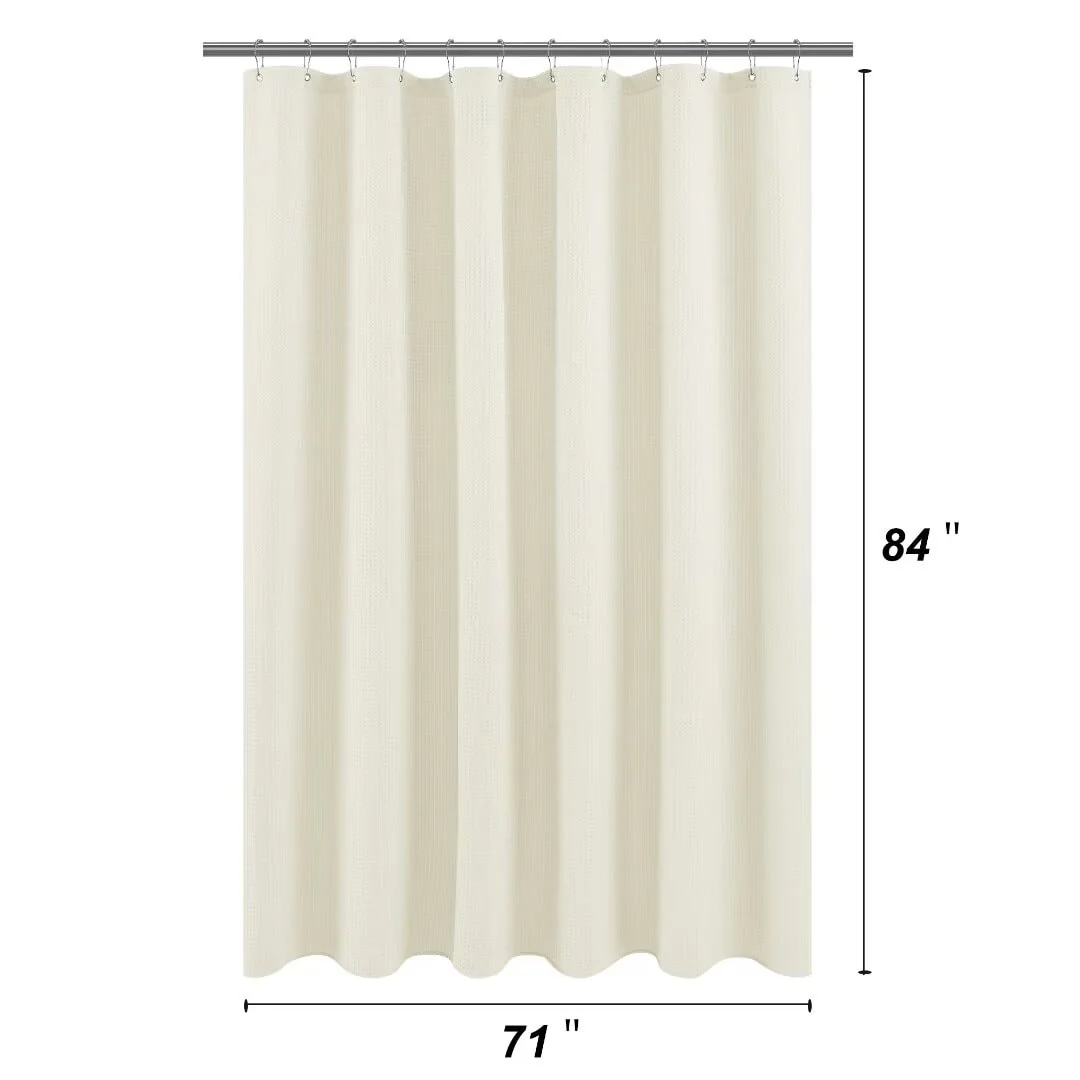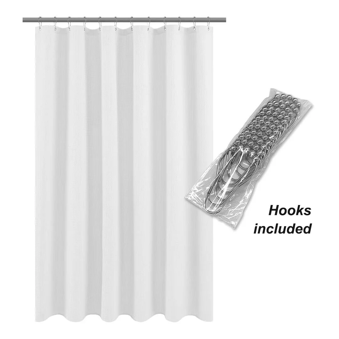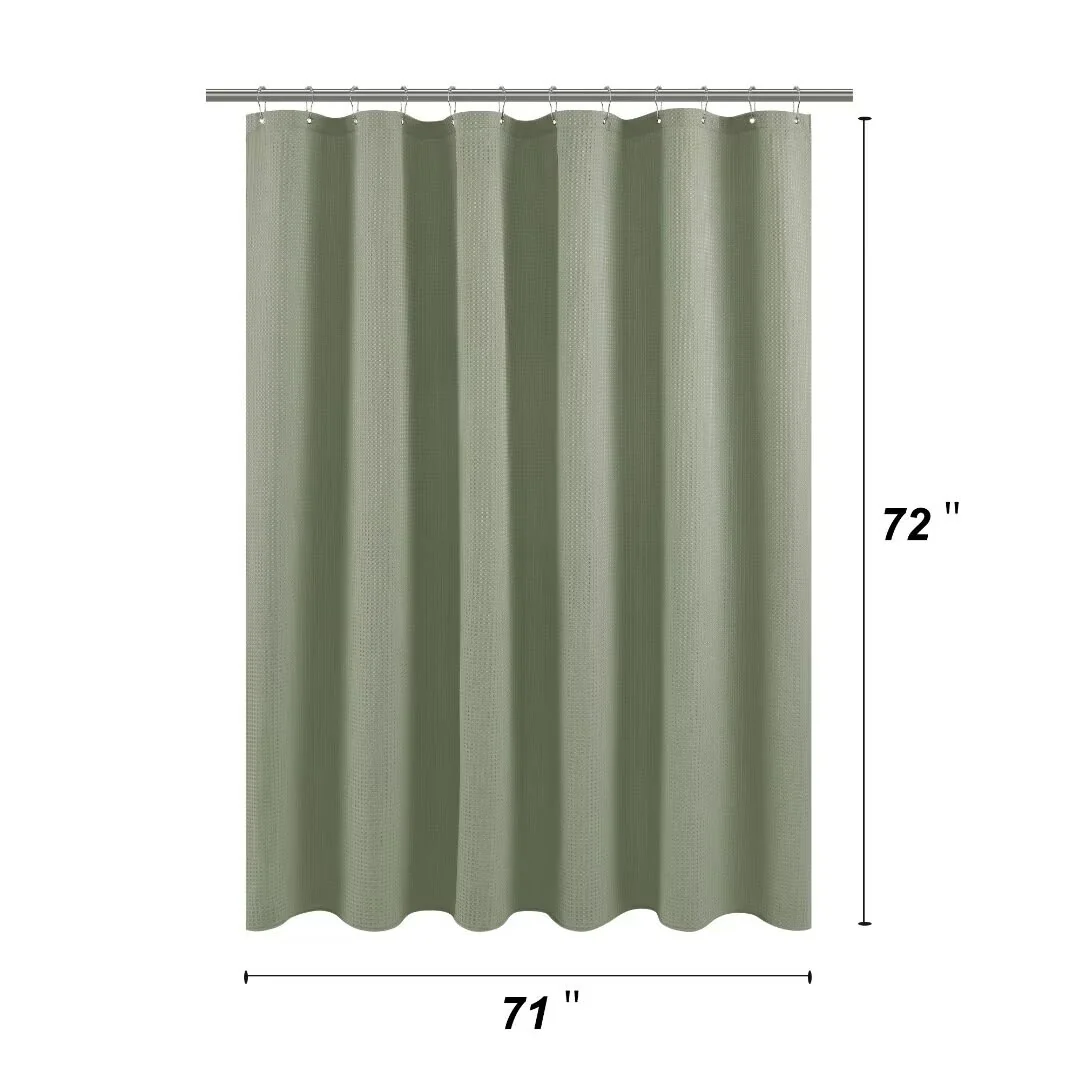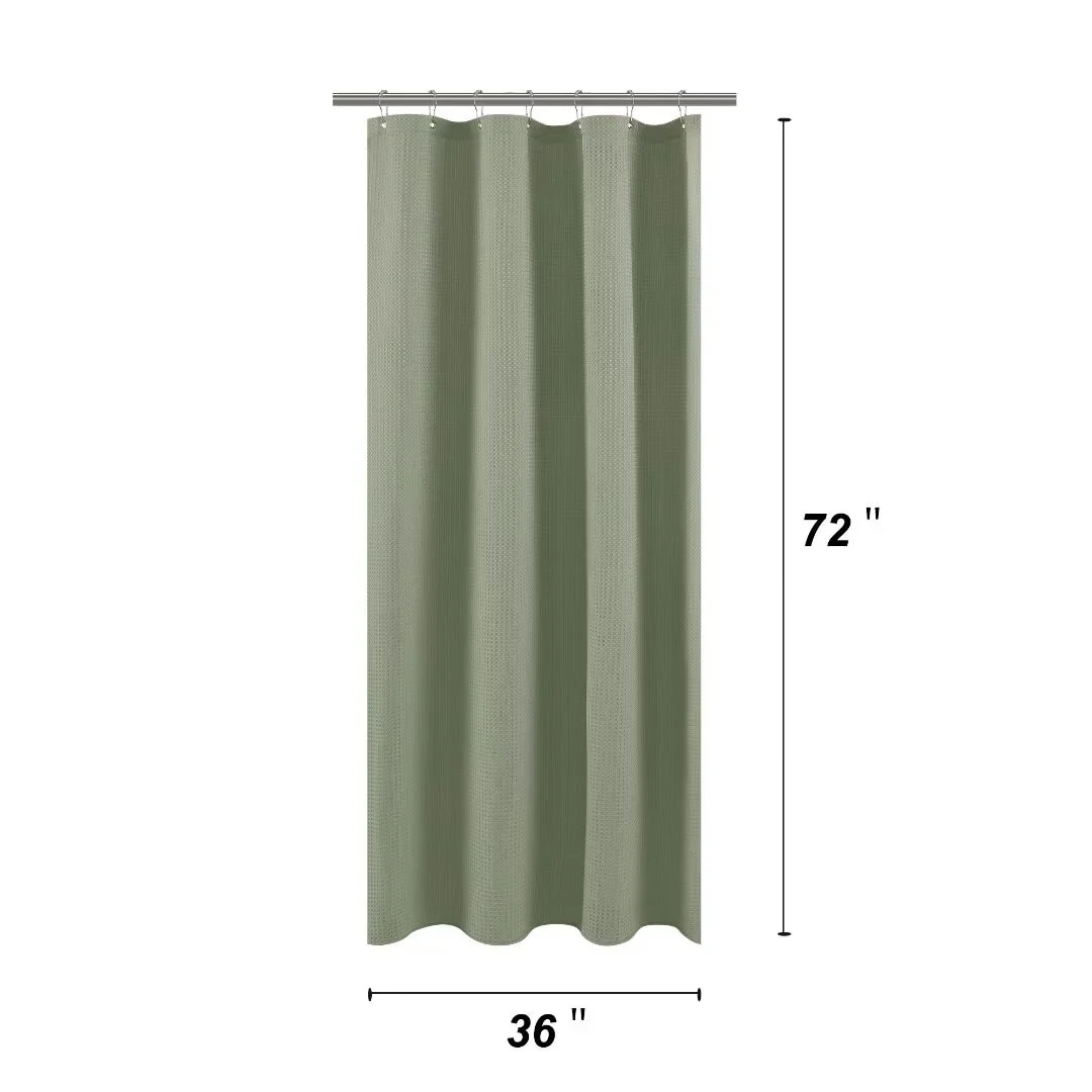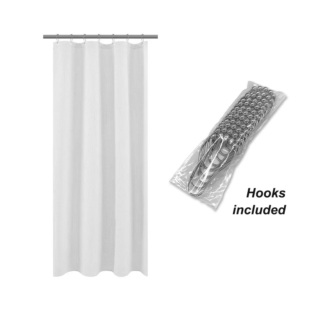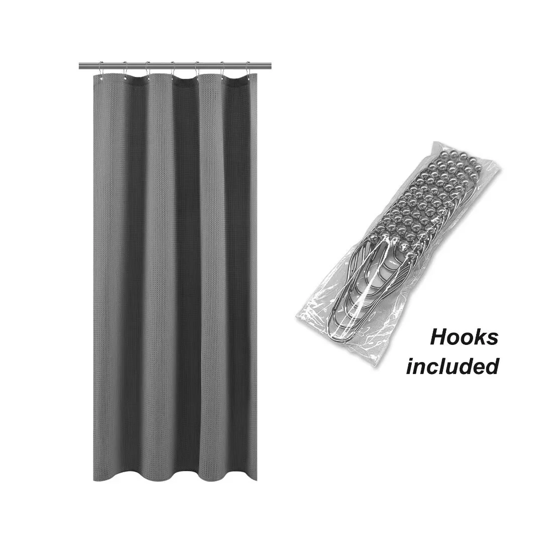 Dobby Waffle Shower Curtain with 12 Metal Hooks