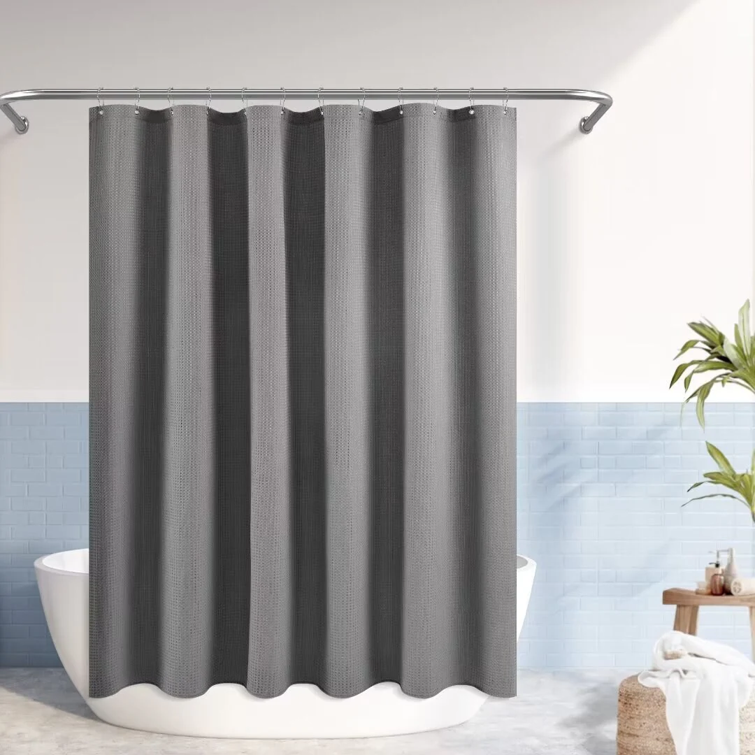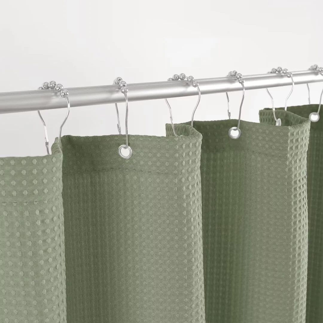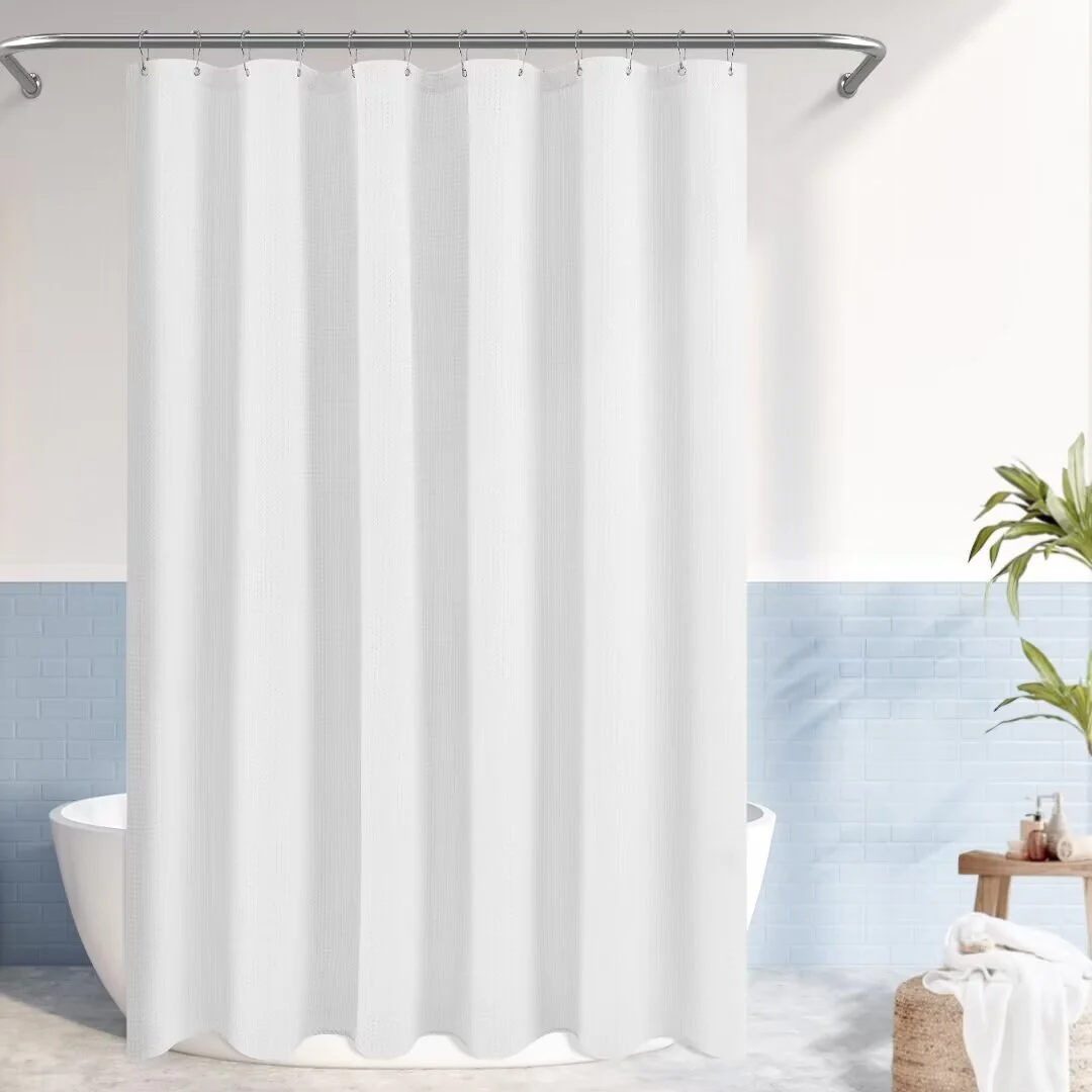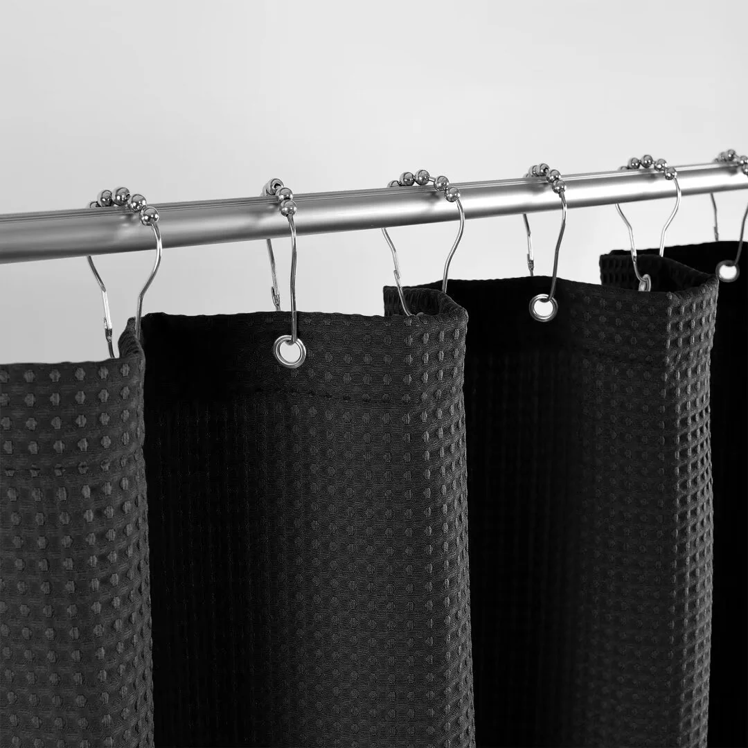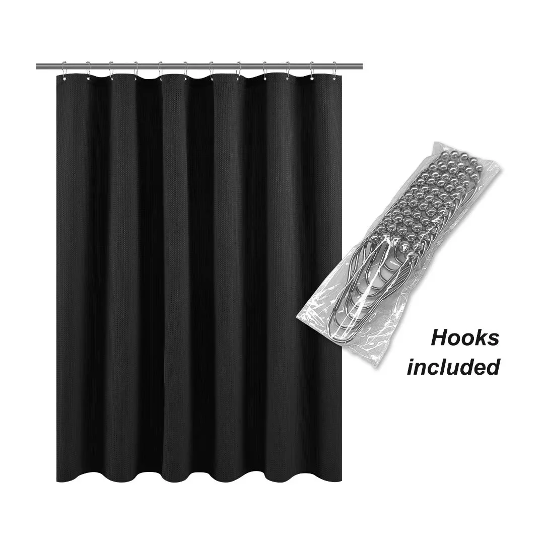 Dobby Waffle Shower Curtain with 12 Metal Hooks