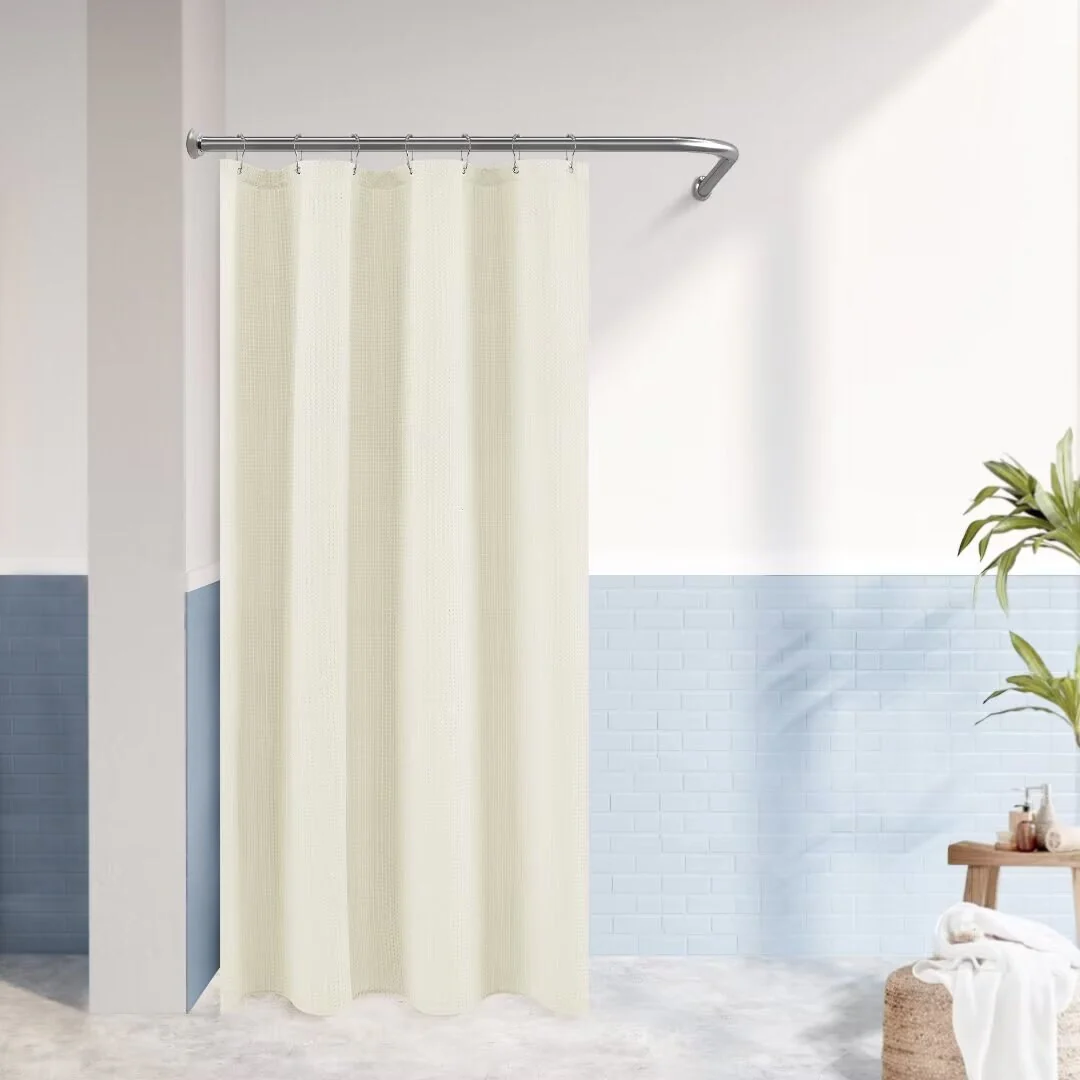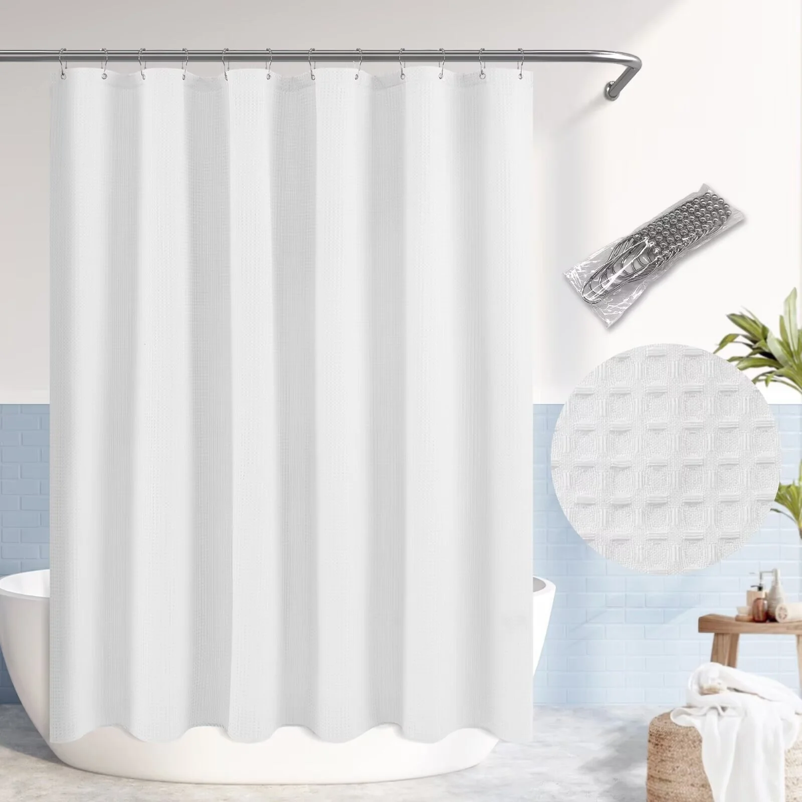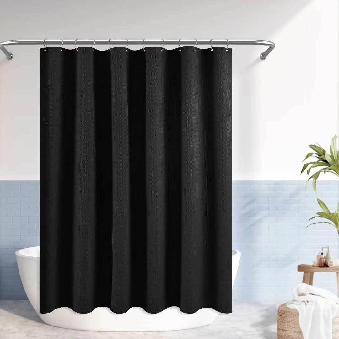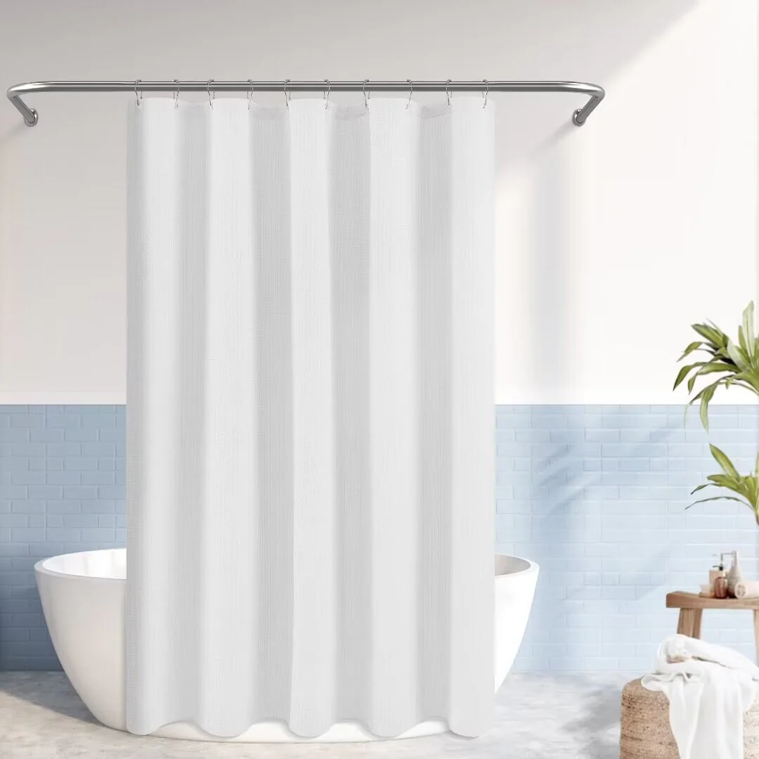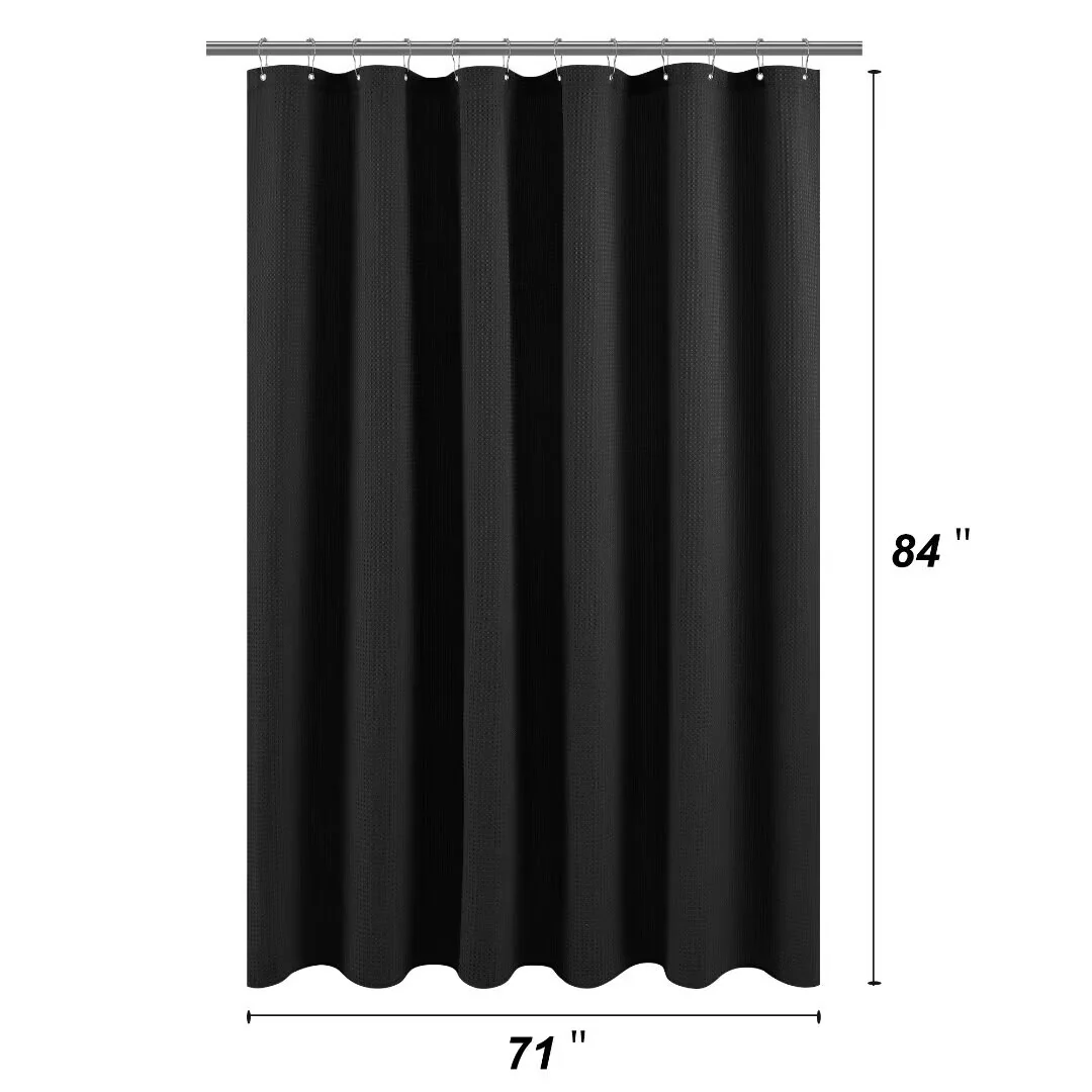 Dobby Waffle Shower Curtain with 12 Metal Hooks