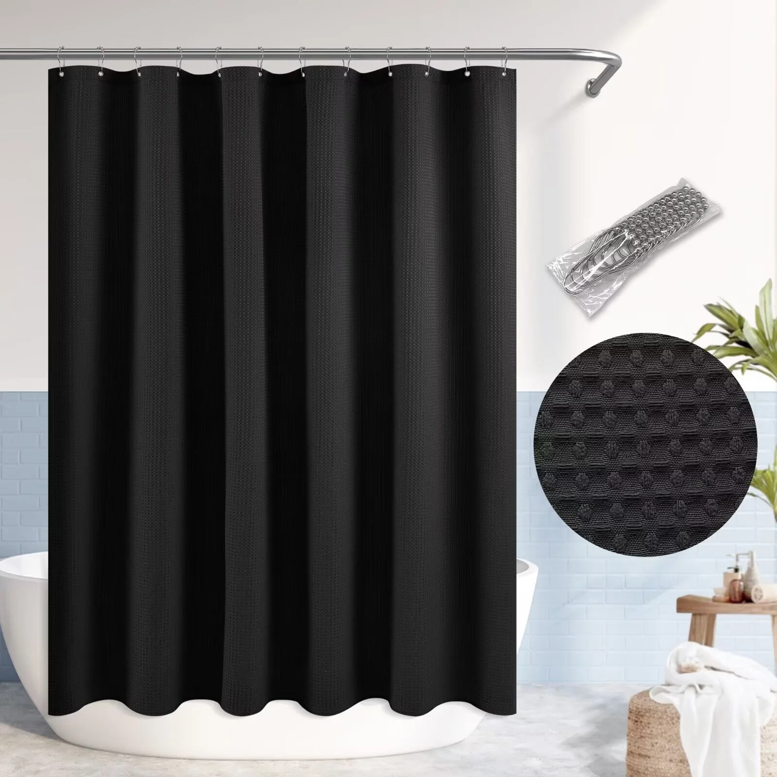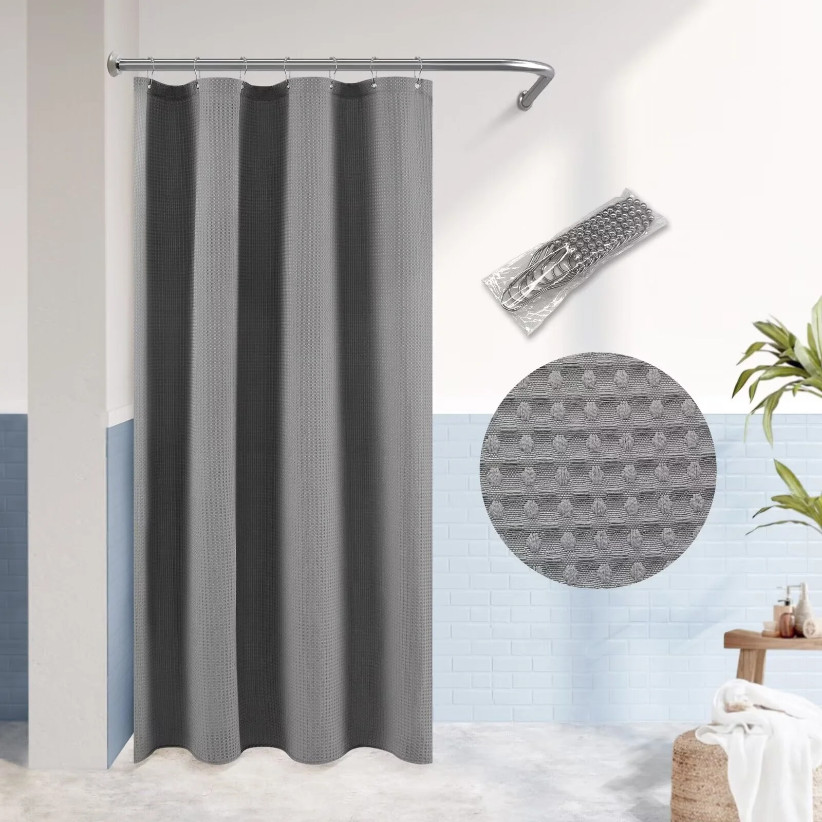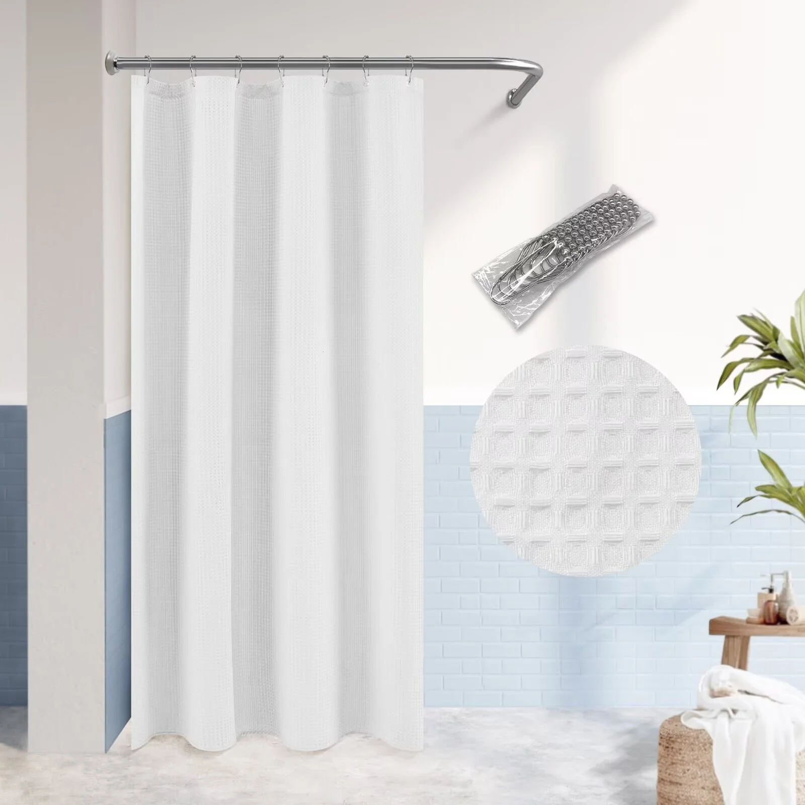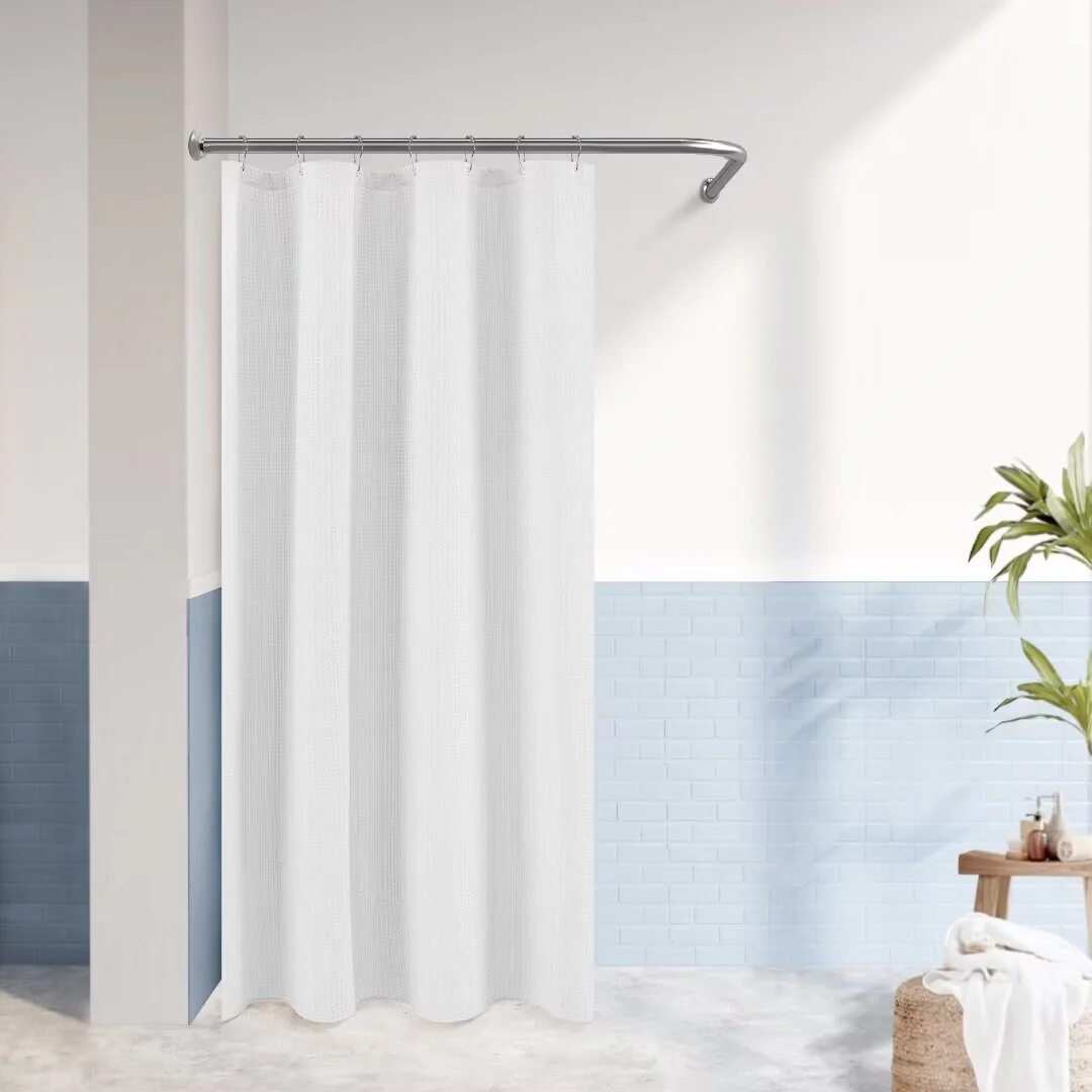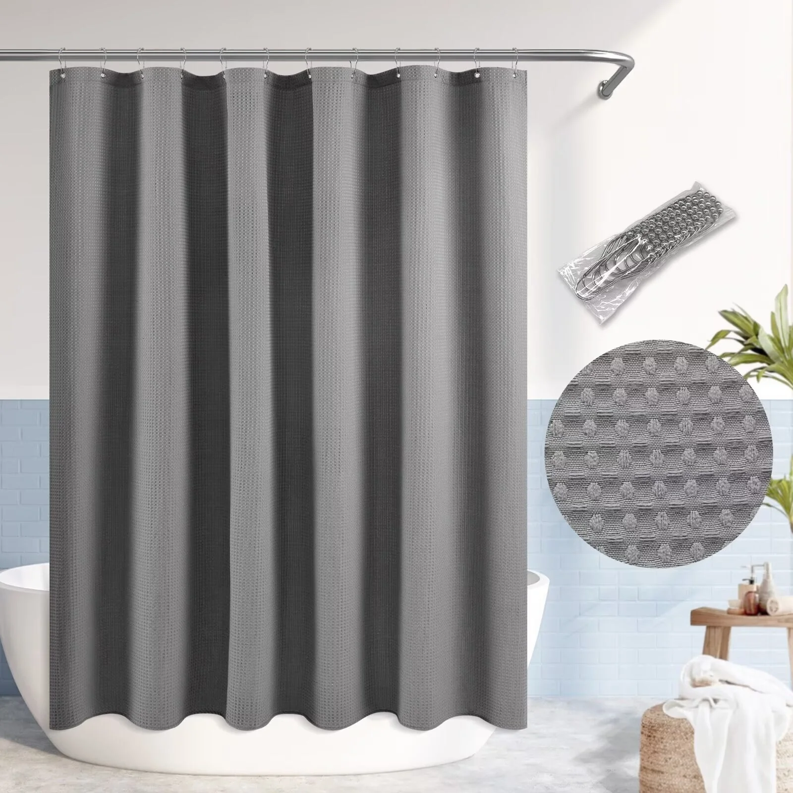 Dobby Waffle Shower Curtain with 12 Metal Hooks