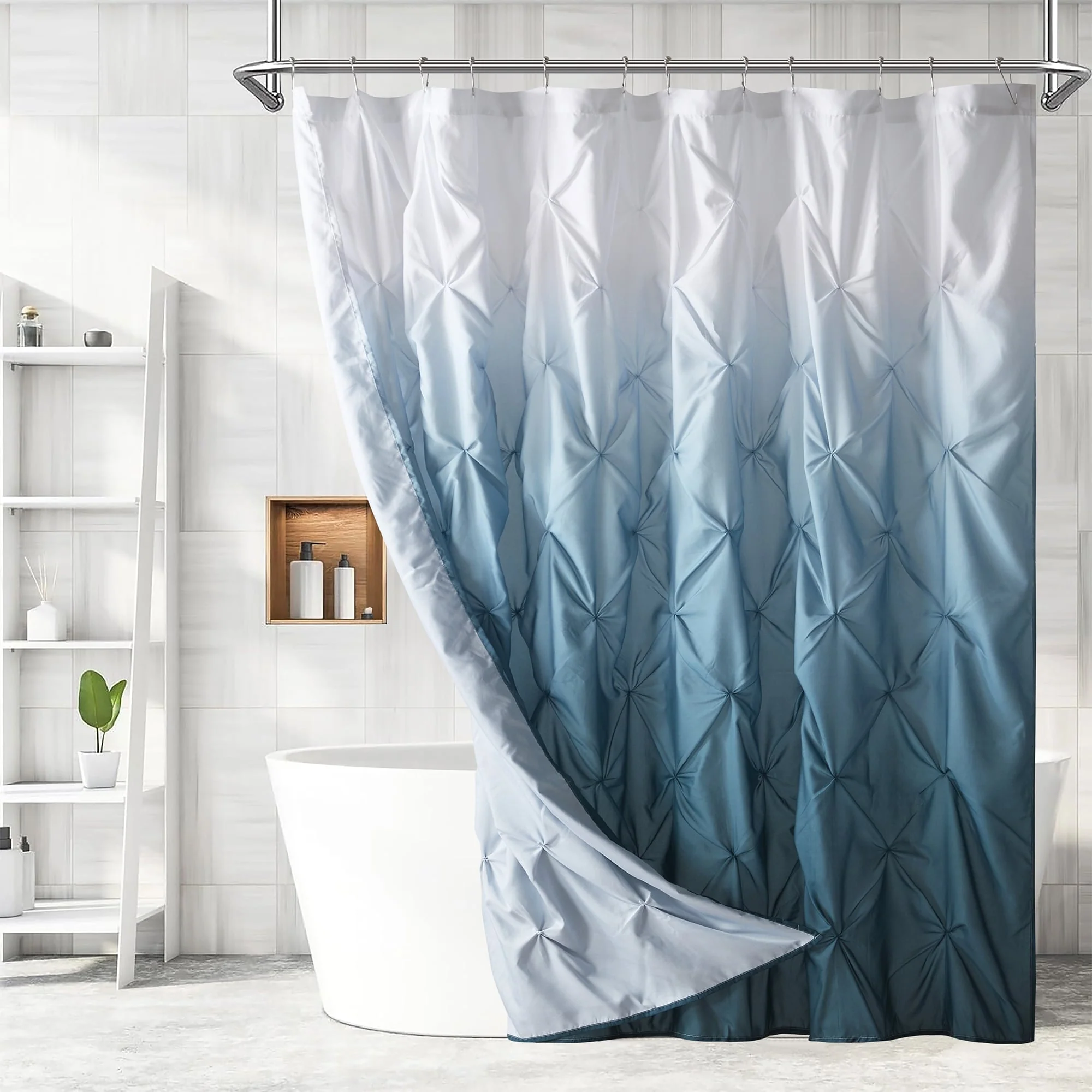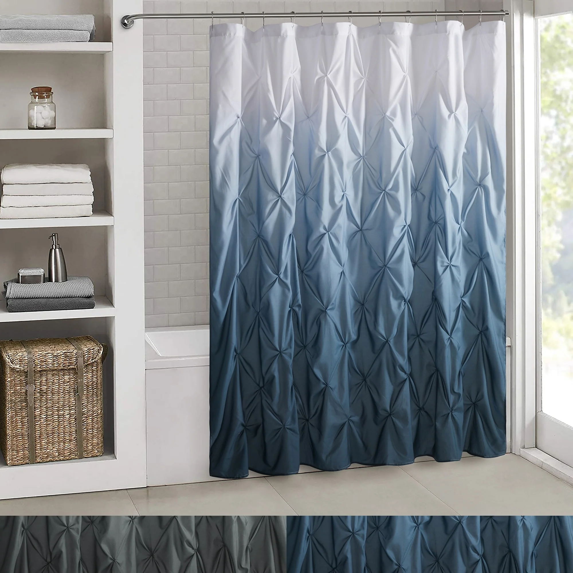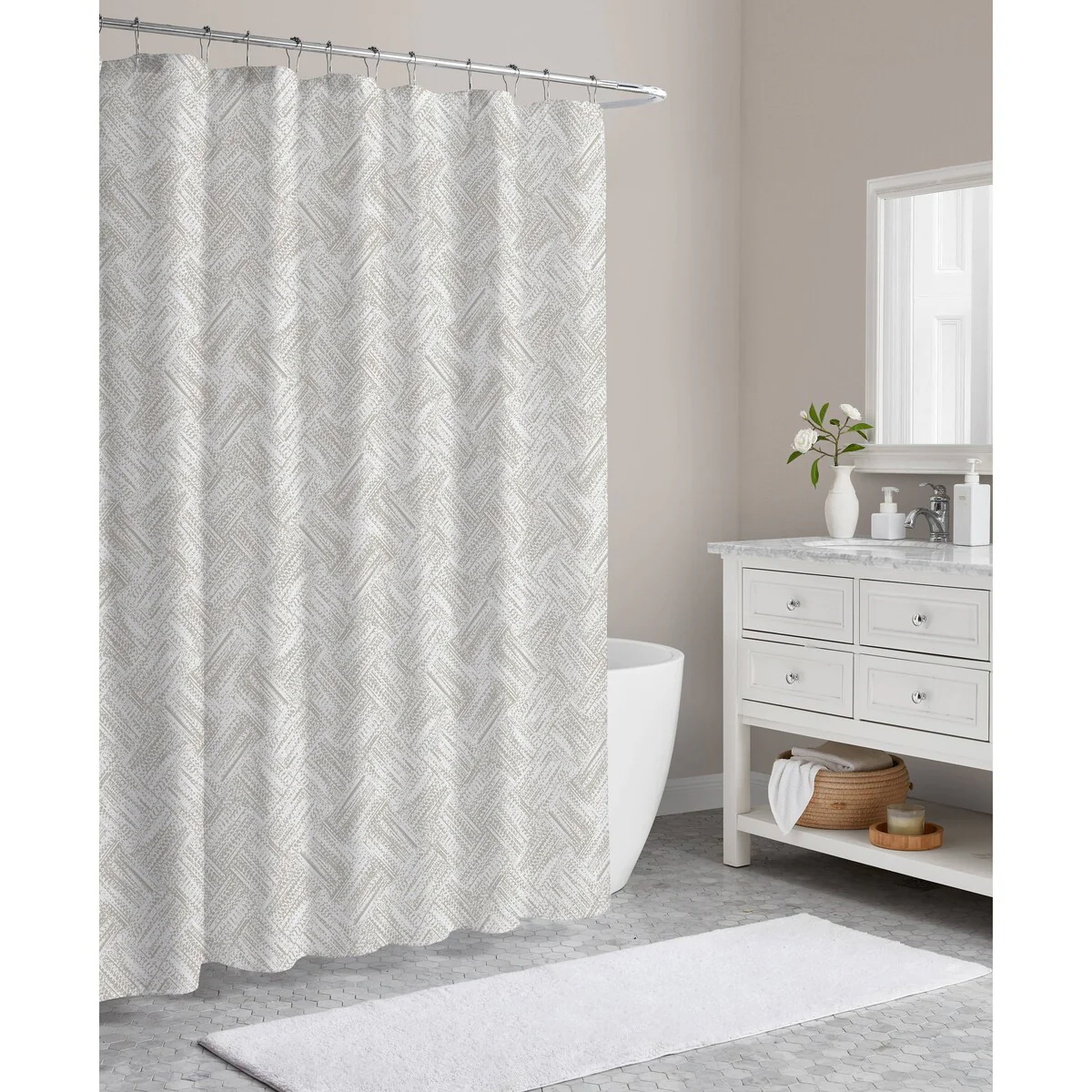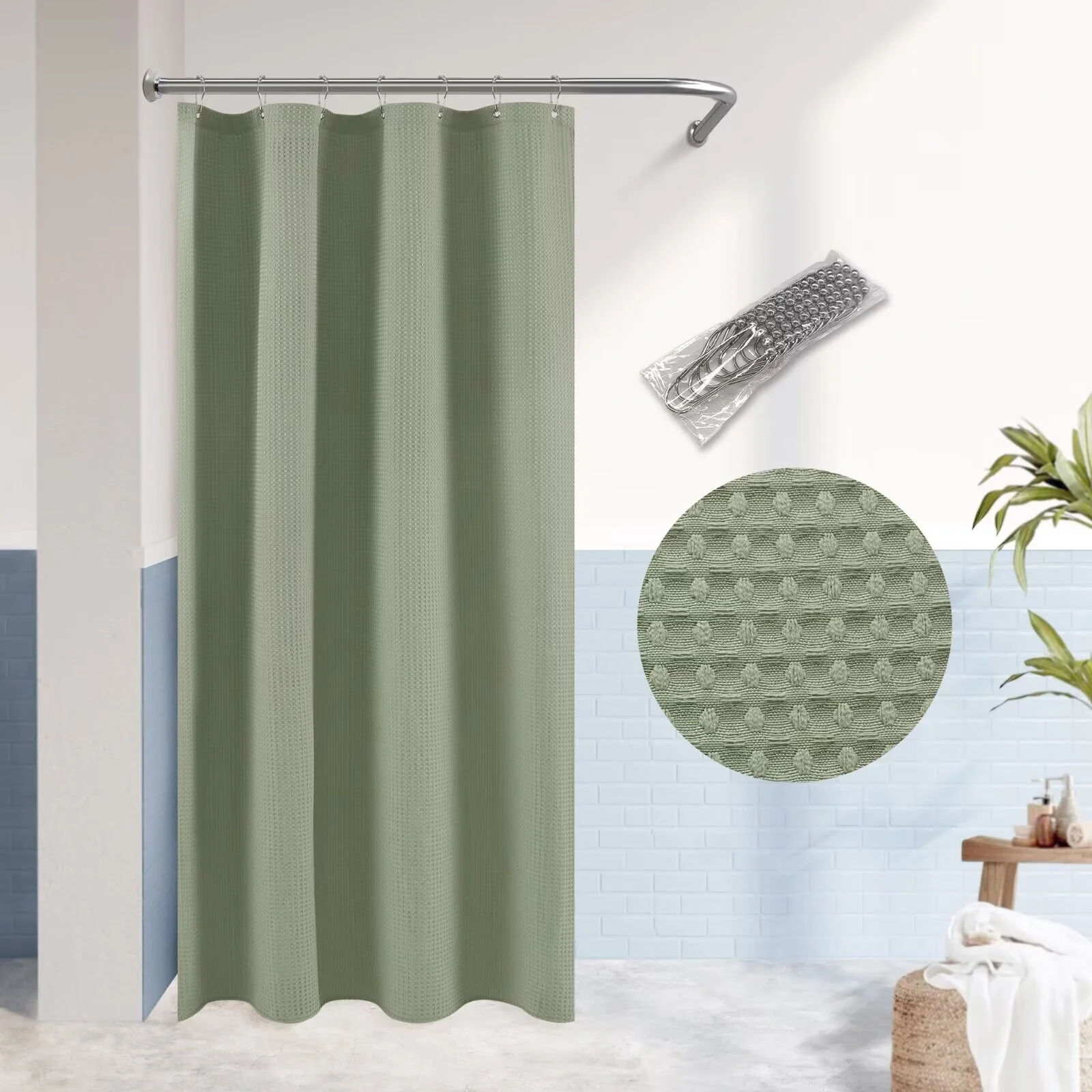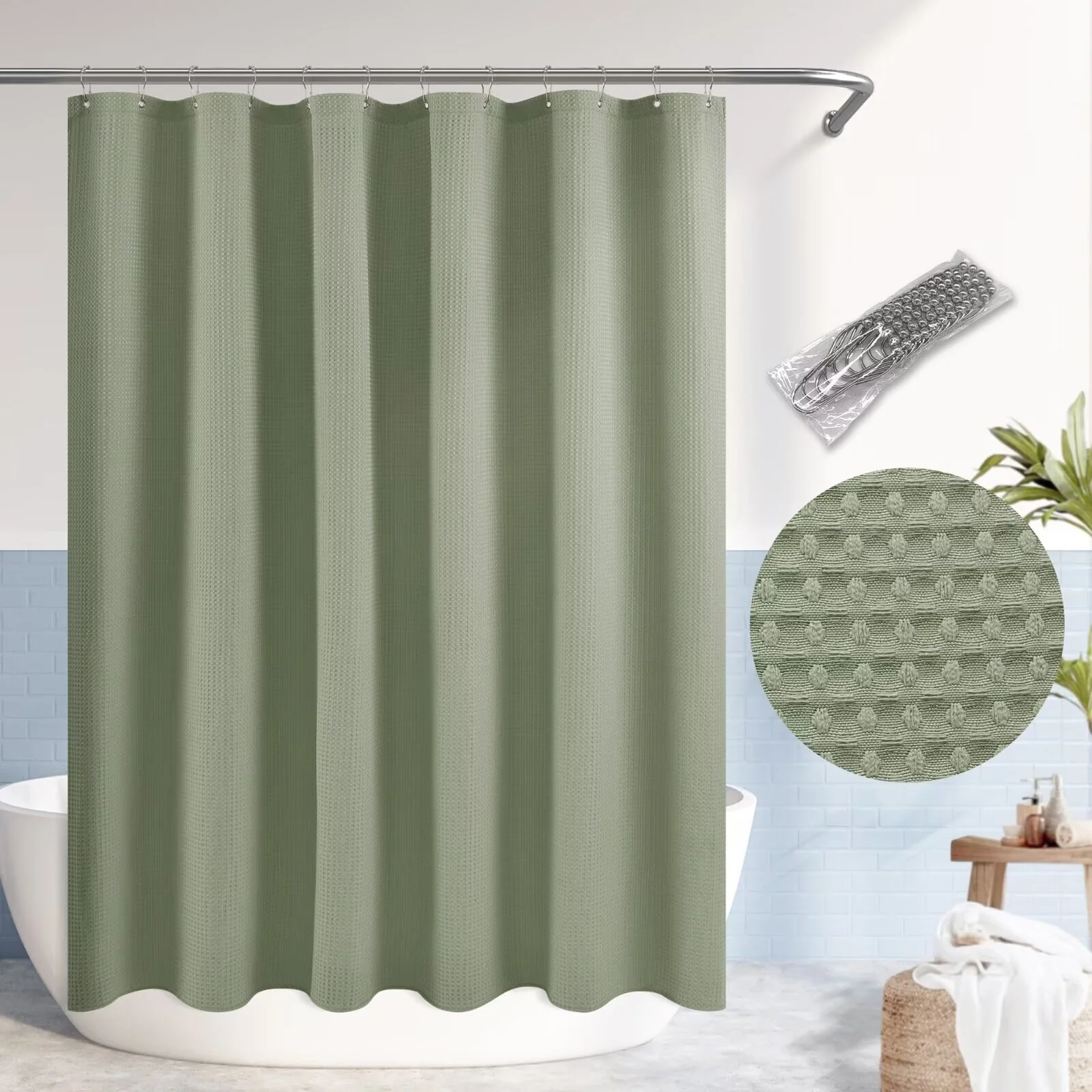 Dobby Waffle Shower Curtain with 12 Metal Hooks
