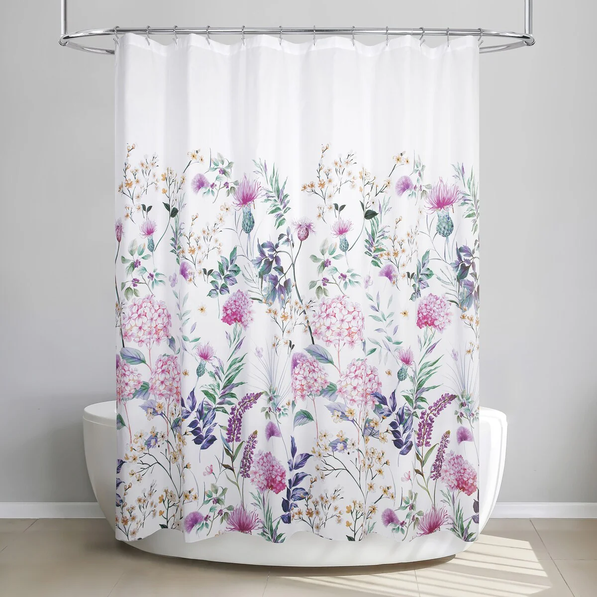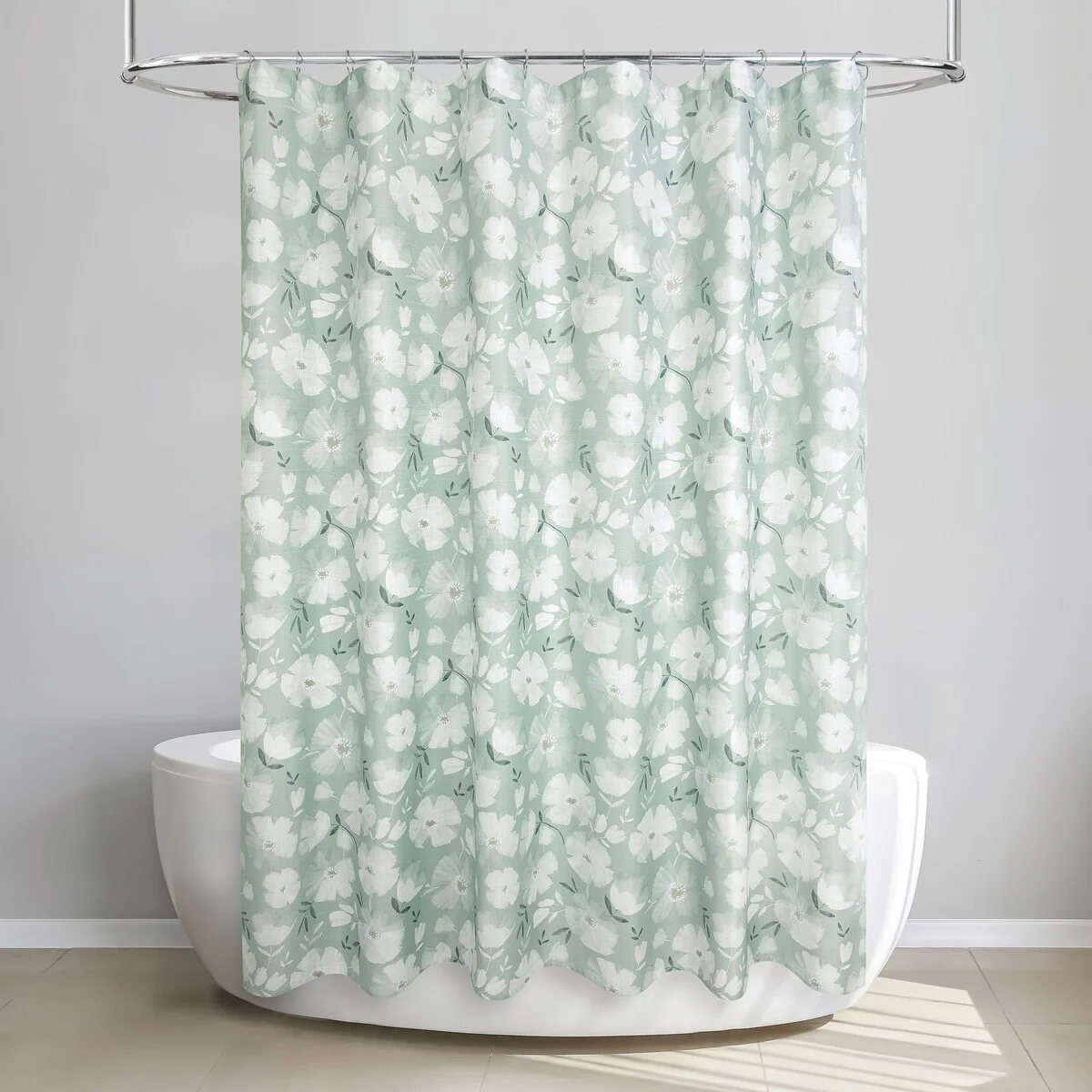 Monotone Floral Sage Shower Curatin
