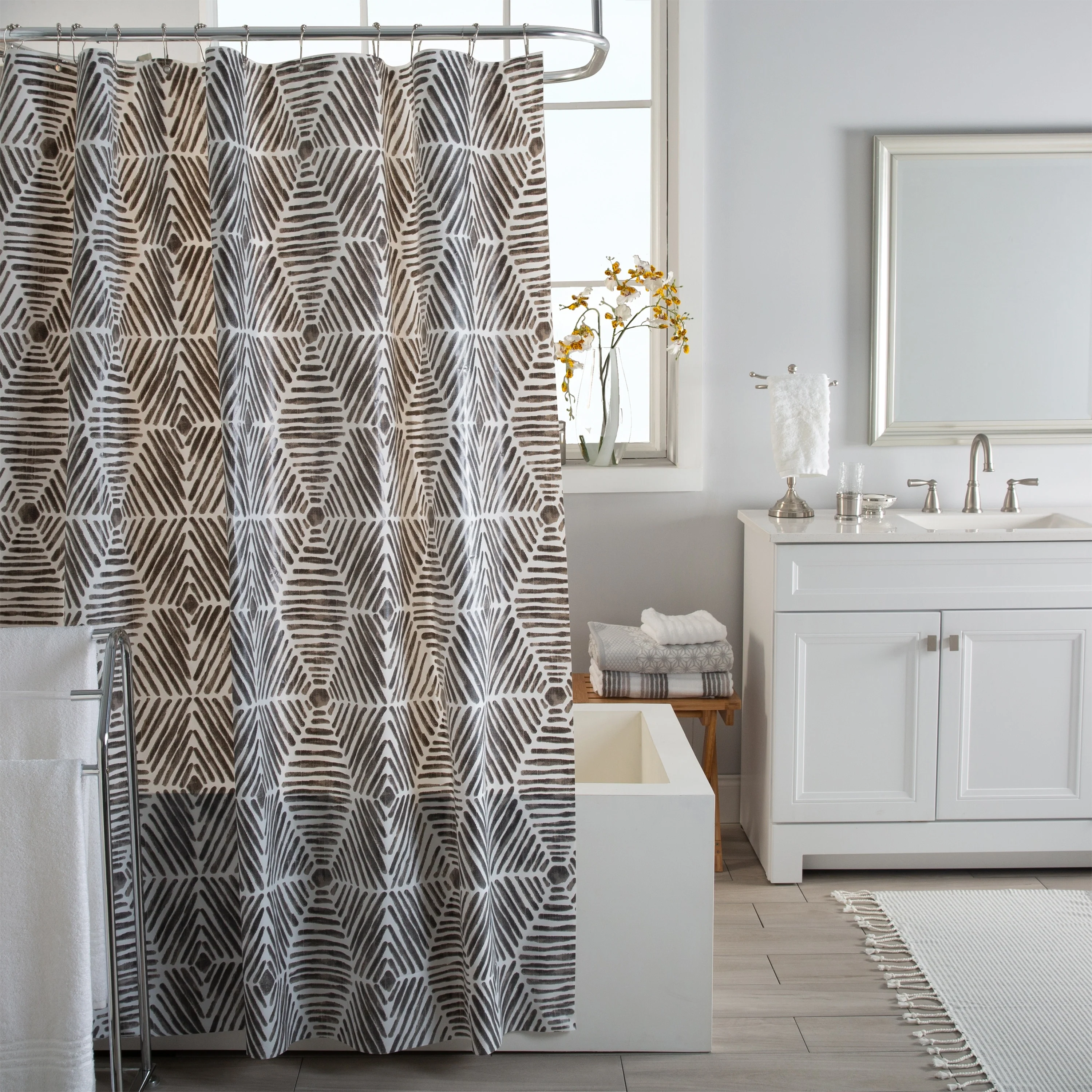 Bath Bliss Abstract Design PEVA Shower Curtain in Black & White