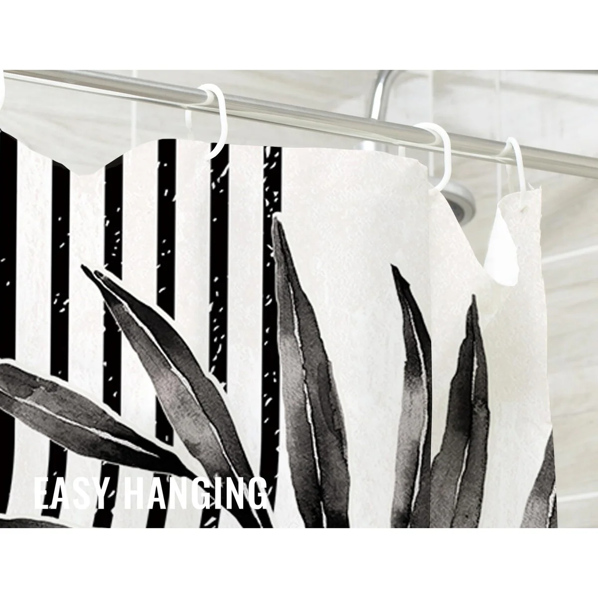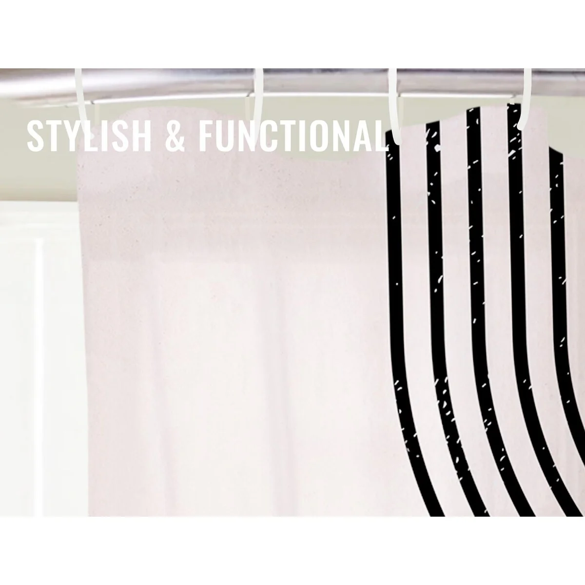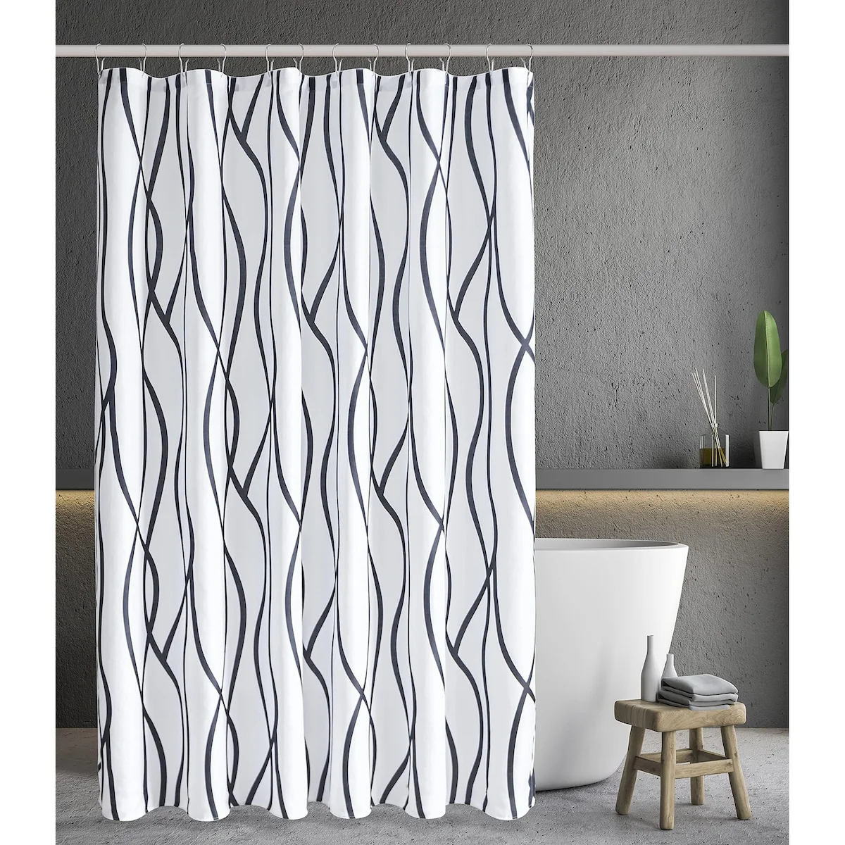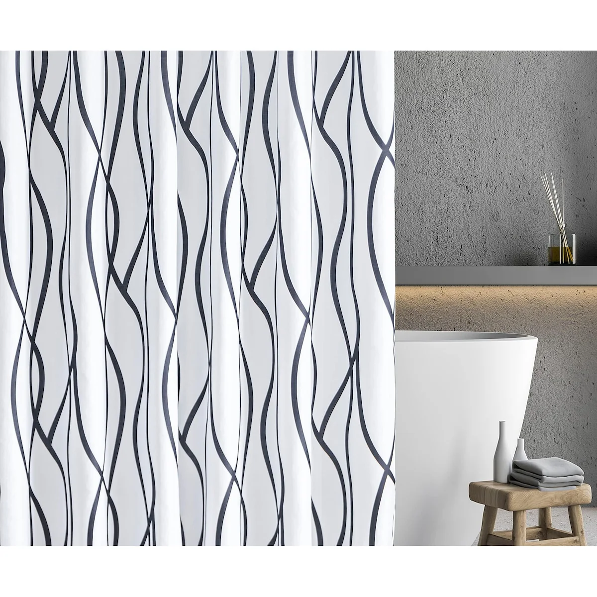Textured Fabric Shower Curtain 72 Inches by 72 Inches, Black Printed
