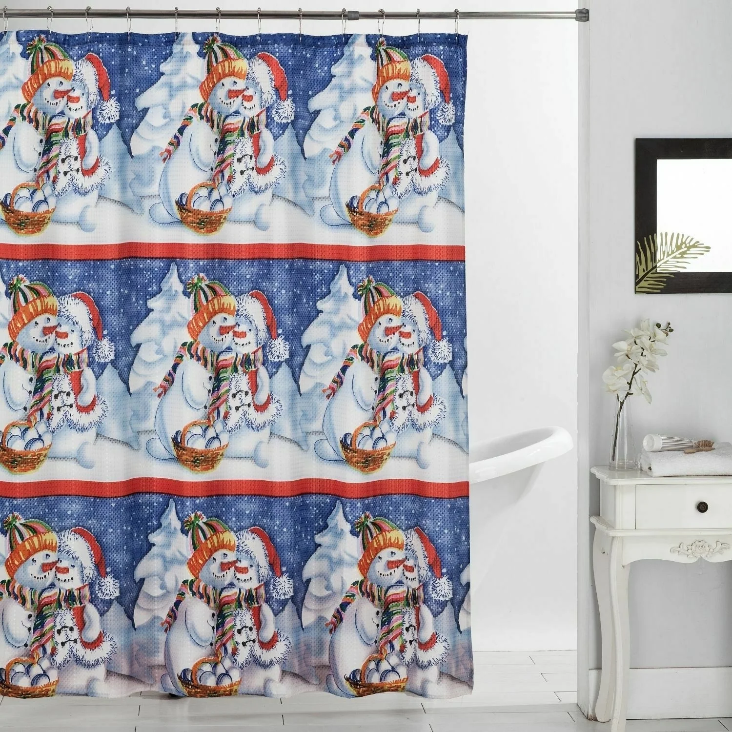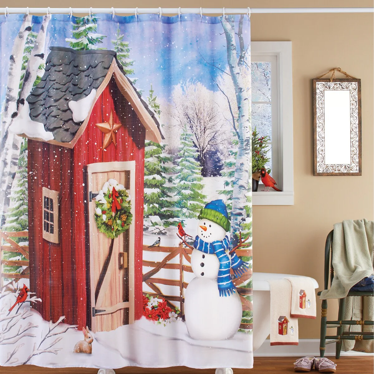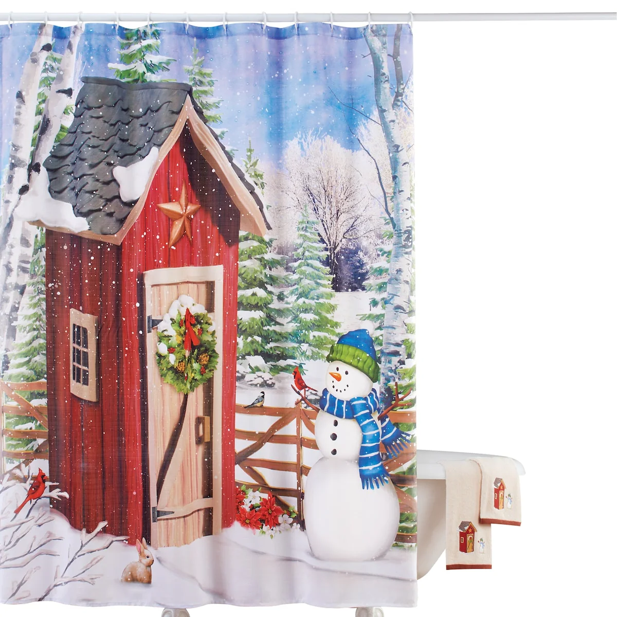 Holiday Outhouse with Snowman Bathroom Shower Curtain