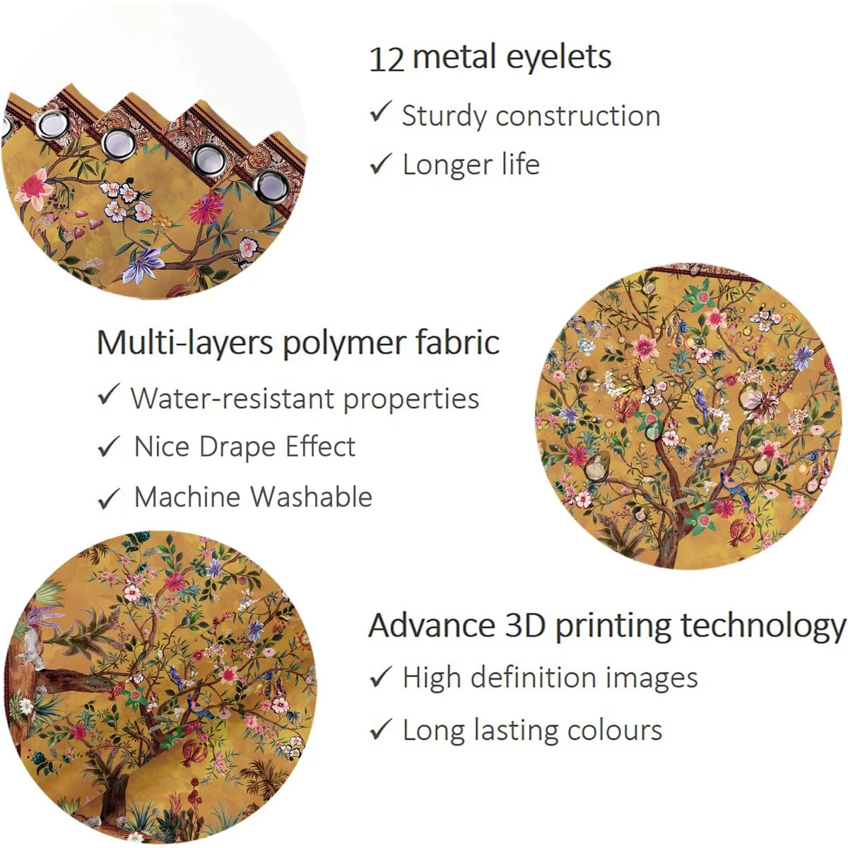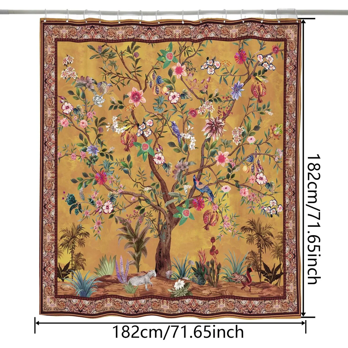 Boho Floral Bathroom Curtain, 72"x72", Colorful Bohemian Print
